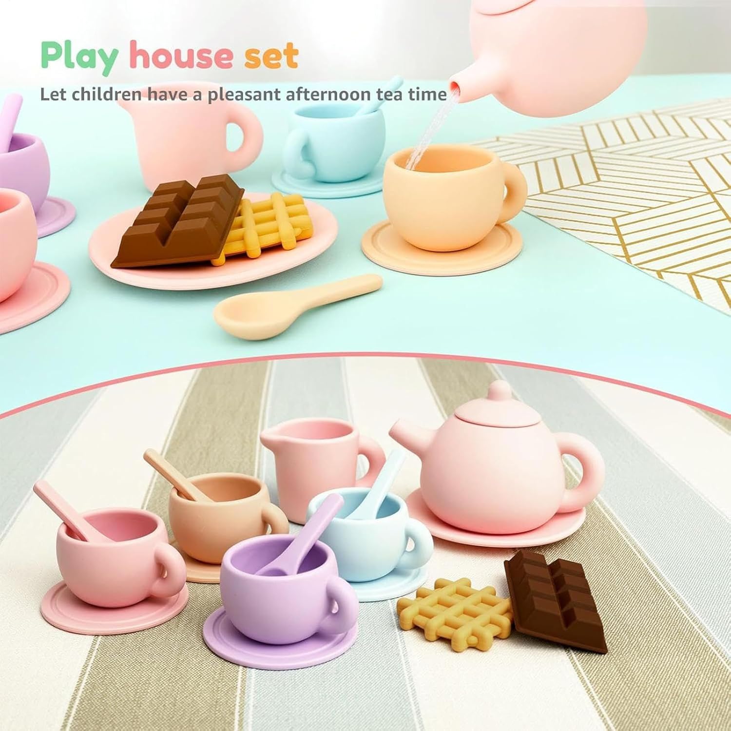 Offre divertimento senza schermo: il set da tè per bambini in morbido silicone garantisce attività divertenti senza dispositivi elettronici e consente allegri tea party che stimolano l'immaginazione. Trasmette calorose congratulazioni per lo sviluppo del bambino ed è perfetto come regalo in occasioni festive o traguardi speciali come i compleanni. In questo modo incoraggia le attività analogiche in modo giocoso. Sviluppo delle capacità motorie fini: il giocattolo del set da tè allena i movimenti fini delle mani attraverso azioni simulate come preparare e servire il tè. Migliora le capacità di coordinamento e promuove le capacità comunicative in scenari di gioco interattivi che prevedono la condivisione e il gioco di ruolo con altri bambini. Queste attività supportano lo sviluppo delle capacità motorie e delle capacità di interazione sociale in modo divertente, mentre il set da tè giocattolo funge da strumento per la prima infanzia. Facile da installare e riporre: il set da tè in silicone per i più piccoli offre portabilità senza problemi e disposizione rapida, migliorando l'esperienza dell'utente. La sua adattabilità supporta piacevoli attività familiari al chiuso, nonché tea party, picnic ed eventi di gruppo all'aperto con la stessa facilità e garantisce una facile maneggevolezza. Esperienza di gioco di ruolo coinvolgente: il set da tea party in silicone per i più piccoli incoraggia il gioco fantasioso e lo sviluppo di capacità di narrazione consentendo ai bambini di ricreare una scena di tea party attraverso un gioco di ruolo coinvolgente. Questo giocattolo creativo supporta la creatività nelle situazioni di gioco di ruolo sociale e offre un'esperienza di apprendimento divertente che stimola l'immaginazione in diversi ambienti di gioco e promuove naturalmente lo sviluppo narrativo. Facile da pulire: il set da tè in silicone adatto ai bambini è progettato per essere maneggiato senza sforzo ed è facile da pulire dopo l'uso, ad esempio sotto l'acqua corrente. Le proprietà a tenuta stagna e antiurto garantiscono elevata durata e idoneità all'uso quotidiano. Può essere riempito con liquidi veri, supportando scenari di gioco realistici come organizzare tea party in qualsiasi ambiente e incoraggiando lo sviluppo del bambino attraverso il gioco fantasioso.