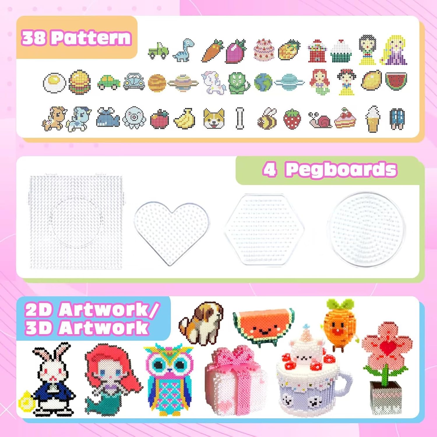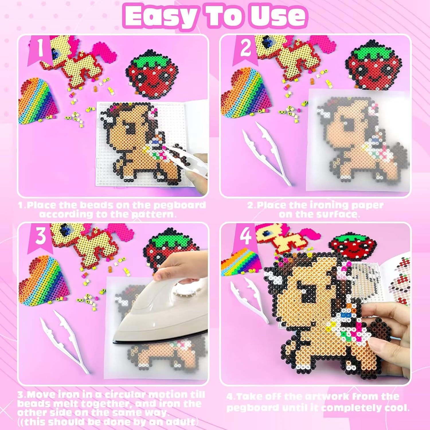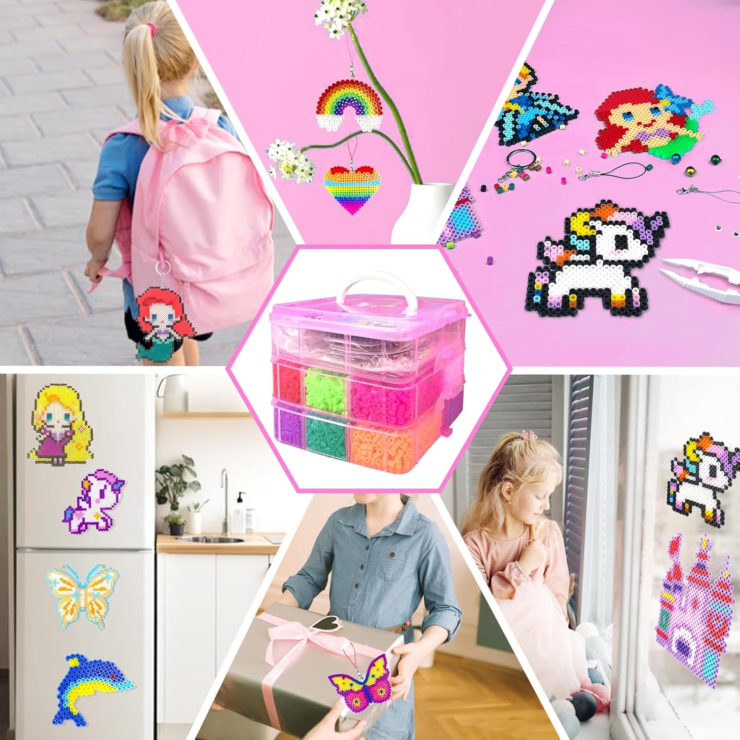 Kit completo di Perline da Stirare:Questo kit contiene 11000 perline in 20 colori diversi, 4 piastre per perline (esagono, quadrato, cuore, cerchio), 5 carte da stiro, 2 pinzette, 5 portachiavi, 5 ganci di plastica, 5 cordini di metallo, 1 opuscolo, scatola di immagazzinaggio Triplo Scatola Portaoggetti: Il set di perline da stirare di ferro viene fornito con una scatola di immagazzinaggio che mantiene facilmente il kit di perline in ordine, organizzato e conveniente per la selezione dei colori, e il manuale di istruzioni incluso. Un eccellente mestiere e regalo per i bambini, che possono anche migliorare la loro abilità manuale, la concentrazione e la pazienza Alta qualità: Il nostro set di perline da stirare artigianali è realizzato con materiali di alta qualità. Materiale resistente, non facile da rompere. Assicurarsi che un adulto gestisca o guidi la fase di stiratura. La sicurezza e la salute del bambino sono la nostra priorità Ispirare la creatività: I bambini possono imparare a realizzare le opere d'arte sulla base dei modelli che forniamo, questo set perline di fusione può anche stimolare la creatività e l'immaginazione del bambino. I bambini possono assemblare una gamma colorata di modelli diversi in base ai loro hobby o alla loro creatività, quindi creare opere d'arte uniche appartengono a loro stessi, divertirsi con un design unico e godersi il risultato Ideale Kit regalo per l'artigianato: Il nostro set perline artigianali è un regalo perfetto per ragazze e ragazzi che amano fare artigianato fai-da-te. Il kit di artigianato di perline per bambini viene fornito con una scatola regalo di stoccaggio squisita, adatta come compleanno, Natale, festival o qualsiasi regalo di vacanza per i bambini di età compresa tra 5+