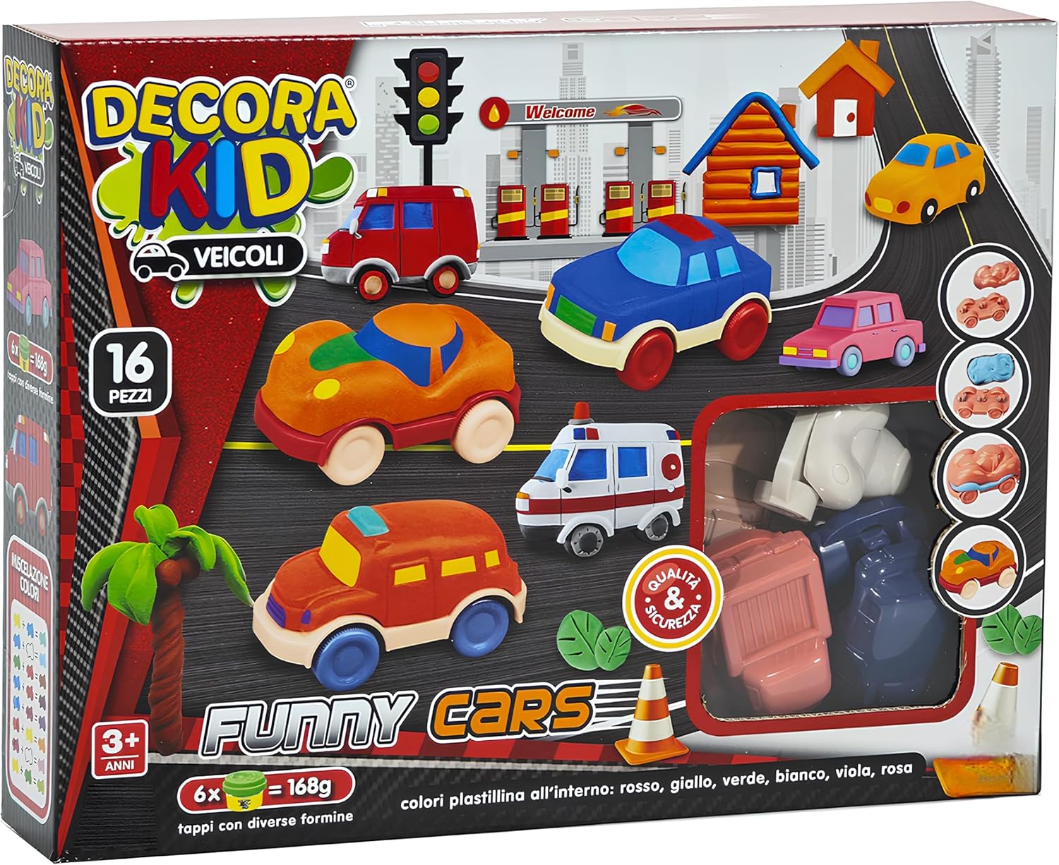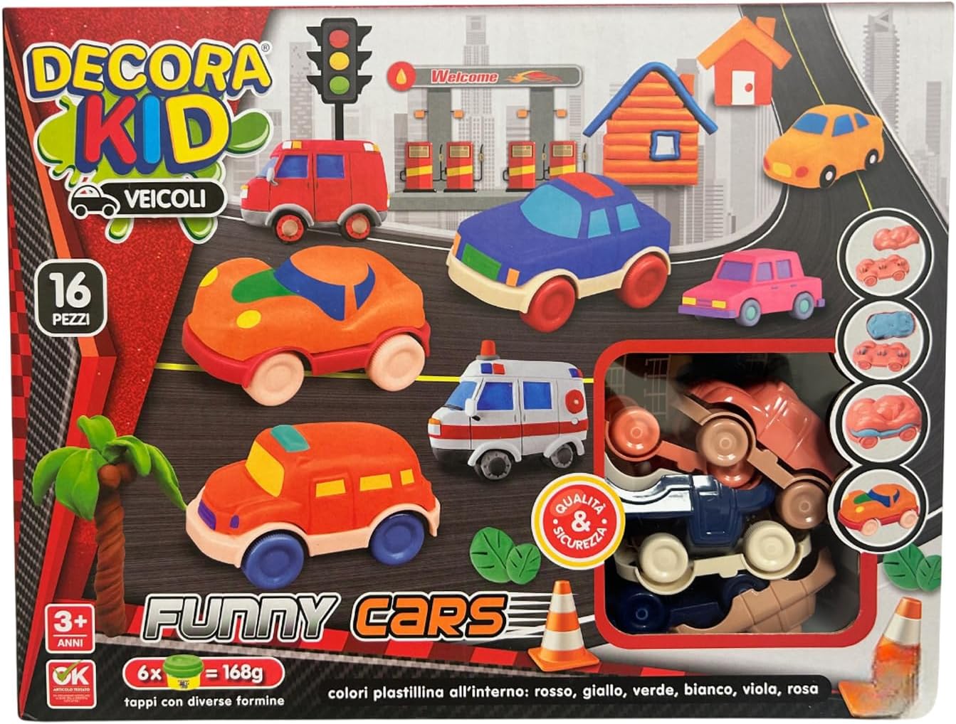 Set creativo per bambini con 16 pezzi per costruire veicoli divertenti: il kit "Decora Kid Veicoli" include 16 elementi progettati per stimolare la fantasia e la manualità dei più piccoli. Questo set è perfetto per i bambini dai 3 anni in su e contiene stampi per auto, plastilina colorata e accessori tematici per creare una città in miniatura. Plastilina colorata sicura e atossica in 6 colori vivaci: il set comprende 168 g di plastilina in sei tonalità brillanti (rosso, giallo, verde, bianco, viola, rosa). Ideale per modellare veicoli personalizzati, stimola lo sviluppo motorio e l'immaginazione. Materiali sicuri e certificati per giocare in totale tranquillità. Stampi e accessori per creare veicoli realistici e colorati: ogni confezione include tappi con diverse formine che permettono di modellare dettagli unici. I bambini potranno creare auto sportive, ambulanze, e altri veicoli, trasformando il gioco in un'esperienza creativa e coinvolgente. Qualità e sicurezza garantite per il divertimento dei più piccoli: il set è conforme agli standard di sicurezza europei. Realizzato con materiali di alta qualità, è resistente e adatto alle mani delicate dei bambini. Ideale per attività educative e di intrattenimento. Perfetto come regalo educativo per bambini curiosi e creativi: questo kit di modellazione è un'idea regalo ideale per compleanni, feste o semplici momenti di gioco in famiglia. Aiuta a sviluppare abilità cognitive, la coordinazione occhio-mano e incoraggia il lavoro di squadra. Gioco educativo e divertente con un tema automobilistico: il tema dei veicoli introduce i bambini al mondo dei trasporti, combinando apprendimento e divertimento. La confezione colorata e accattivante cattura l'attenzione, rendendo il prodotto ideale per ogni occasione.