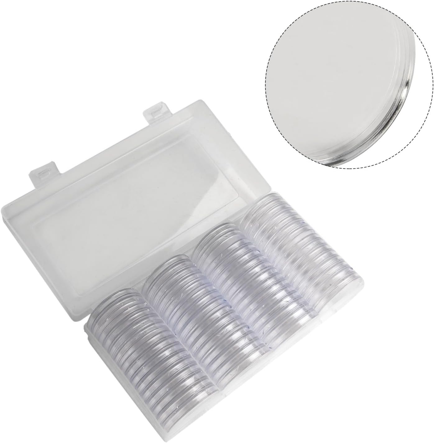 【Materiale plastico addensato】 Le nostre capsule sono realizzate in plastica addensata, fornendo un'eccellente resistenza alla polvere e all'ossidazione. 【Adatto per monete di diametro】 Questi supporti sono progettati per contenere monete con un diametro non superiore a 41 mm, rendendoli perfetti per monete e argento. 【Design altamente trasparente e aderente】 Le capsule sono altamente trasparenti e si adattano perfettamente, protezione sicura per collezioni di valore. 60 capsule con scatola organizer: questo set contiene 60 capsule insieme a una comoda scatola organizer. È una scelta per cerimonie, negozi, mostre o come Natale per collezionisti.