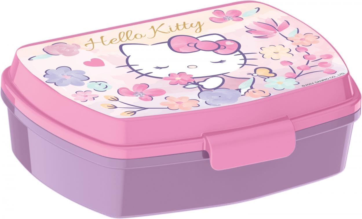 Set Merenda HELLO KITTY composto da: BOX PORTA MERENDA in plastica riutilizzabile 17x12x5,5cm BICCHIERE con CANNUCCIA integrata capienza 430ml TOVAGLIETTA in tessuto 30x40cm Ideale per l'ora della Merenda a scuola o da portare con se durante le passeggiate