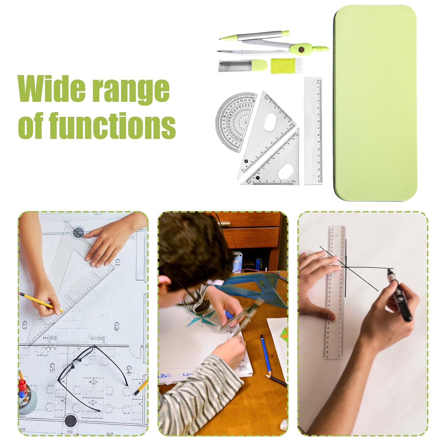Materiale sicuro: il nostro kit di geometria matematica è realizzato con materiali selezionati, che ne garantiscono robustezza e precisione. Realizzato con sicurezza di alta qualità, questo kit è ideale sia per studenti che per professionisti che cercano qualità e longevità Eccellenza artigianale: con un'eccellente maestria, il nostro kit di geometria matematica offre una versione straordinaria, garantendo l'assenza di sbavature e lesioni alle mani, consentendo un utilizzo preciso e sicuro per la progettazione della geometria Ampiamente applicabile: equipaggiati con il kit di geometria matematica, un set di strumenti multifunzionali da 7 pezzi che include righello, goniometro, matita, gomma, per migliorare le tue abilità di geometria. Le sue misurazioni e i suoi disegni precisi lo rendono ampiamente utilizzato e strumento indispensabile per gli studenti Regalo eccellente: assicurati una speciale per le vacanze con il nostro kit di geometria matematica, un regalo perfetto per uomini e donne in occasione di compleanni, Ringraziamento e Natale. Aggiungi un tocco di fascino ad ogni occasione Geometria all'aperto: con una scatola di ferro infrangibile, il nostro kit di geometria matematica è facile da trasportare, permettendoti di esercitarti all'aperto sempre e ovunque