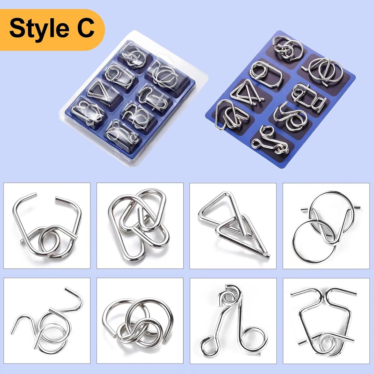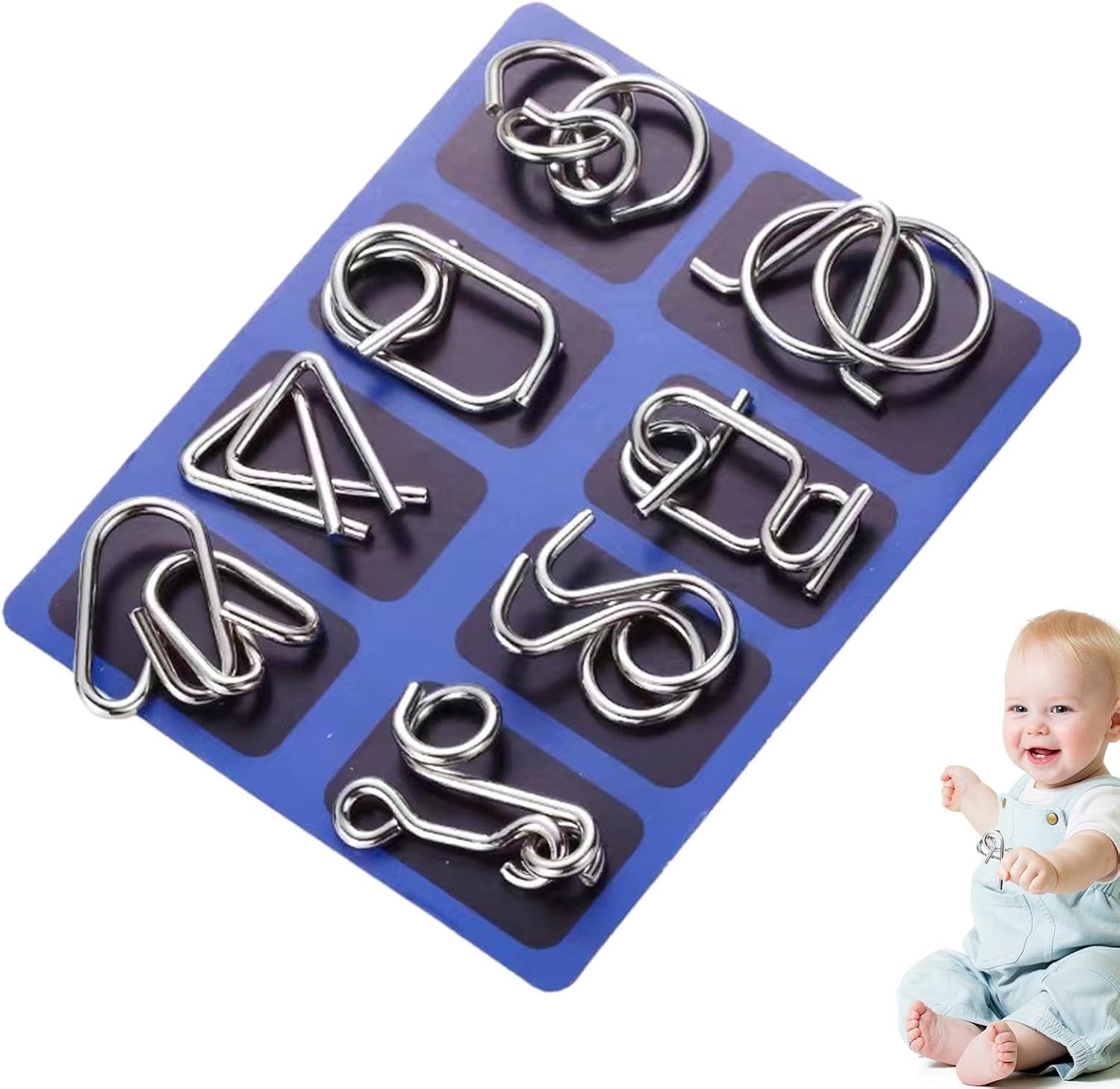 【8 giochi speciali di puzzle in metallo】 Con 8 diversi tipi di puzzle di filo, puoi mettere alla prova le tue abilità e provare un senso di realizzazione dopo aver risolto ogni puzzle. I puzzle hanno diversi livelli di difficoltà, quindi puoi scegliere quello più adatto a te. 【Fatti F-okus e risoluzione dei problemi】 Questi intelligenti rompicapo in metallo suonano come giocattoli educativi nel tuo cervello e aiutano a migliorare la concentrazione, il pensiero logico e la pazienza. Un modo divertente e senza schermo per mantenere la mente acuta. 【Design durevole】 Realizzati in metallo di alta qualità, i nostri puzzle in filo sono costruiti per durare e non si arrugginiscono né sbiadiscono facilmente. Il design resistente garantisce che possano resistere a un uso frequente, rendendoli perfetti per i bambini che amano le sfide. Ampio utilizzo: i nostri puzzle in filo metallico offrono intrattenimento versatile per tutte le occasioni e abilità. Dalle feste natalizie ai viaggi su strada, portano divertimento e sfida che uniscono le persone. Una scelta intelligente per il gioco da solista o la competizione amichevole. 【Ottimo GI-FT per gli appassionati di puzzle】 Cerchi un'idea GI-FT? Questo set di rompicapo in metallo è perfetto per compleanni, riempitivi per calze, regalini per feste o come giocattolo educativo. Un regalo brillante per chi ama i giochi cerebrali o una bella sfida.