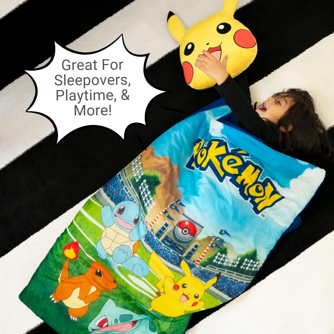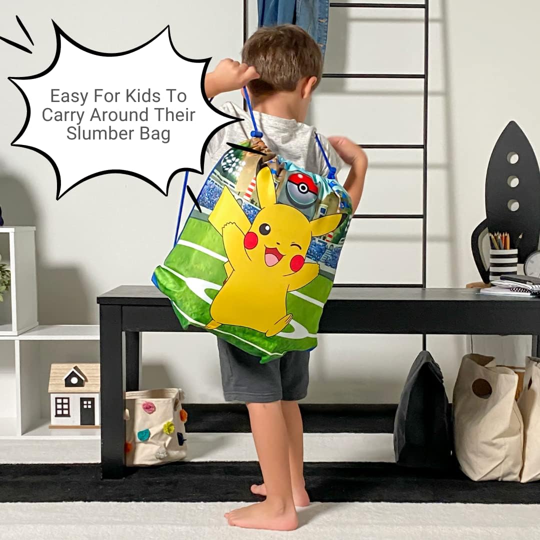 Contenuto della confezione (per bambini dai 3 anni in su): un sacco a pelo in due pezzi. Sacco a pelo con una dimensione di 66 cm (L) x 116,8 cm (L) con cerniera e una dimensione di 40,6 cm (L) x 43,2 cm (L). Ideale per bambini dai 3 anni in su. Facile manutenzione: il sacco a pelo deve essere pulito per evitare che i colorati personaggi dei cartoni animati sbiadiscano. Perfetto per pigiama party, tempo di gioco, pisolino e altro ancora: lascia correre l'immaginazione di tuo figlio con questo set Borsa a tracolla Pokémon Slumber! Il nostro sacco a pelo è multifunzionale e ideale per pigiama party, pisolini, giochi e persino in campeggio. Progettato per i bambini, progettato pensando ai genitori: questo sacco a pelo è stato progettato per consentire ai bambini di arrotolarsi e scivolare facilmente nella borsa a tracolla, consentendo un facile trasporto. I genitori apprezzeranno anche la compattezza di questo sacco a pelo. Si adatta facilmente all'auto, all'aereo, all'armadio e altro ancora
