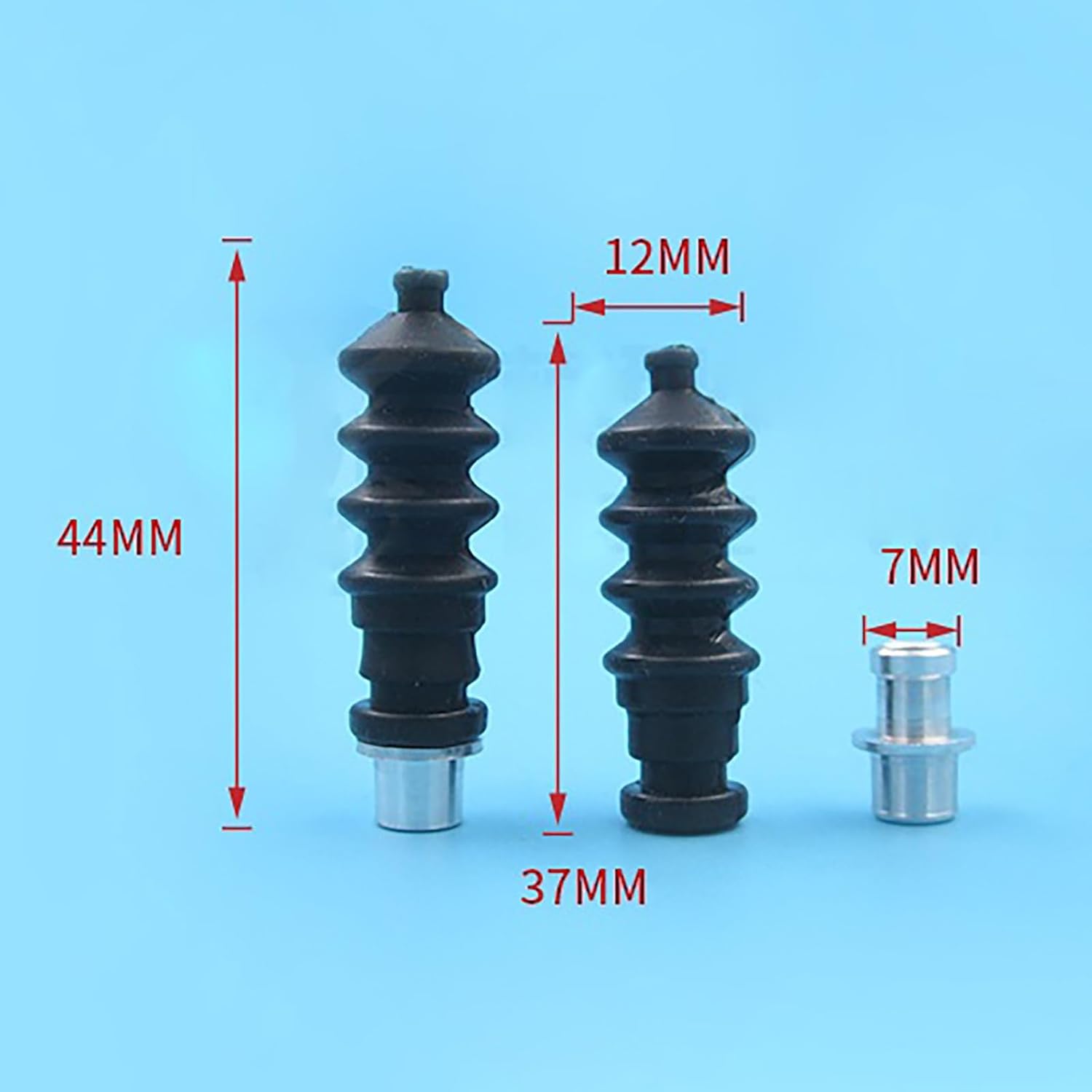 Gruppo soffietto impermeabile for aste di spinta del timone e alberi di poppa delle imbarcazioni RC. Soffietto in gomma: diametro 12 mm, lunghezza 37 mm, foro di base 5 mm. Base in alluminio: diametro esterno 7 mm, lunghezza 14 mm, foro 4,8 mm. Lunghezza totale una volta assemblato: 44 mm. Fornisce una tenuta affidabile for impedire all'acqua di entrare nella cabina dell'attrezzatura.