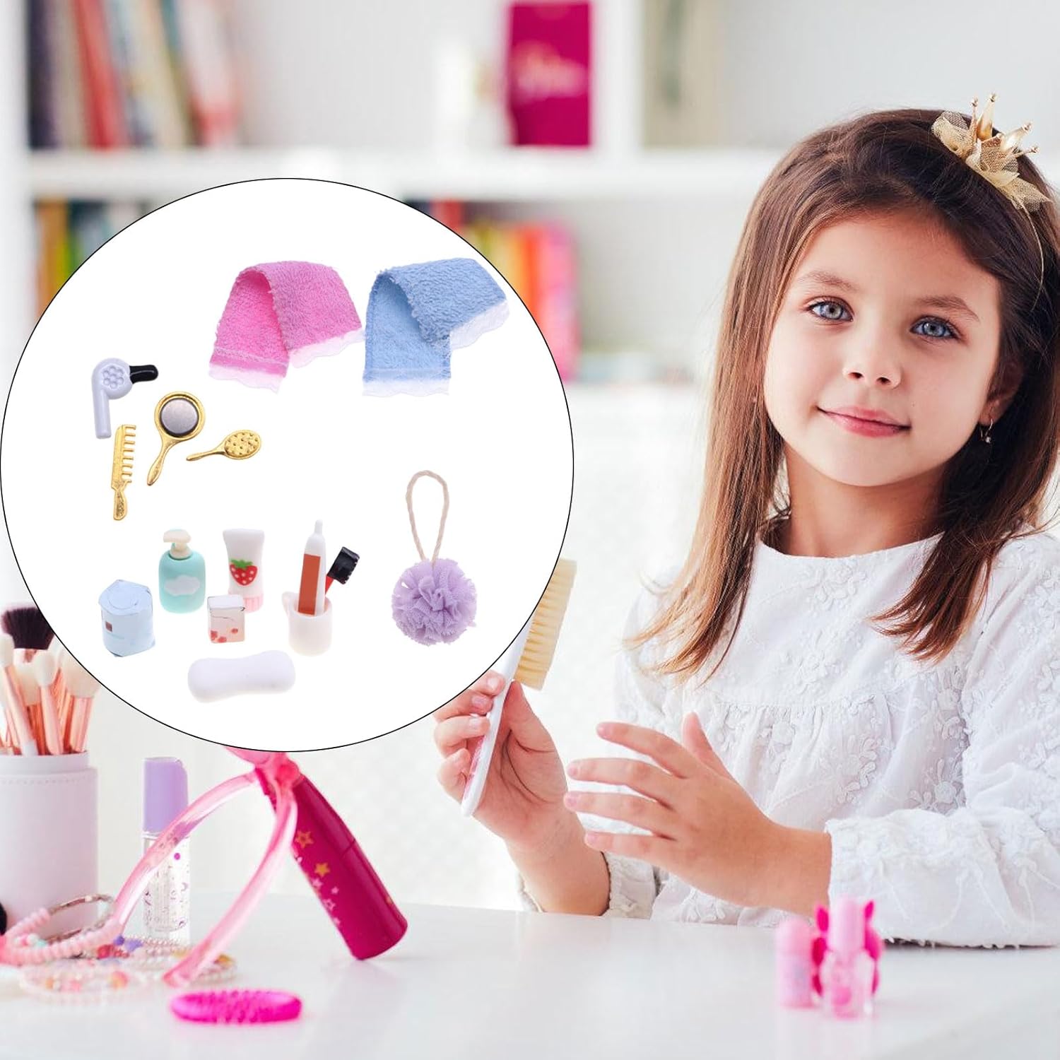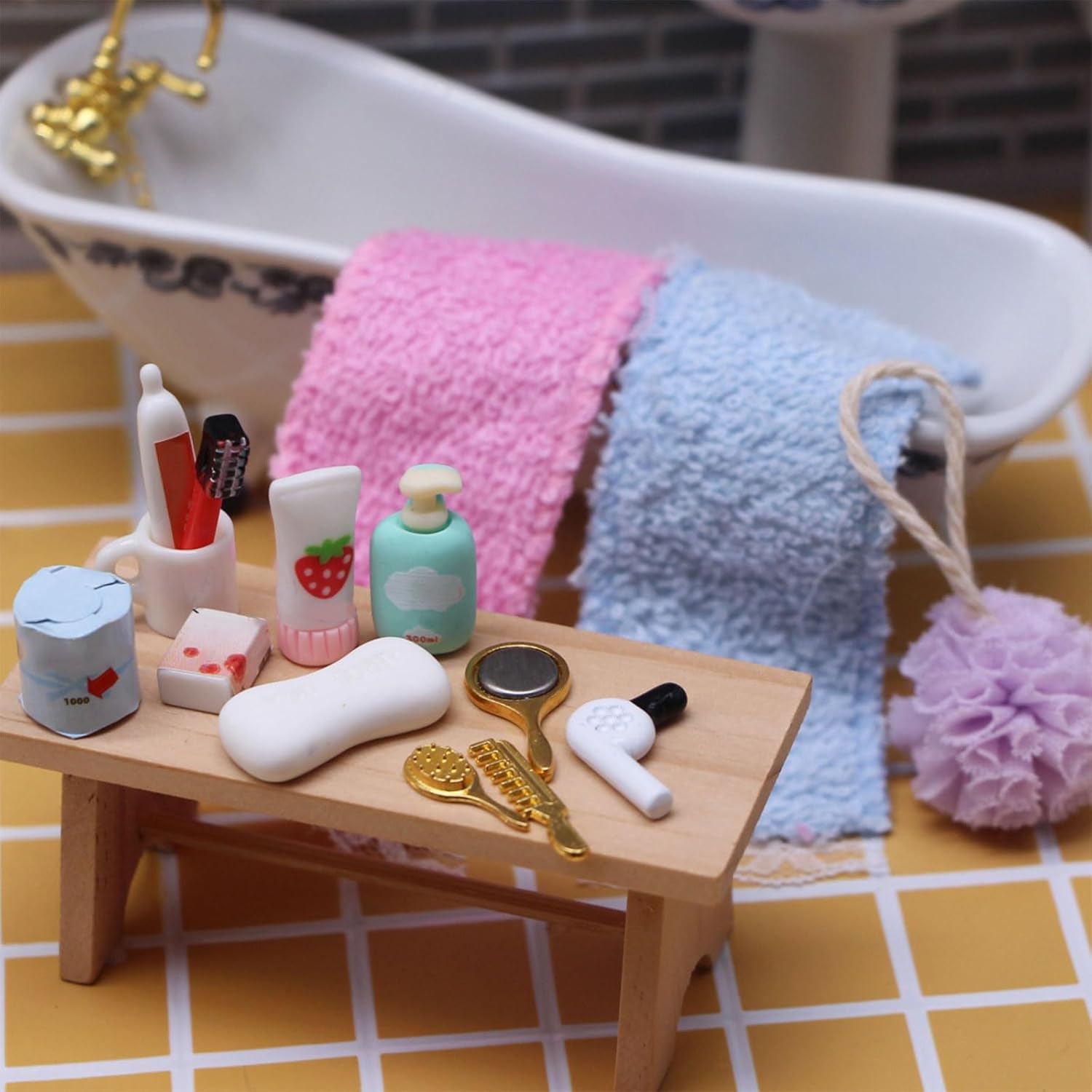 Cosa puoi ottenere, 1 set di accessori per decorazioni per il bagno delle case delle bambole, pettine per specchio, spazzolino, dentifricio, quantità sufficiente per soddisfare la tua richiesta, portatile, leggero, facile da trasportare, materiali sicuri realizzati in plastica di alta qualità, pratici, ben fatti e unici, apprezzati dalla maggior parte delle persone. Bellissimo aspetto, il modello in plastica Mini imposta un aspetto più realistico, bello e carino. Regalo meraviglioso, dolce regalo caldo per la famiglia degli amici e per te stesso.