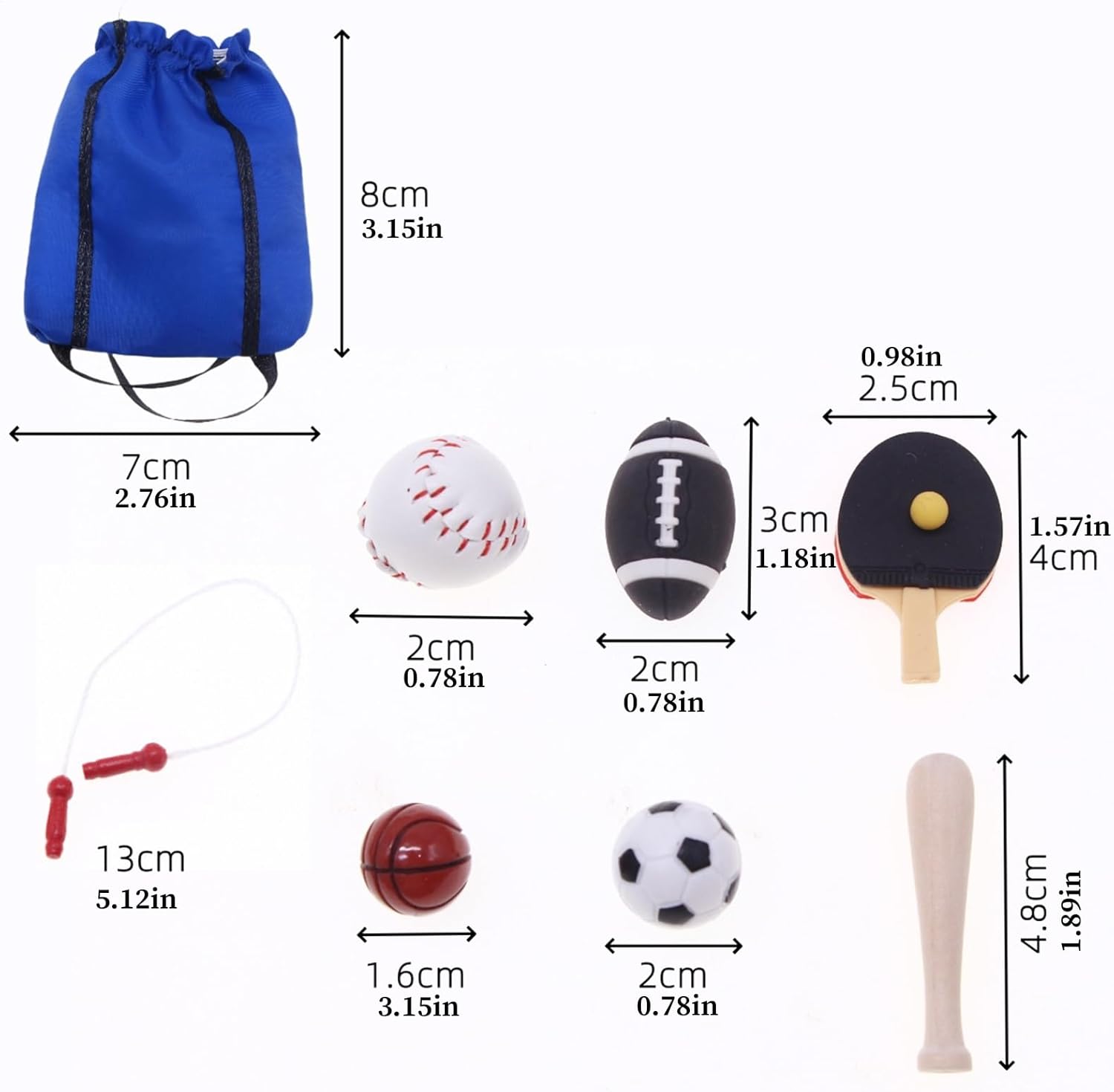 tà Costruttiva: Realizzato con robusta combinazione di legno e resina poliestere, questo set sportivo in miniatura garantisce costruzione e sicuri per manipolazione affidabile e utilizzo prolungato in ambienti di gioco creativo. Opzione Regalo Memorabile: Scelta presente ideale per festività Natale e Capodanno, adatto ad amici e grazie all'appeal curato e all'idoneità come indimenticabile. Set Completo Miniature: Include zaino, mazza da baseball, racchetta pong, corda per saltare, pne da calcio, pallacanestro e pne da calcio, fornendo sportivi tematici per esigenze decorative e creative Vantaggi Gioco Simbolico: Sperimenta soddisfazione ludica mentre affina le abilità comunicative e l'intelligenza emotiva attraverso dinamiche attività con palline, ideate per l'apprendimento interattivo Fascino decorativo unico: Grazie al design accattivante, questo set sportivo valorizza le case delle bambole con decorazioni deliziose e stesso crea elementi decorativi per torte che renogni occasione indimenticabile.
