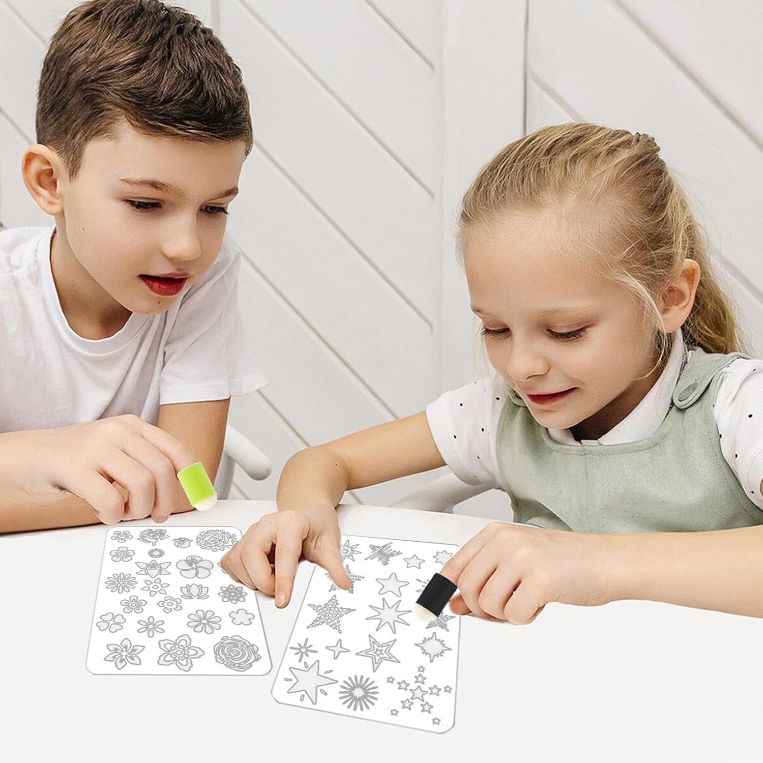 Creatività senza fine: il nostro set per dipingere con le dita in spugna incoraggia la creatività di tuo figlio e migliora le capacità di risoluzione dei problemi. Sviluppa il riconoscimento dei colori mentre impari le combinazioni e divertiti di più Pulizia senza sforzo: il nostro set per pittura con le dita in spugna consente ai giovani artisti di esplorare la loro creatività. L'inchiostro a base d'acqua si pulisce facilmente con acqua e sapone o con un tovagliolo di carta umido, rendendo la pulizia un gioco da ragazzi Adatto ai bambini: il nostro set per dipingere con le dita in spugna fornisce materiale di qualità gradito ai bambini, senza odori aggressivi e delicato sulla pelle. Garantisci l'intrattenimento e la sicurezza del tuo giovane artist-a per ore di gioco creativo con risultati robusti e duraturi Ampiamente applicato: il set per pittura con le dita in spugna offre ai bambini un modo entusiasmante di giocare con gli amici e mostrare la loro creatività. Dalle feste di compleanno alle feste a tema, è un'attività eccellente per i bambini di tutte le età che cercano u-no sbocco divertente e sociale Combinazione completa di pittura: esplora il tuo lato artistico con il nostro kit per pittura con le dita in spugna, dotato di 20 tamponi di inchiostro colorato, 5 applicatori in spugna e 5 modelli di disegno, che ti consentono di creare i tuoi album unici e unici