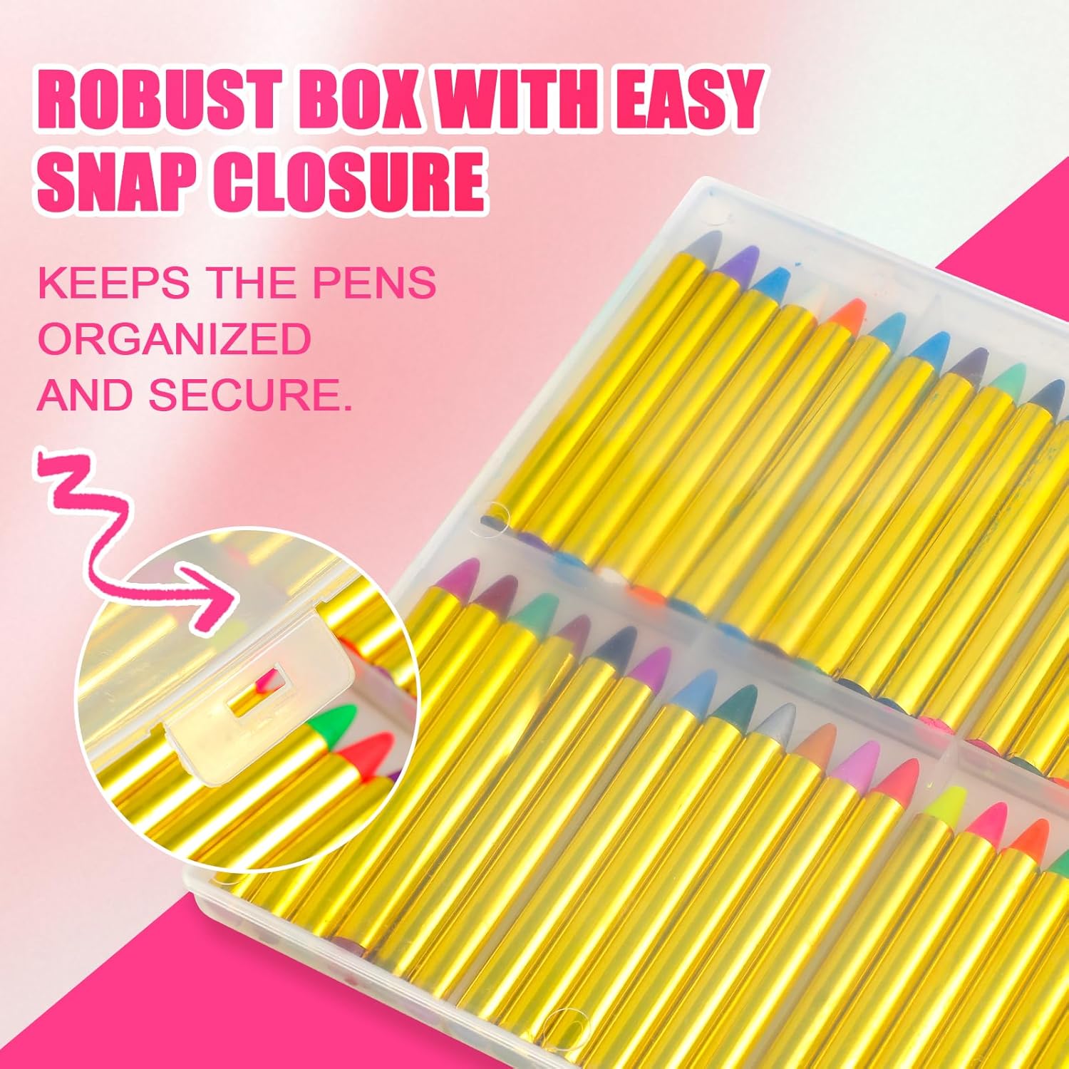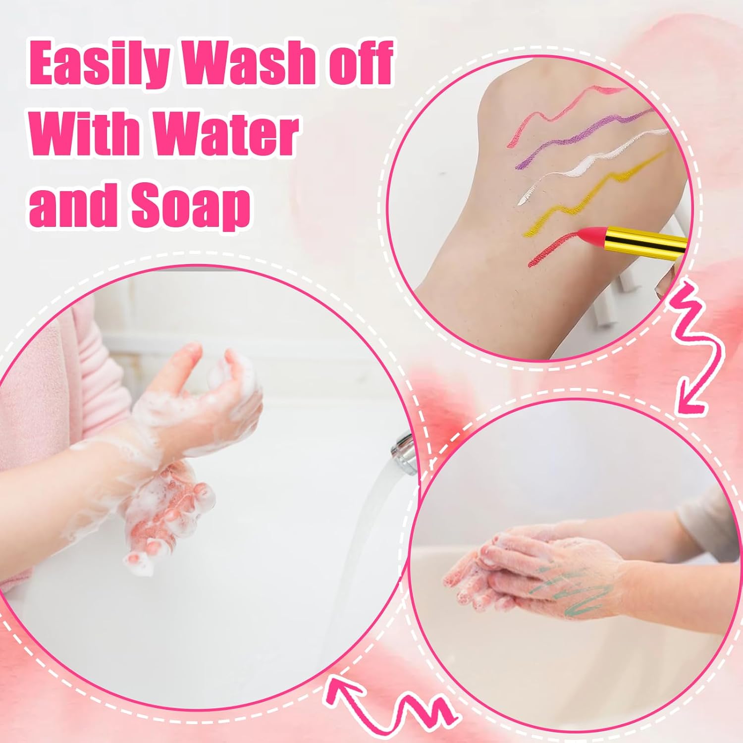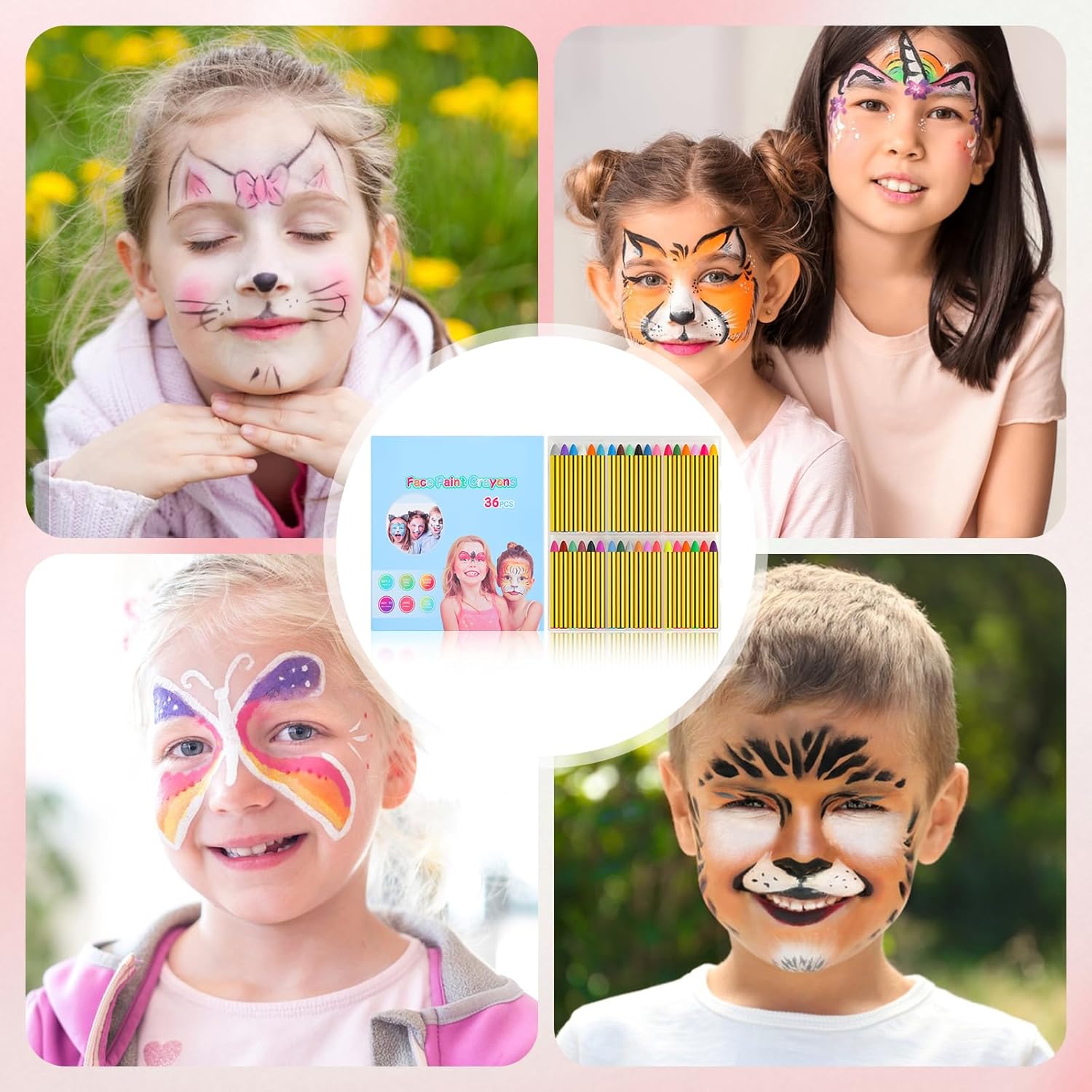 Set trucco bambini creativo con 36 colori – Questo ampio set trucco bambini offre 36 tonalità brillanti per un divertimento senza limiti. Perfetto per Carnevale, compleanni o qualsiasi travestimento fantasioso. Valigetta trucco bambina portatile – Il design compatto della valigetta trucco bambina è ideale da portare ovunque. Perfetta per feste, eventi e momenti di gioco creativo – tutto sempre a portata di mano. Pittura facciale sicura per la pelle delicata dei bambini – La nostra pittura facciale è realizzata con ingredienti delicati e testata dermatologicamente. Si rimuove facilmente con acqua e sapone – ideale come trucca bimbi per bambine. Colori vivaci body painting colori per ogni occasione – Che si tratti di Carnevale, teatro, cosplay o feste per bambini, i nostri body painting colori sono facili da applicare, sfumare e combinare per creare ogni volta look unici. Facile da usare anche per principianti – Grazie alla texture cremosa, i nostri stick si applicano in modo uniforme, senza sbavature o macchie. La scelta perfetta per design fantasiosi con il nostro set trucco bambini per tutte le età.
