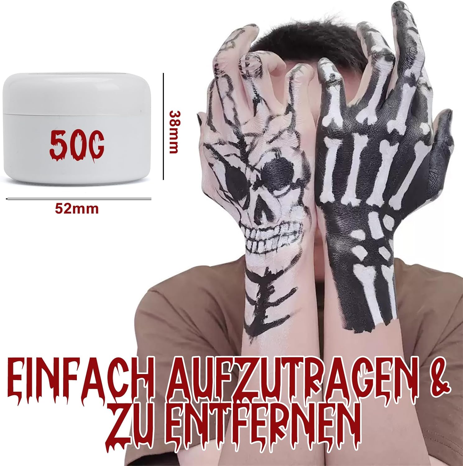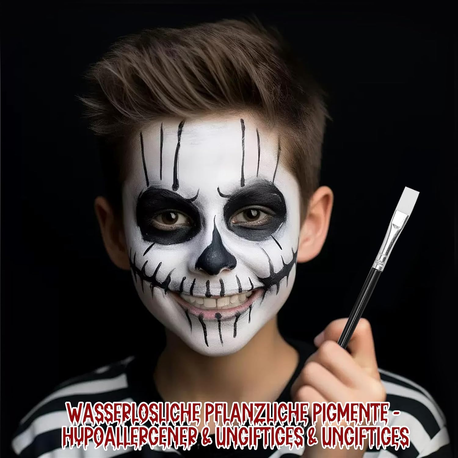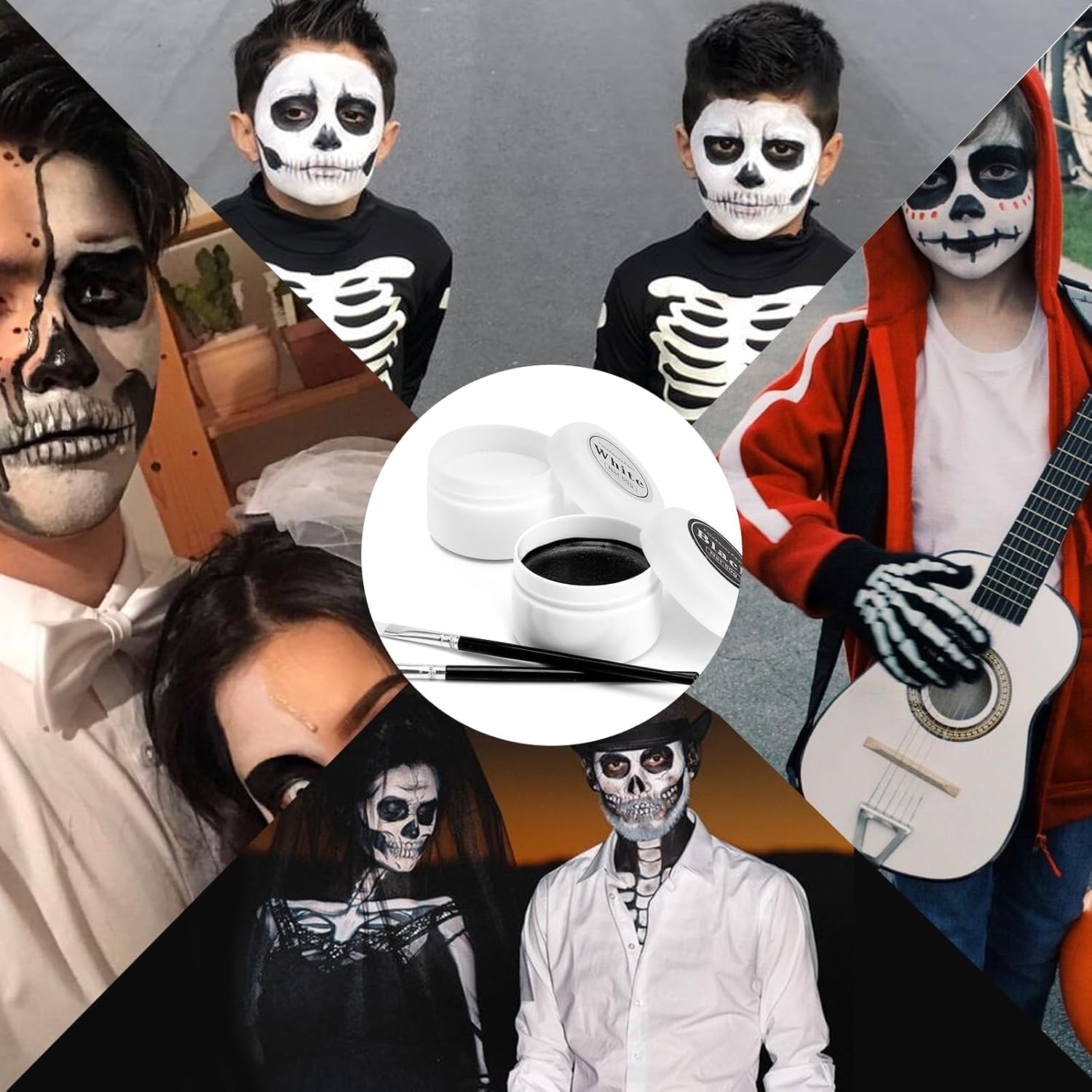 ✅ Trucco a base d'acqua: il trucco di Halloween è prodotto a base vegetale, sicuro, non tossico, senza parabeni, non richiede detergenti aggressivi per essere rimosso completamente, scelta perfetta per bambini e adulti. ✅ Facile da usare: aggiungere alcune gocce d'acqua al colore desiderato per rendere la superficie del trucco di Halloween morbida e pastosa, applicare facilmente con un pennello, creare senza sforzo il trucco desiderato per un look professionale. ✅ Copertura controllabile: trucco di Halloween. È sufficiente applicare 2-3 strati per ottenere la copertura intensa desiderata. Il colore è rimasto vivace e non è sbiadito, anche quando ho sudato o sono entrata in contatto con altre persone. ✅Trucco Halloween Colori base: nero e bianco Trucco Halloween in confezione grande da 50 g, la base per tutti i motivi in bianco e nero come scheletri, clown, mietitori, dalmati, fantasmi, zombie, zebre o gatti. ✅Contenuto della confezione: set di trucchi bianchi e neri contenente 1x 50 g di vernice per il viso nera, 1x 50 g di trucco bianco, 2x pennelli per il trucco (neri), perfetti per Halloween, mascherate, carnevale.