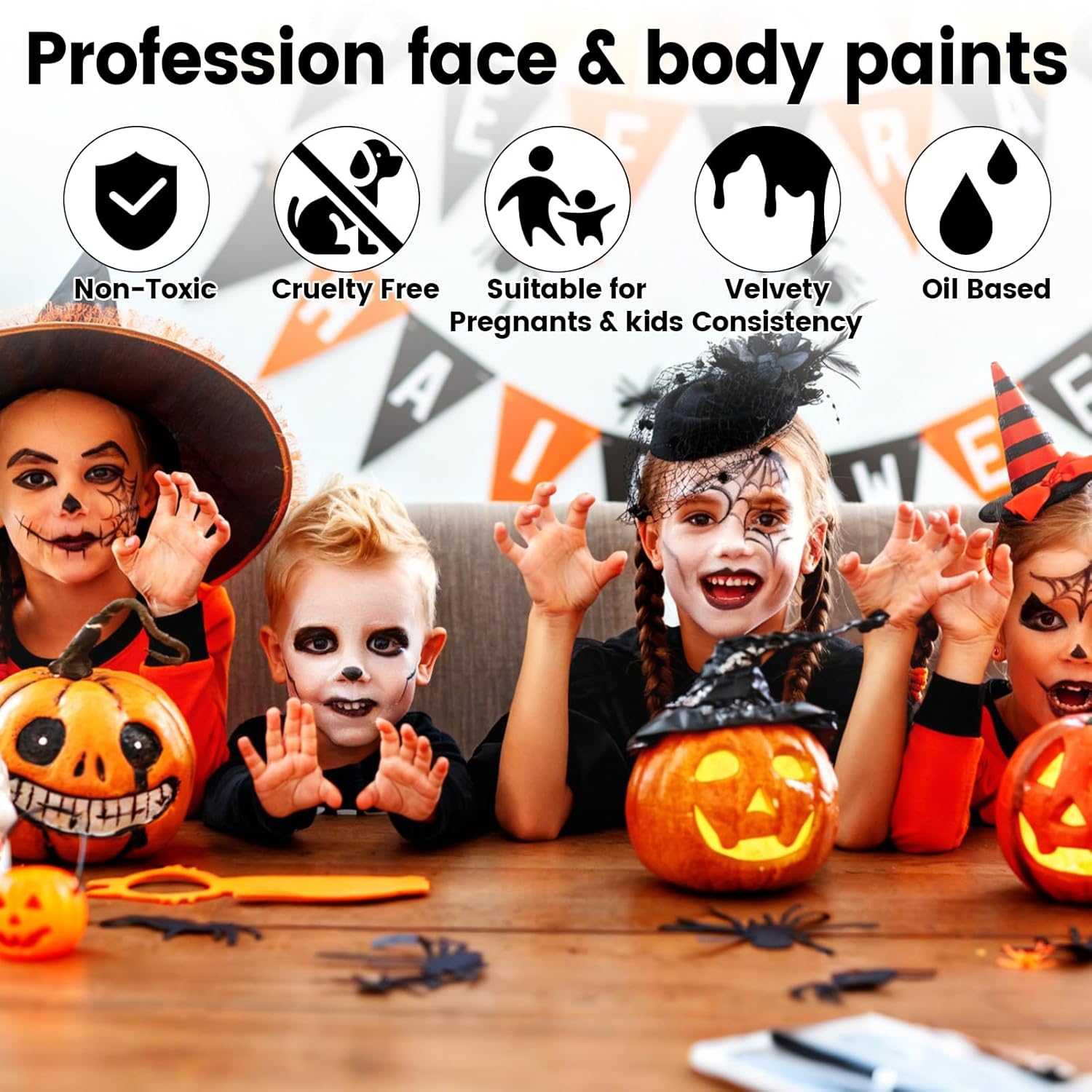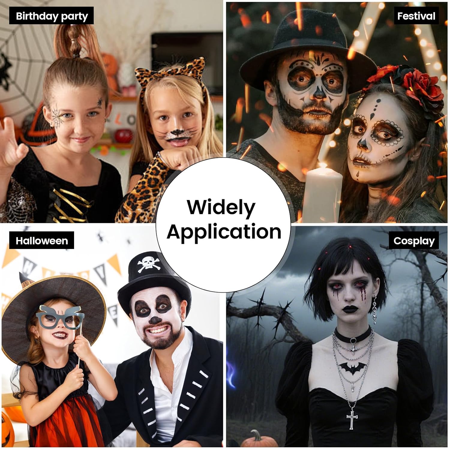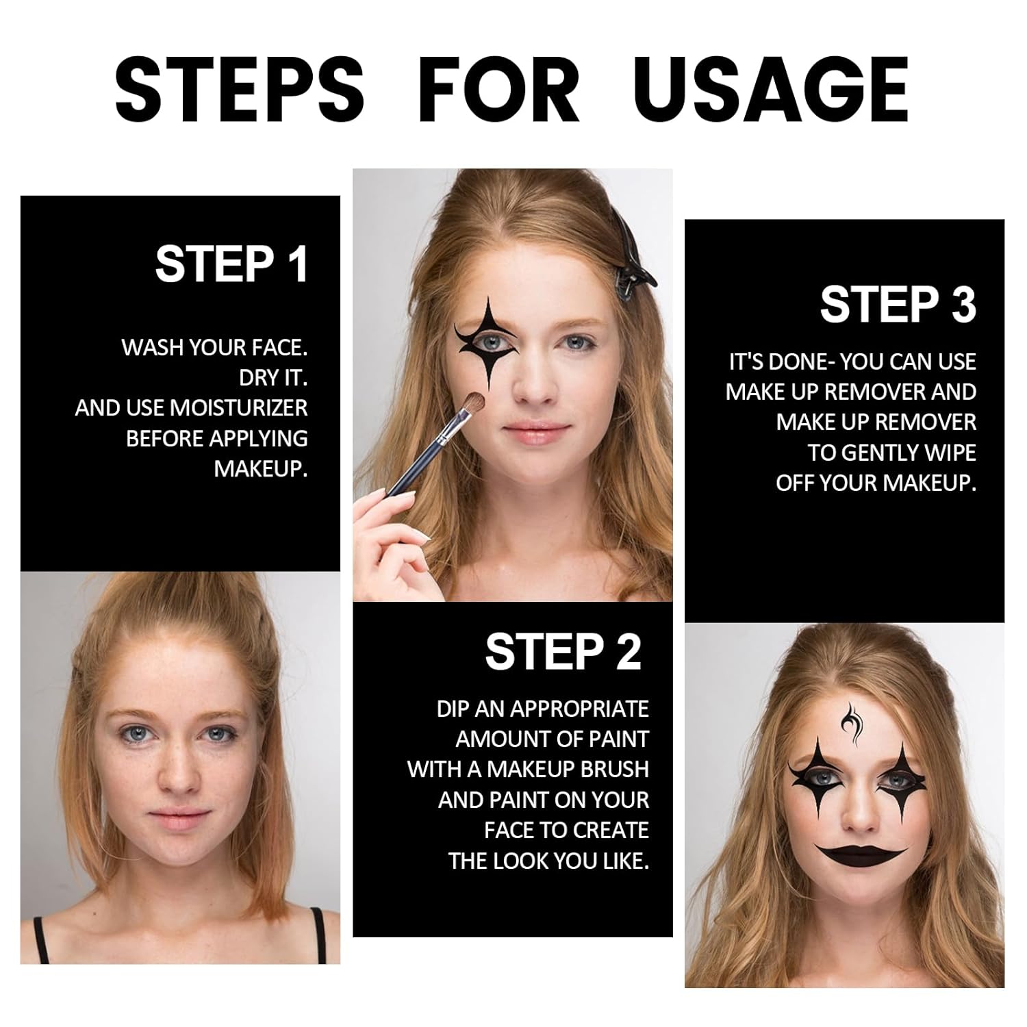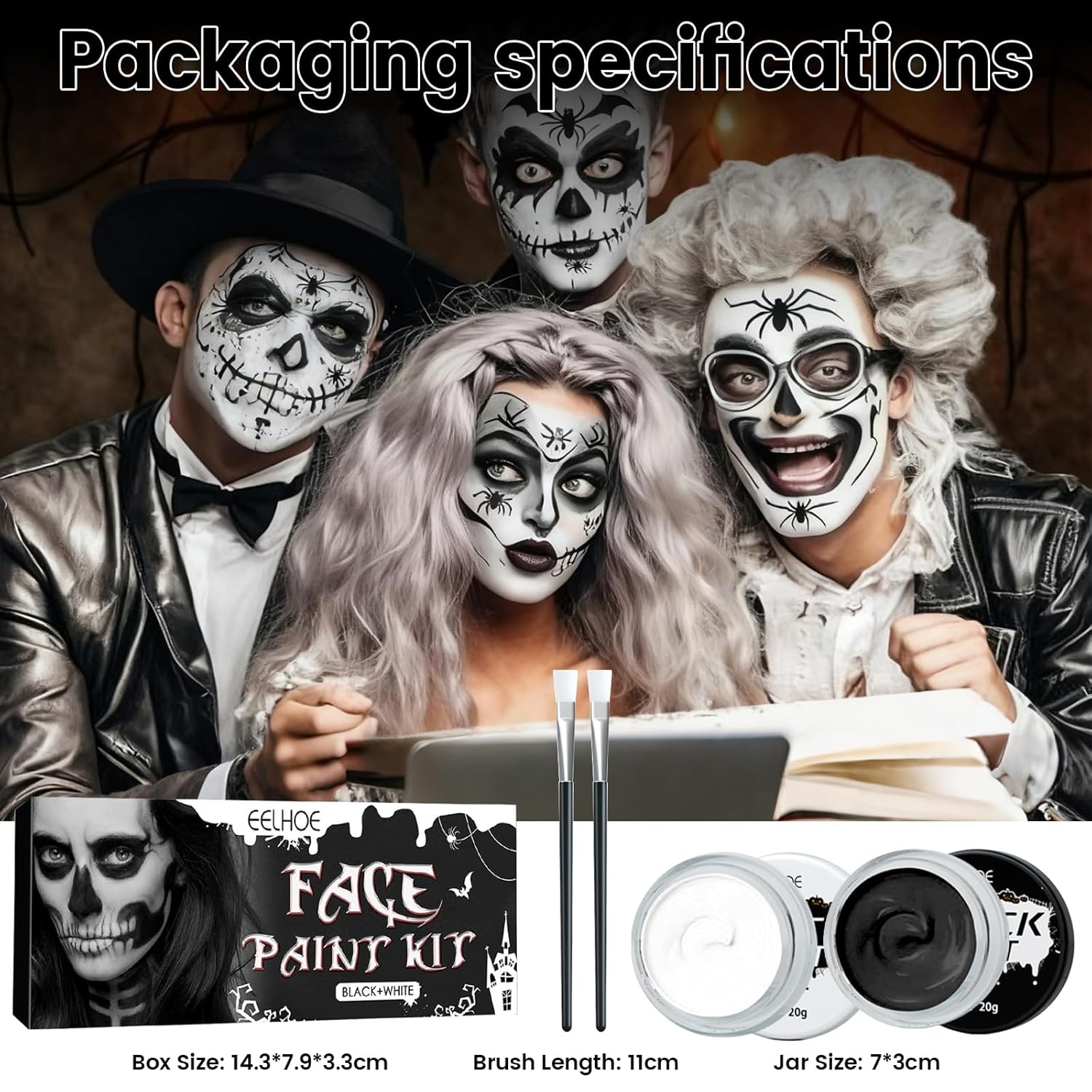 Varietà di colori in bianco e nero: il colore bianco e nero può essere utilizzato direttamente o miscelato per creare sfumature personalizzate. Con 100 g, questo trucco offre tutto il necessario per il tuo trucco di Halloween. Sicuro e delicato sulla pelle: questo set per il trucco di Halloween è composto da ingredienti di alta qualità facili da applicare e idratanti la pelle. Copre tutto il viso senza seccare ed è facile da rimuovere. Si consiglia un test allergico dietro l'orecchio prima dell'uso. Facile da applicare e lavare: questo trucco è facile da usare. Può essere applicato con una spugna, un pennello o con la punta delle dita. Tutto quello che devi rimuovere è un panno umido, acqua e sapone. Trucco Halloween a lunga tenuta: Il trucco offre una copertura completa con una consistenza vellutata e un rilascio di colore intenso che dura a lungo. Dopo l'applicazione, si consiglia di utilizzare una cipria fissa in polvere in modo che il look duri più a lungo e richieda ritocchi meno frequenti. Applicazioni versatili: questo trucco per Halloween è perfetto per dipingere viso e corpo in varie occasioni come Halloween, feste di carnevale, spettacoli teatrali ed eventi scolastici e dell'asilo. Ideale per clown, zombie, vampiri e scheletri SFX: perfetto per feste a tema, cosplay, feste di compleanno e spettacoli teatrali.