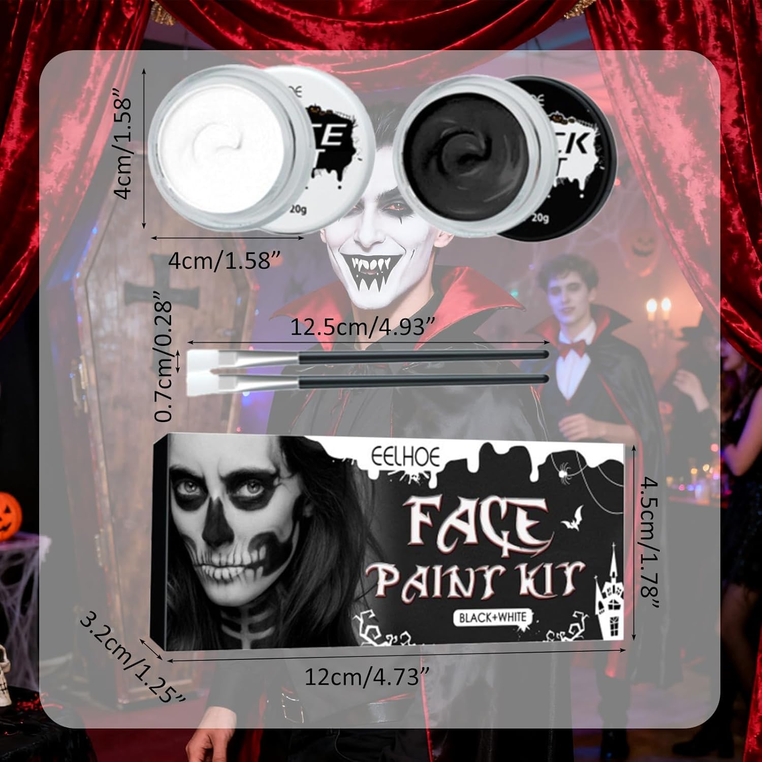 【Trucco versatile per Halloween】 Il trucco per Halloween in bianco e nero può essere utilizzato sia da solo che come colore di base per la miscelazione. Con questo set per il trucco di Halloween puoi creare sfumature personalizzate per una perfetta pittura del corpo e del viso - ideale per ogni festa di Halloween 【Trucco teatrale delicato sulla pelle】 Questo speciale trucco per il teatro è composto da ingredienti morbidi e di alta qualità che possono essere spalmati delicatamente sulla pelle 【Facile da usare】 Il set per il trucco di Halloween è particolarmente facile da usare: il trucco per bambini può essere applicato facilmente con le dita, una spugna o un pennello e con uno struccante professionale Rimuovere senza lasciare residui - perfetto per trasformazioni rapide di carnevale 【Perfetto per tutti celebrazioni】La collezione di trucchi per Halloween è ideale per carnevale, feste a tema, spettacoli teatrali e attività della scuola materna. Questo versatile trucco per Halloween è il compagno ideale per tutte le occasioni festive.,Trucco sicuro per bambini: il nostro set per trucco Halloween in bianco e nero è stato sviluppato appositamente come trucco per bambini non tossico e offre il massimo comfort. Se non sei soddisfatto del tuo trucco per Halloween, contattaci semplicemente entro 24 ore