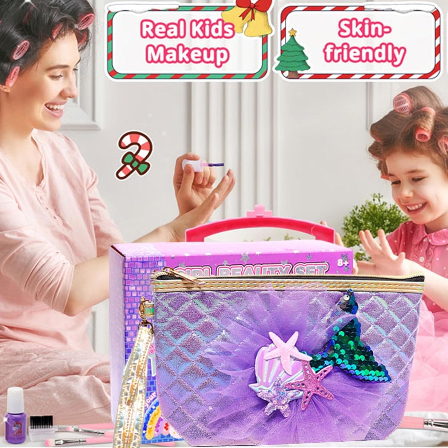 Set completo di trucco per bambini da 26 pezzi. Questo set trucco per bambini contiene 26 pezzi, tra cui lucidalabbra, ombretto, fard e accessori per unghie, ti offre tutto ciò di cui hai bisogno per sperimentare la loro applicazione di trucco creativa e pratica. MATERIALE SICURO E LAVABILE: Realizzato con materiali sicuri, questo set per il trucco lavabile garantisce che i tuoi bambini siano al sicuro mentre giocano. Tutti gli articoli per il trucco si lavano facilmente, consentendo un divertimento senza fine senza macchie. Gioco creativo per bambini dai 3 ai 12 anni: questo set di trucchi per bambini è perfetto per i bambini dai 3 ai 12 anni e incoraggia il gioco di ruolo, incoraggia la creatività e sviluppa le capacità motorie. Lascia che tuo figlio esplori la sua immaginazione attraverso routine di trucco e bellezza in un ambiente divertente e sicuro. PER OGNI OCCASIONE: Che sia per compleanni, vacanze o semplicemente come regalo divertente, questo set di trucchi creativi è un ottimo regalo per le ragazze che amano giocare a travestirsi e sperimentare strumenti di bellezza. Portatile e facile da riporre: il set per il trucco include una comoda scatola portaoggetti, che semplifica l'organizzazione e il mantenimento dei pezzi in posizione. Perfetto per giocare a casa o in viaggio, rendendolo un ottimo compagno di viaggio per gli appassionati di bellezza.