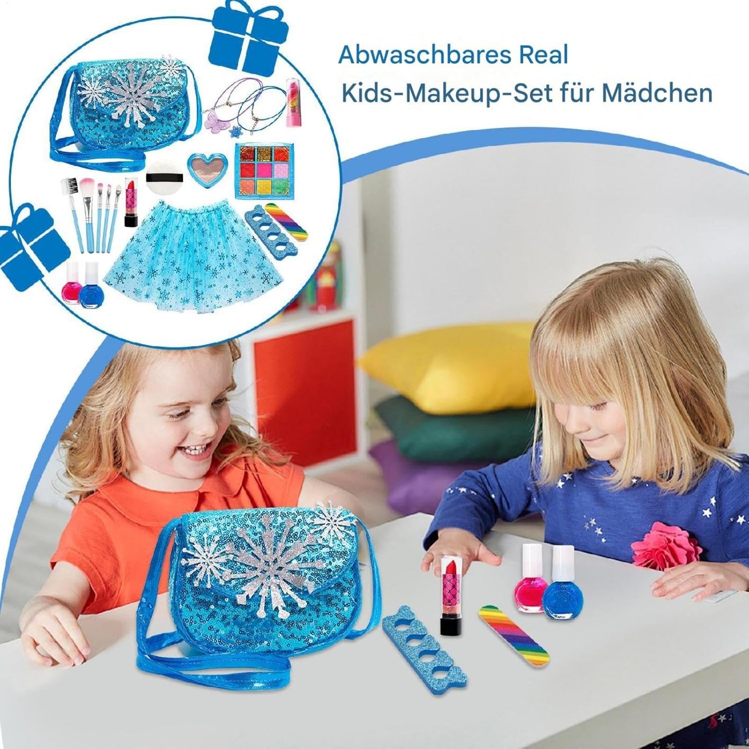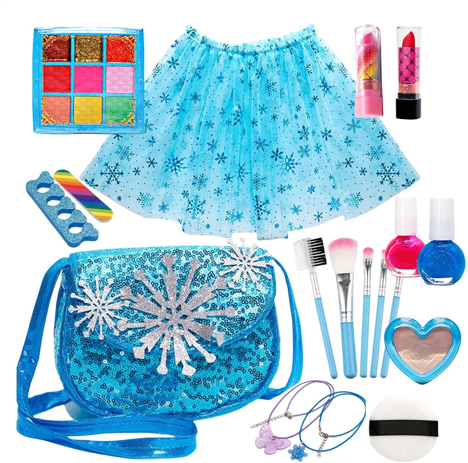 Set trucco per bambine: con un set di accessori per unghie, un set di strumenti per il trucco e una spaziosa borsa per il trucco, questo set conveniente contiene tutti gli accessori indispensabili per un momento di gioco emozionante. Include ombretto, rossetto, fard, cipria e lucidalabbra per un divertimento ancora maggiore e ha anche un separatore per unghie dei piedi e una lima per unghie per una preparazione professionale delle unghie Formula naturale: i nostri set di trucco per bambine sono realizzati con materiali morbidi e delicati sulla pelle, ecologici e facili da lavare, così il tuo bambino può esprimere la propria creatività in un ambiente sicuro Efficiente e pratico: la custodia rigida è spaziosa e ha molti scomparti in modo che tutto rimanga organizzato mentre la robusta maniglia per Spark Imagination garantisce un facile utilizzo: promuove l'espressione artistica con diversi colori per una varietà di effetti. Il set per il trucco lavabile per bambini offre un'esperienza di trucco divertente. Buona scelta per i regali: questo set per il trucco per bambine risveglia l'immaginazione e incoraggia l'espressione creativa, fornendo un'idea regalo unica e accattivante per i compleanni e altro ancora. Fai un regalo che incoraggi il gioco lontano dagli schermi e il gioco fantasioso