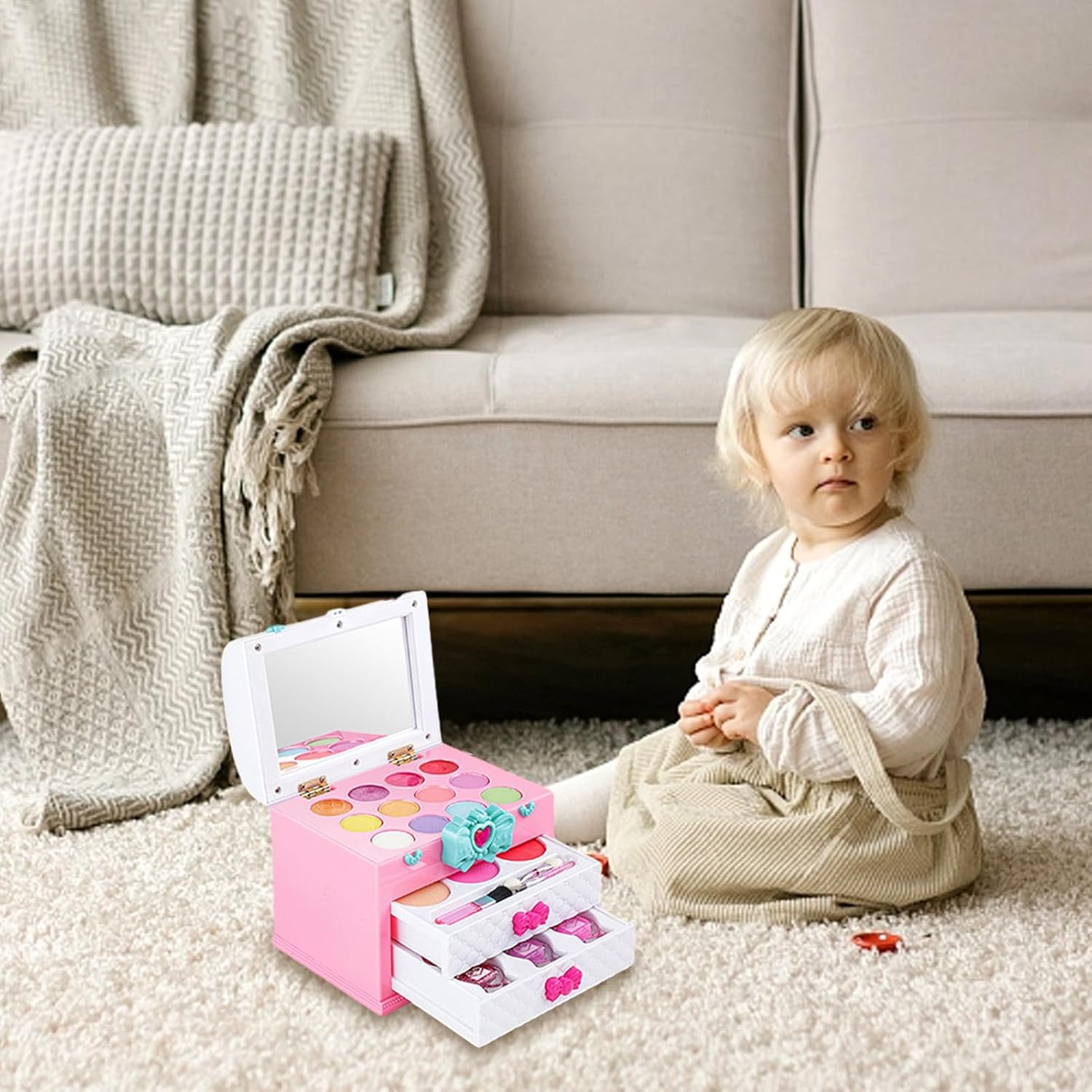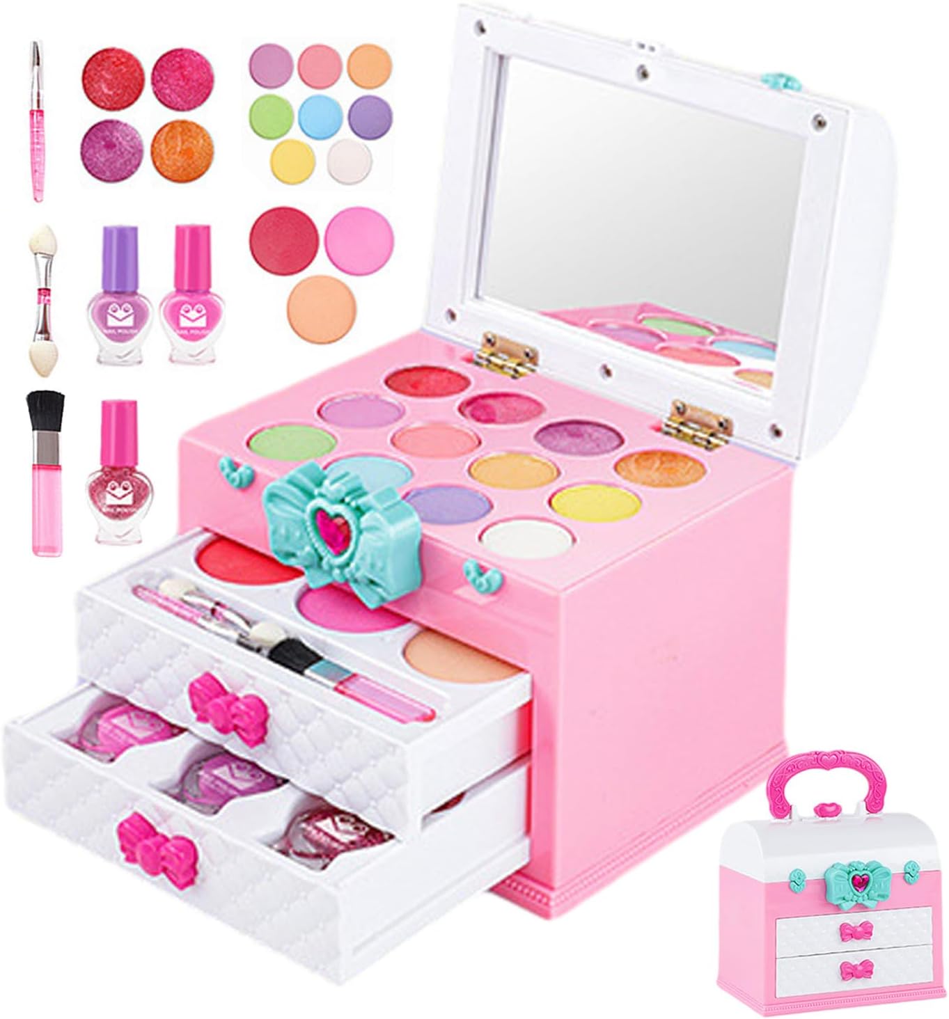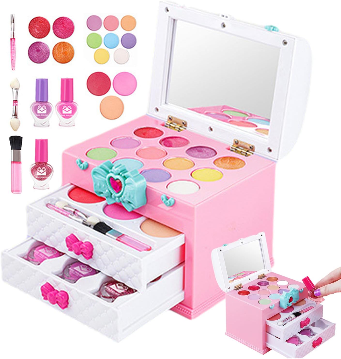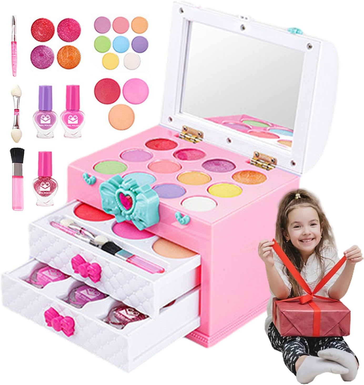✺Comodo e sicuro: presenta un design a misura di bambino ed è realizzato in ABS resistente, incolore e inodore, sicuro per le mani dei più piccoli. Rilassati con prodotti per il trucco innocui, perfetti per il gioco fantasioso. ✺Set completo di trucco: lascia risplendere la creatività di tuo figlio con il nostro set completo di trucco. Include 8 ombretti, 3 tonalità di blush e 4 opzioni di lucidalabbra. E per divertirti ancora di più, ci sono 2 smalti glitter e 2 colori per le dita idrosolubili. ✺Incoraggia la creatività: questo set di trucchi per bambini è semplice e facile da applicare e crea qualsiasi look tu voglia, da carino a elegante. Con i colori vivaci, puoi divertirti con i giochi pre-trucco e creare bellissimi trucchi senza sembrare troppo adulta. ✺Supporta lo sviluppo sociale ed emotivo: con il set di trucchi per bambini, tuo figlio può sperimentare un migliore sviluppo sociale ed emotivo. Incoraggia l'immaginazione e la creatività e non solo supporta l'autostima e la fiducia in se stessi, ma migliora anche la coordinazione occhio-mano e la flessibilità. ✺Regalo squisito: questo set di trucchi per bambini è perfetto per tutte le occasioni speciali come eventi in maschera, feste di compleanno, Natale, feste da principessa e altro ancora. È un regalo squisito che incoraggia la creatività e l'immaginazione.