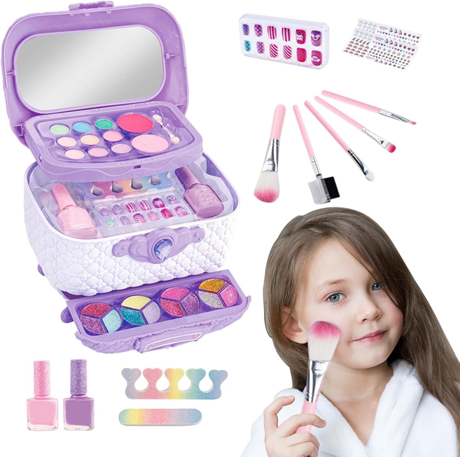 Divertimento che aumenta la fiducia: progettato per le ragazze dai 4 ai 12 anni, questo kit di trucco per bambini offre un'attività emozionante e di rafforzamento della fiducia che combina il miglioramento estetico con la creatività. Con divertenti giochi interattivi, è l'ideale per migliorare le tue abilità divertendoti. Custodia per trucchi organizzata: mantieni i cosmetici di tuo figlio organizzati con la soluzione di archiviazione semplificata del nostro set per trucchi per bambini. I suoi numerosi scomparti, la custodia per il trucco organizzata e il design compatto e adatto ai viaggi forniscono una disposizione pratica e intelligente per ritocchi all'aperto o soluzioni rapide per il trucco. Set completo Princess: la gamma di prodotti comprende smalti per unghie, ombretti e altri articoli, offrendo ai clienti un'ampia selezione di prodotti per il trucco per una sessione di bellezza divertente e completa. Design a misura di bambino: consenti ai tuoi bambini di divertirsi innocui con il nostro set per il trucco, progettato secondo standard di sicurezza riconosciuti e componenti lavabili e solubili in acqua. È delicato sulla pelle dei bambini e sicuro da usare. Inoltre, è facile da pulire, offrendo ai genitori tutto il tempo necessario per far giocare i propri figli. Opzioni regalo ideali: con questo set di trucchi per principianti, puoi trascorrere ore di gioco fantasioso. È ideale per spettacoli e feste e un regalo perfetto per ragazze di tutte le età. Goditi del tempo prezioso tra genitori e figli creando divertenti look per il trucco e stimolando la creatività attraverso attività di gioco di ruolo interattive