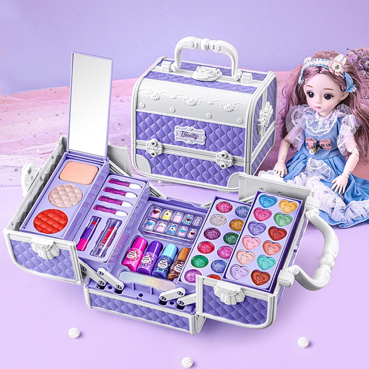 Delicato sulla pelle giovane: realizzato con cura con ingredienti naturali, questo set per il trucco lavabile con manico si rimuove facilmente con acqua e sapone ed è delicato sulla pelle sensibile. Incredibile set di trucchi: contiene una straordinaria selezione che garantisce un'esperienza deliziosa ad ogni utilizzo ed è perfetto per ispirare la creatività delle ragazze. GIOCATTOLI EDUCATIVI VERSATILI: con il nostro set di trucchi per bambini, la tua piccola principessa può realizzare il suo sogno di imitare le attività degli adulti pur avendo un giocattolo educativo completo che incoraggia la creatività e il gioco fantasioso. Facile da trasportare: trasporta facilmente trucchi, giocattoli e accessori in questa versatile custodia rigida con una comoda maniglia per il trasporto: una soluzione perfetta per i bambini all'aperto. Regalo pratico: regala alla tua bambina il regalo perfetto per il compleanno o la festa dei bambini con questo set per il trucco sicuro. Progettato come alternativa al trucco per adulti, consente ai bambini dai 3 ai 12 anni di praticare in sicurezza le proprie abilità di bellezza.