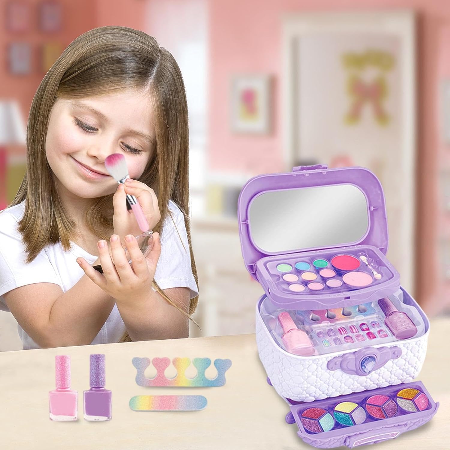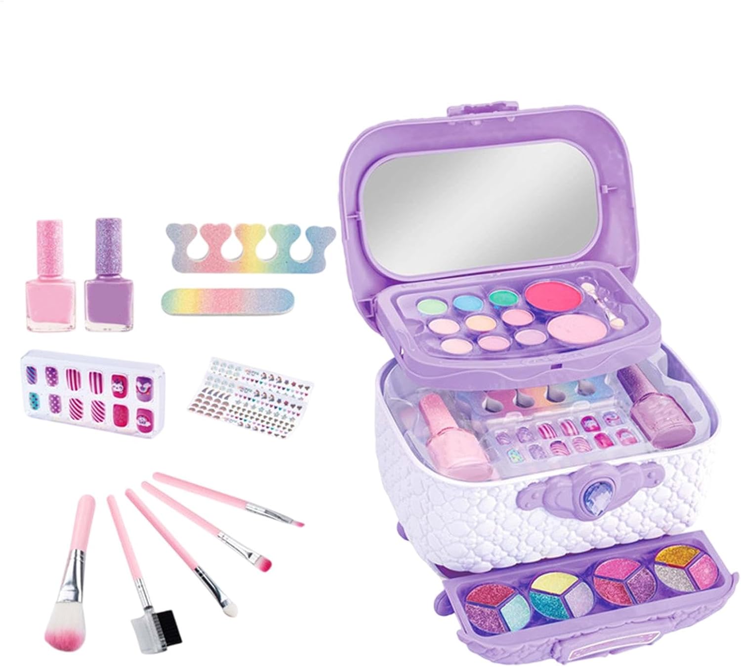 DIVERTIMENTO CREATIVO CHE AUMENTA LA FIDUCIA: incoraggia la sicurezza e la creatività di tuo figlio con questo set di trucchi per ragazze dai 4-6-8-10-12 anni. Rafforza le loro capacità estetiche e promuove l'apprezzamento per la bellezza attraverso divertenti giochi interattivi. Perfetto per un'attività che aumenta la fiducia in se stessi e migliora la creatività. Set compatto e portatile: questo set per il trucco per bambini compatto e portatile è la soluzione di archiviazione ideale, offrendo al tuo bambino una disposizione intelligente e più scomparti per tutti i suoi cosmetici. Scelte di trucco entusiasmanti: con lima per unghie, babundant, rossetto in cera, rossetto lucido, cipria pressata colorata e pennello per il trucco, questo set di trucco per bambini offre strumenti di bellezza completi per un'esperienza di trucco divertente e degna di una principessa. Design a misura di bambino: regala a tuo figlio la propria esperienza di trucco con il nostro set di trucco per bambini, realizzato con materiali sicuri e lavabili che soddisfano gli standard di sicurezza riconosciuti. I nostri ingredienti solubili in acqua sono delicati sulla pelle dei bambini e sicuri da usare, rendendolo il regalo perfetto per i tuoi bambini. Regalo divertente: porta gioia ed eccitazione durante il gioco tra genitori e figli con questo set di trucchi per bambini, perfetto per giochi di ruolo e feste. Un set ideale per iniziare, è un regalo fantastico per le ragazze di tutte le età e offre più opportunità di gioco fantasioso