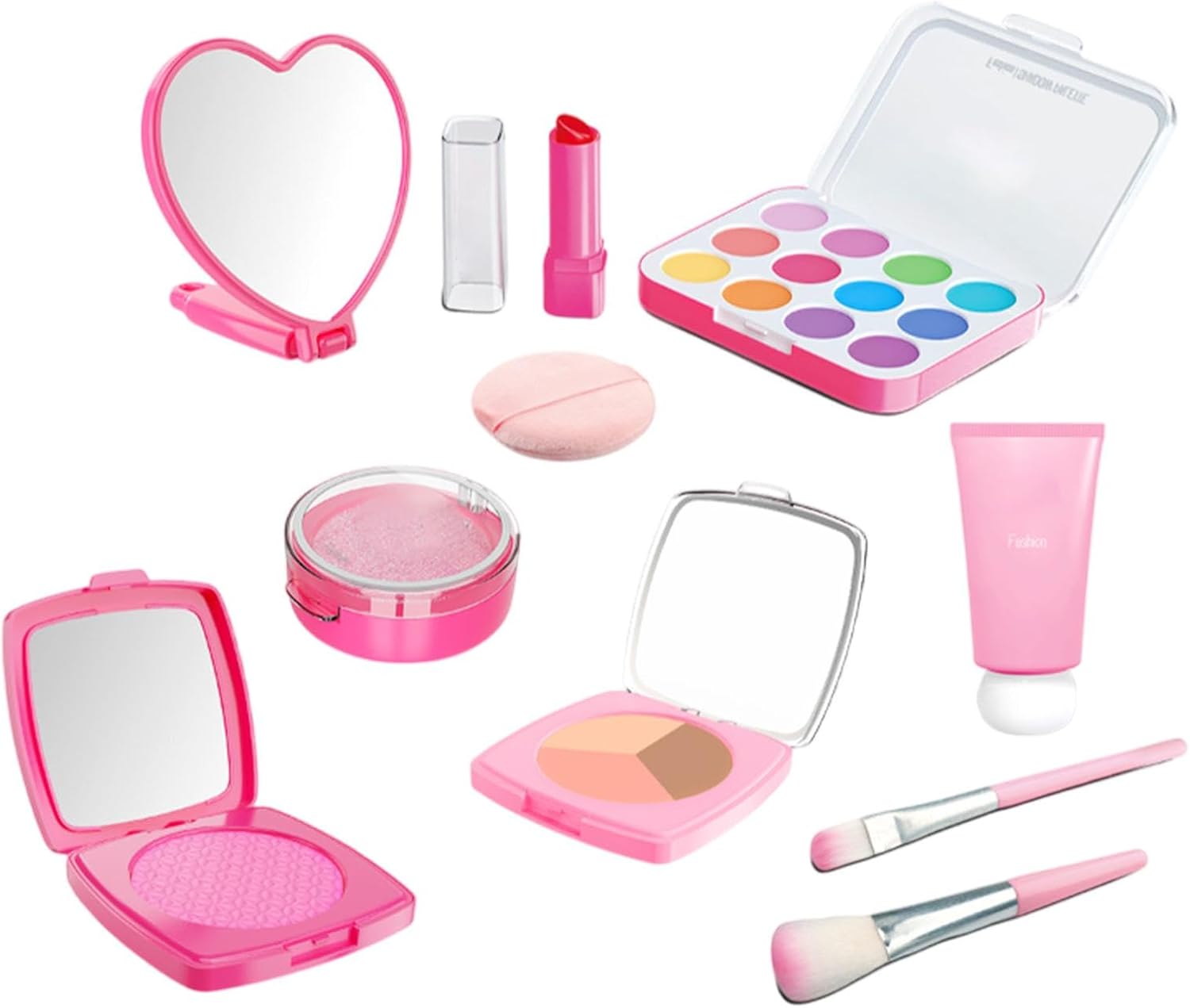Pregevole fattura: goditi il gioco fantasioso e imita cosmetici autentici, tra cui rossetto e una tavolozza di ombretti. I dettagli squisiti promuovono l'abilità estetica dei bambini e il divertimento dei giochi di ruolo. Uso sicuro: poiché è un giocattolo che non sbava, i genitori possono lasciare che i loro bambini giochino liberamente senza preoccuparsi dell'ingestione accidentale. Ciò promuove la creatività e soddisfa la curiosità dei bambini riguardo al trucco, tenendo presente la salute e la sicurezza. Facile da usare: i nostri set di trucco per ragazze coltivano anche l'immaginazione e le abilità pratiche dei bambini. I bambini possono giocare a giochi interattivi con la famiglia o gli amici per migliorare le loro abilità sociali. Il set contiene una varietà di strumenti e decorazioni per il trucco, che consentono ai bambini di creare look diversi e una facile applicazione. Multiuso: il manuale di istruzioni di questo set di trucchi per ragazze fornisce consigli di bellezza e consigli per la cura della pelle, fornendo ai bambini conoscenze pratiche. Attraverso il gioco, i bambini possono migliorare le loro capacità di risoluzione dei problemi e comprendere le conoscenze estetiche di base mentre imparano a prendersi cura di se stessi e degli altri. Regalo perfetto: regala alle ragazze set di trucchi per mostrare la tua cura durante compleanni o feste o trasmettere buoni auguri per il loro sviluppo futuro. Questo regalo premuroso porta divertimento e stimola la creatività dei bambini mentre giocano