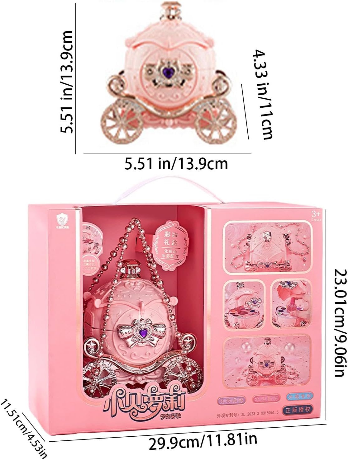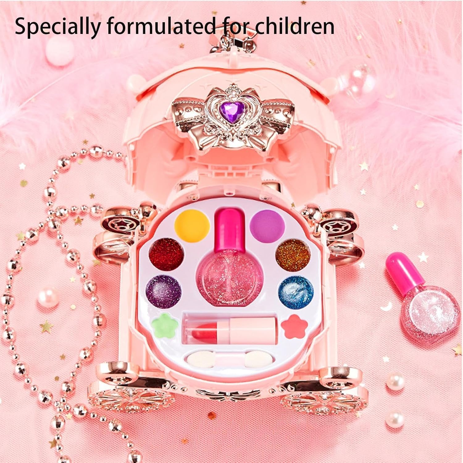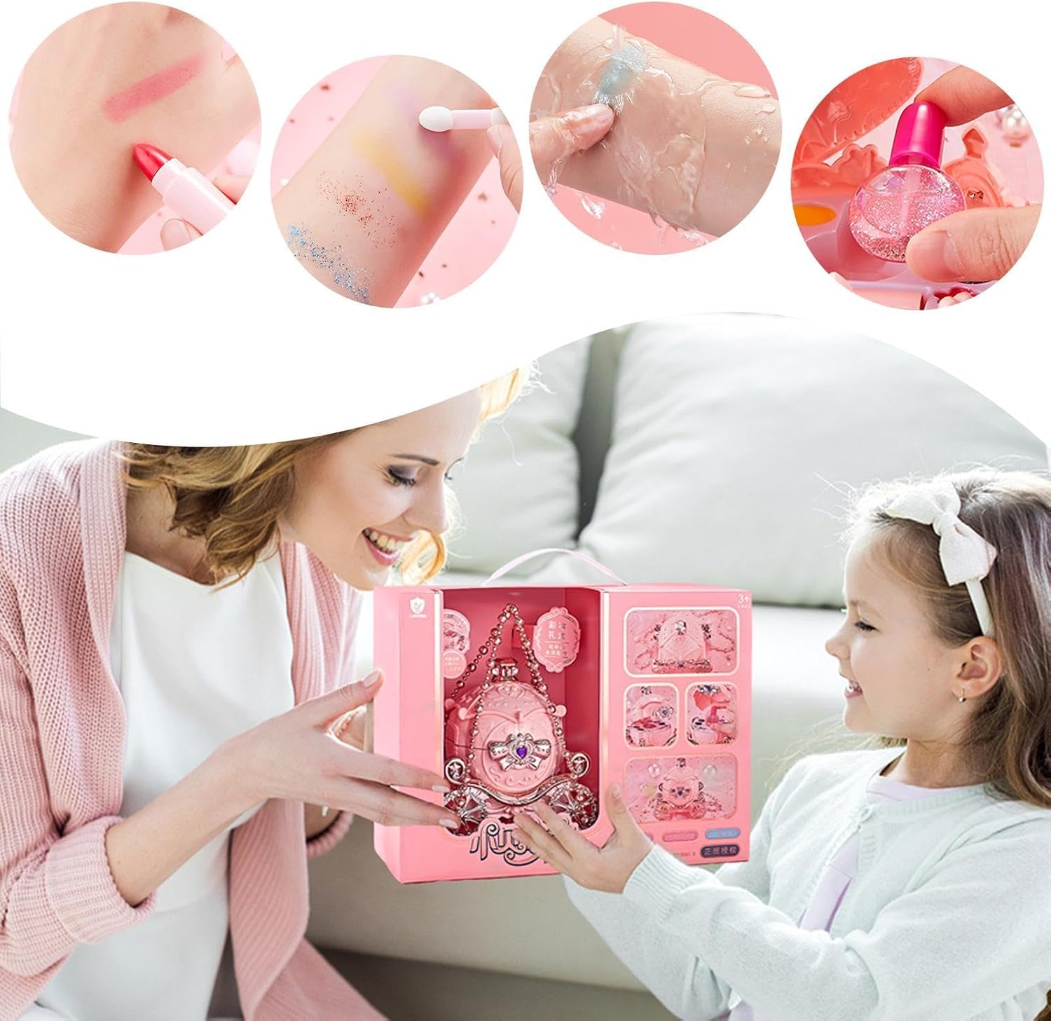 【Forme affascinanti】 Forme divertenti e affascinanti, borsetta, carrozza e corona rendono questo set di trucchi irresistibile per le bambine. È difficile da mettere da parte, rendendolo un regalo eccellente 【SET COMPLETO】 Prepara il tuo bambino per un'esperienza di trucco eccezionale con una confezione regalo giocattolo completa che contiene un'entusiasmante varietà di cosmetici tra cui rossetto, smalto e ombretto. Incoraggia il gioco creativo, l'espressione personale e più divertimento. Adatto ai bambini: realizzato con una formula solubile in acqua, il nostro set per il trucco garantisce un gioco sicuro e divertente, appositamente progettato per essere delicato sulla pelle sensibile e prevenire le irritazioni.,Facile da pulire: organizzare è un gioco da ragazzi con questo set di trucco per ragazze. Con una semplice funzione di lavaggio, tuo figlio può pulire facilmente dopo aver giocato, garantendo ordine e comodità.,Souvenir meraviglioso: aiuta le ragazze a sviluppare la loro creatività con questo set per il trucco, che è un regalo ideale per Natale e compleanni. Questo set aiuterebbe anche a coltivare il senso di responsabilità e di cura del bambino, rendendolo un'eccellente aggiunta alla sua collezione di cosmetici.