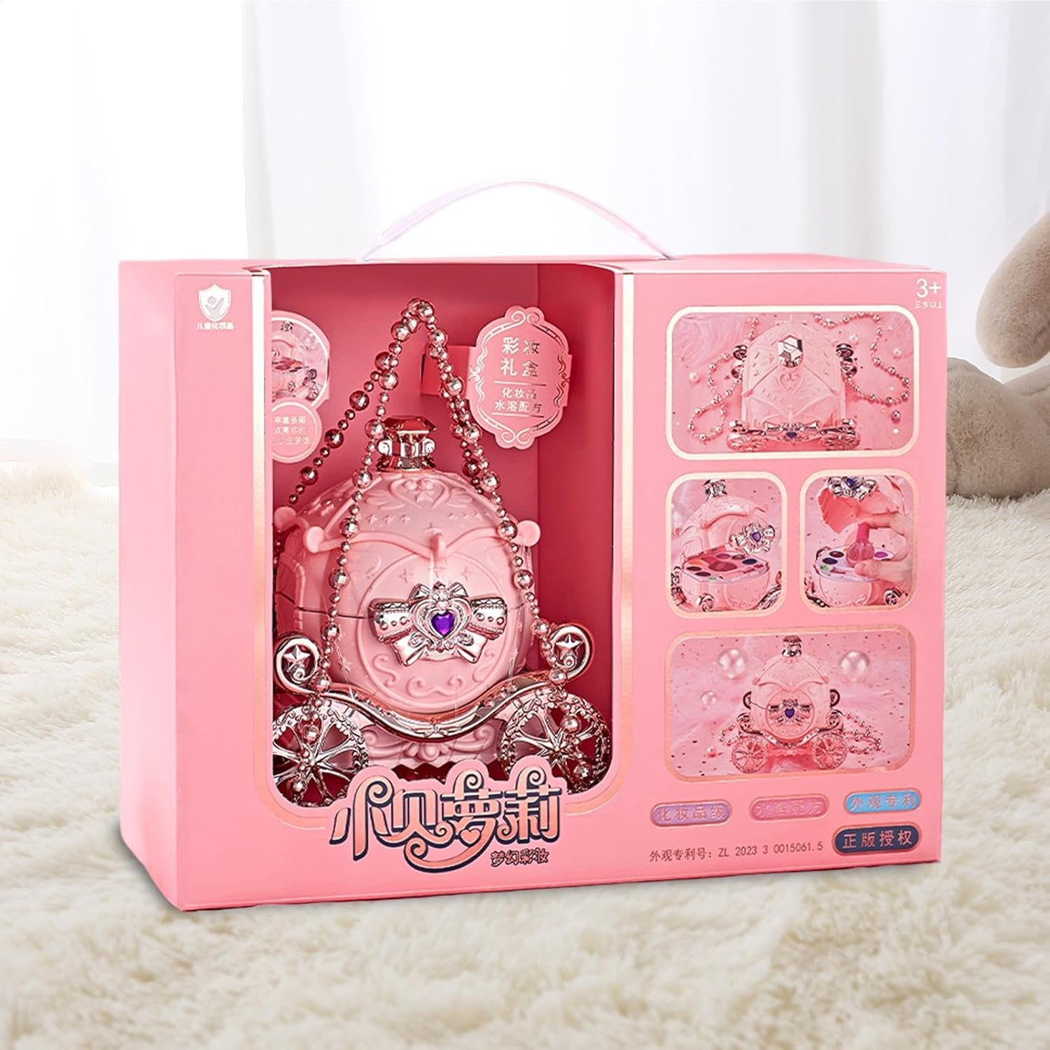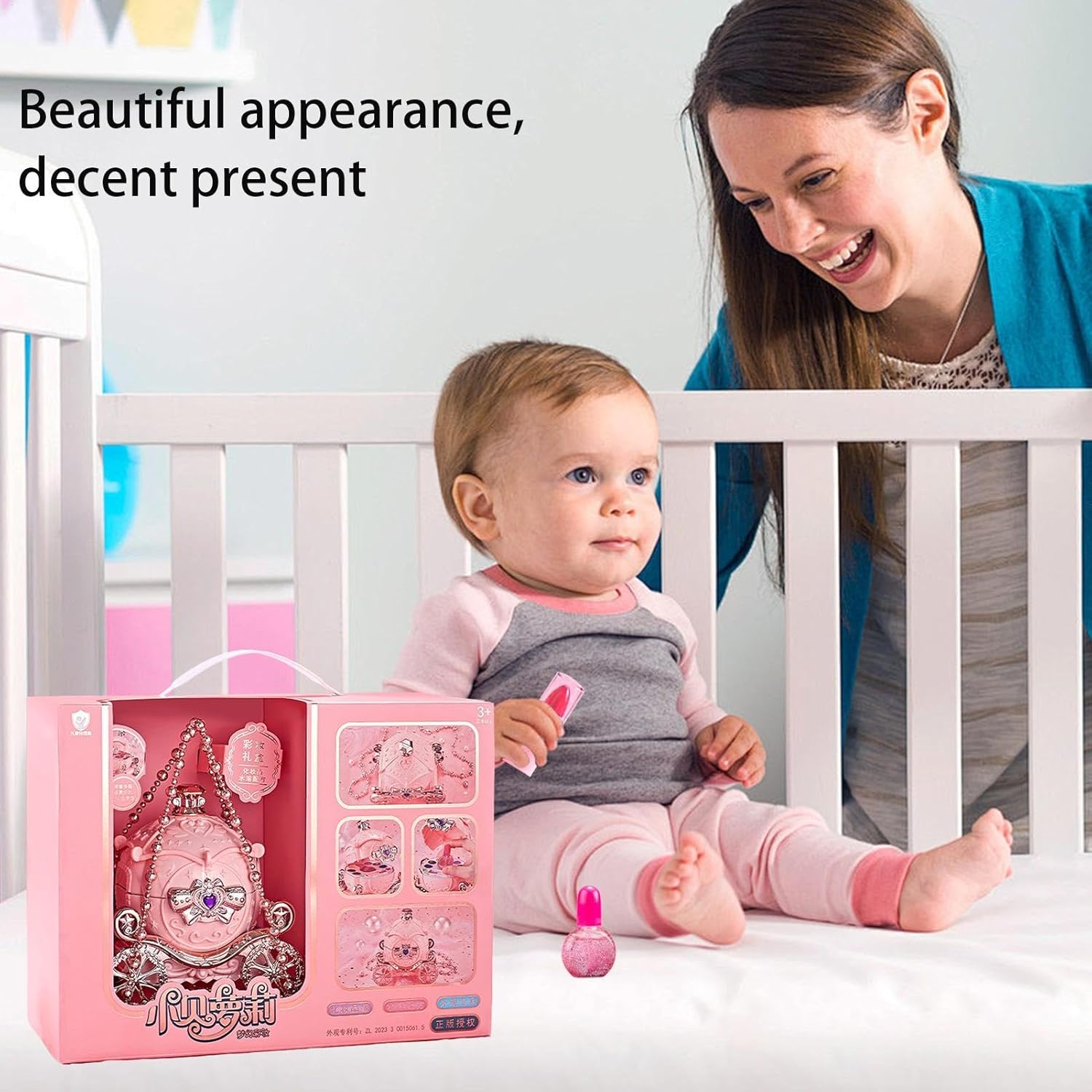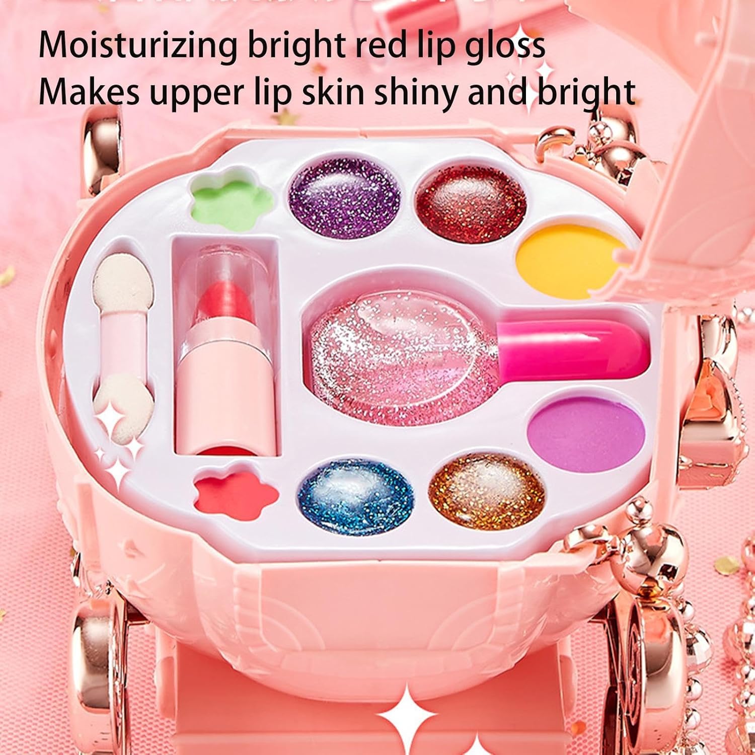【Forme affascinanti】 Forme divertenti e affascinanti, borsetta, carrozza e corona rendono questo set di trucchi irresistibile per le bambine. È difficile da mettere da parte, rendendolo un regalo eccellente 【SET COMPLETO】 Prepara il tuo bambino per un'esperienza di trucco eccezionale con una confezione regalo giocattolo completa che contiene un'entusiasmante varietà di cosmetici tra cui rossetto, smalto e ombretto. Incoraggia il gioco creativo, l'espressione personale e più divertimento. Adatto ai bambini: realizzato con una formula solubile in acqua, il nostro set per il trucco garantisce un gioco sicuro e divertente, appositamente progettato per essere delicato sulla pelle sensibile e prevenire le irritazioni.,Facile da pulire: organizzare è un gioco da ragazzi con questo set di trucco per ragazze. Con una semplice funzione di lavaggio, tuo figlio può pulire facilmente dopo aver giocato, garantendo ordine e comodità.,Souvenir meraviglioso: aiuta le ragazze a sviluppare la loro creatività con questo set per il trucco, che è un regalo ideale per Natale e compleanni. Questo set aiuterebbe anche a coltivare il senso di responsabilità e di cura del bambino, rendendolo un'eccellente aggiunta alla sua collezione di cosmetici.