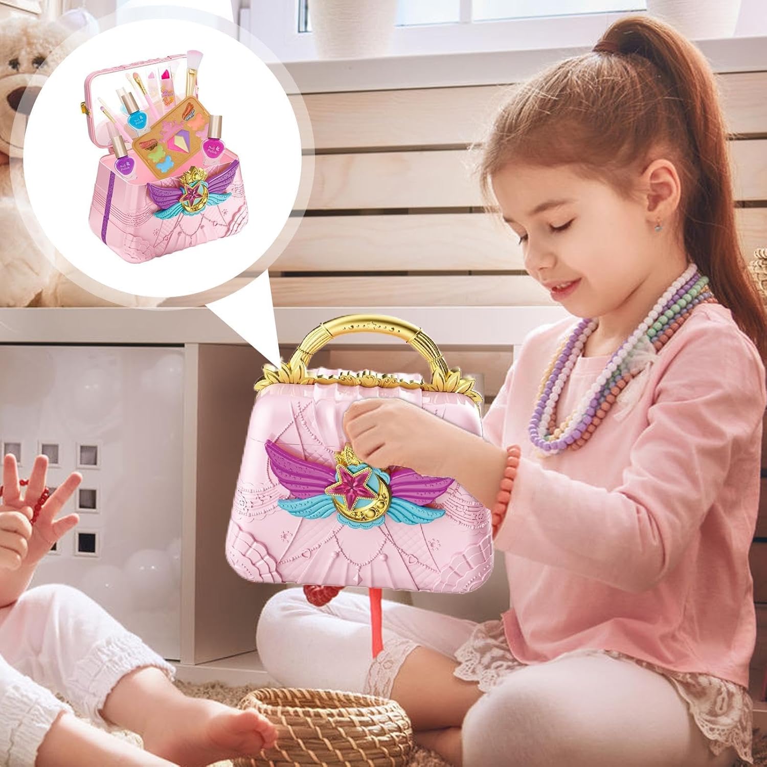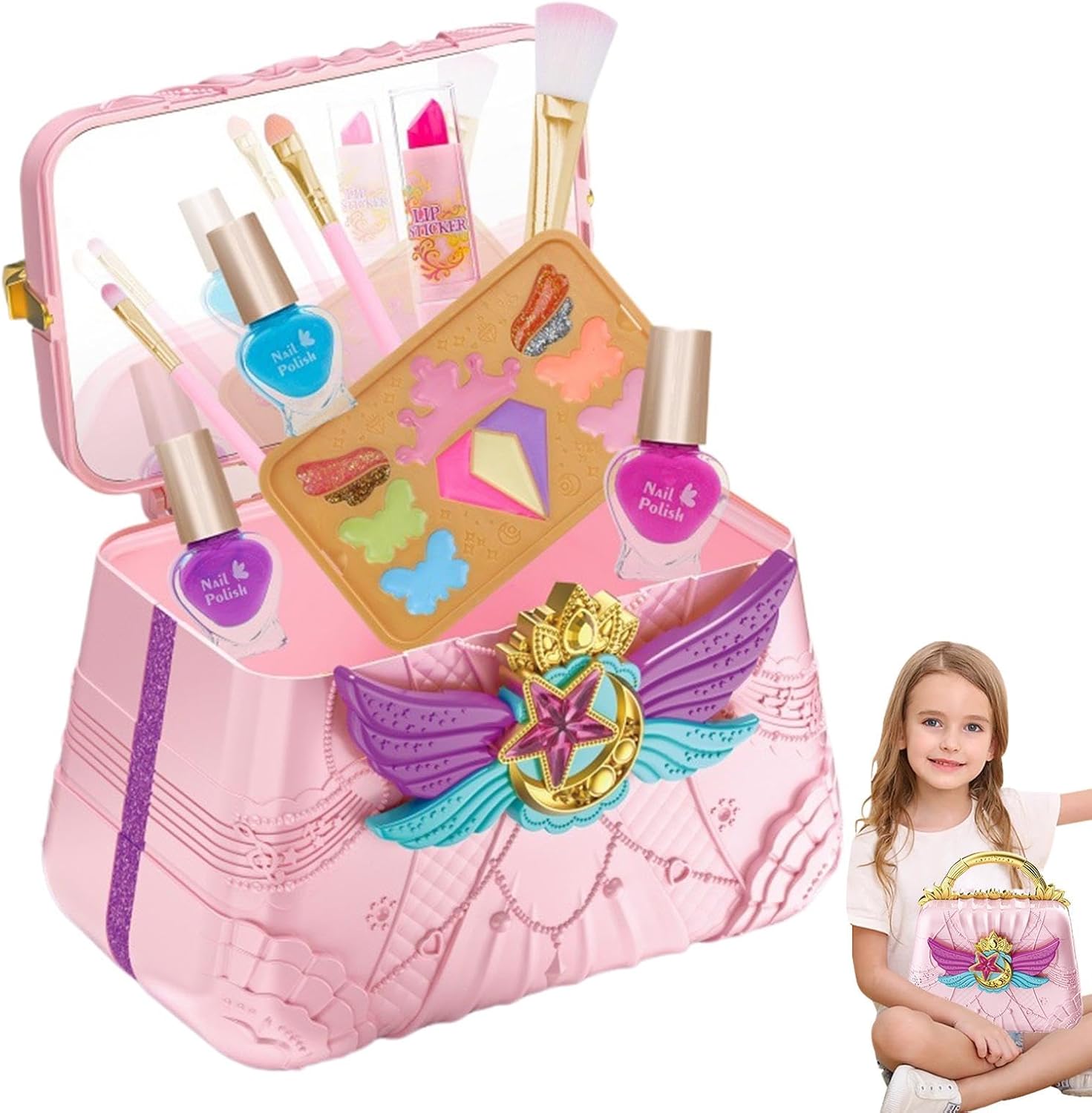 Ricco set di cosmetici: include smalto per unghie, ombretto, lucidalabbra, fard, rossetto e pennelli per il trucco, per soddisfare le diverse esigenze decorative del tuo bambino. Meraviglioso per soddisfare le diverse esigenze di decorazione ed evidenziarne la bellezza. Incoraggia l'immaginazione: il nostro set di trucchi per bambini per ragazze offre più opzioni di bellezza e promuove l'immaginazione e la creatività. Attraverso il gioco, i bambini possono migliorare le loro capacità motorie e scoprire look nuovi ed entusiasmanti. Priorità alla sicurezza: il nostro set di trucchi per bambini per ragazze è realizzato con materiali sicuri e delicati sulla pelle. Tutti i cosmetici si lavano facilmente con acqua, garantendo la salute e la sicurezza del tuo bambino. Comodo da trasportare: il nostro set trucco per bambini viene fornito con una splendida custodia che garantisce un'organizzazione intelligente e una facile trasportabilità. Con il suo design antipolvere e la comoda maniglia, semplifica l'organizzazione del trucco e consente di risparmiare spazio. Regalo meraviglioso: lascia che i tuoi bambini mostrino la loro individualità e il loro fascino con questo set di trucchi per bambini. Meraviglioso per occasioni speciali come compleanni e Natale. È un grande regalo che li aiuterà a esprimere la loro personalità unica e a vivere momenti indimenticabili