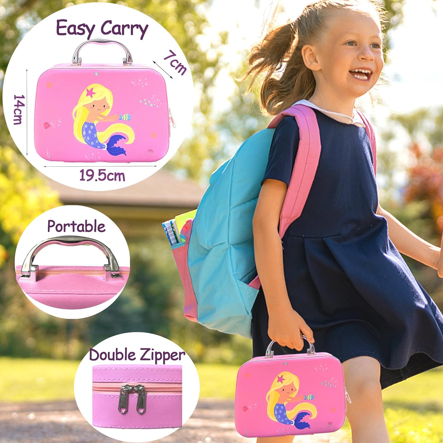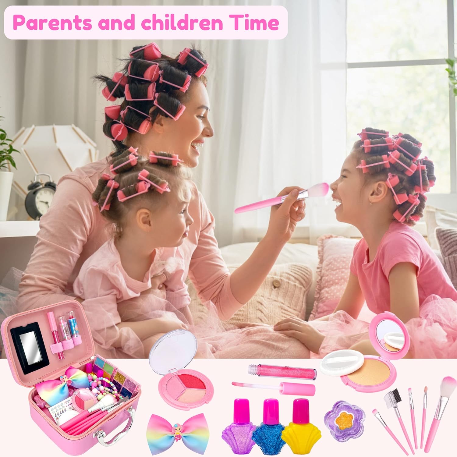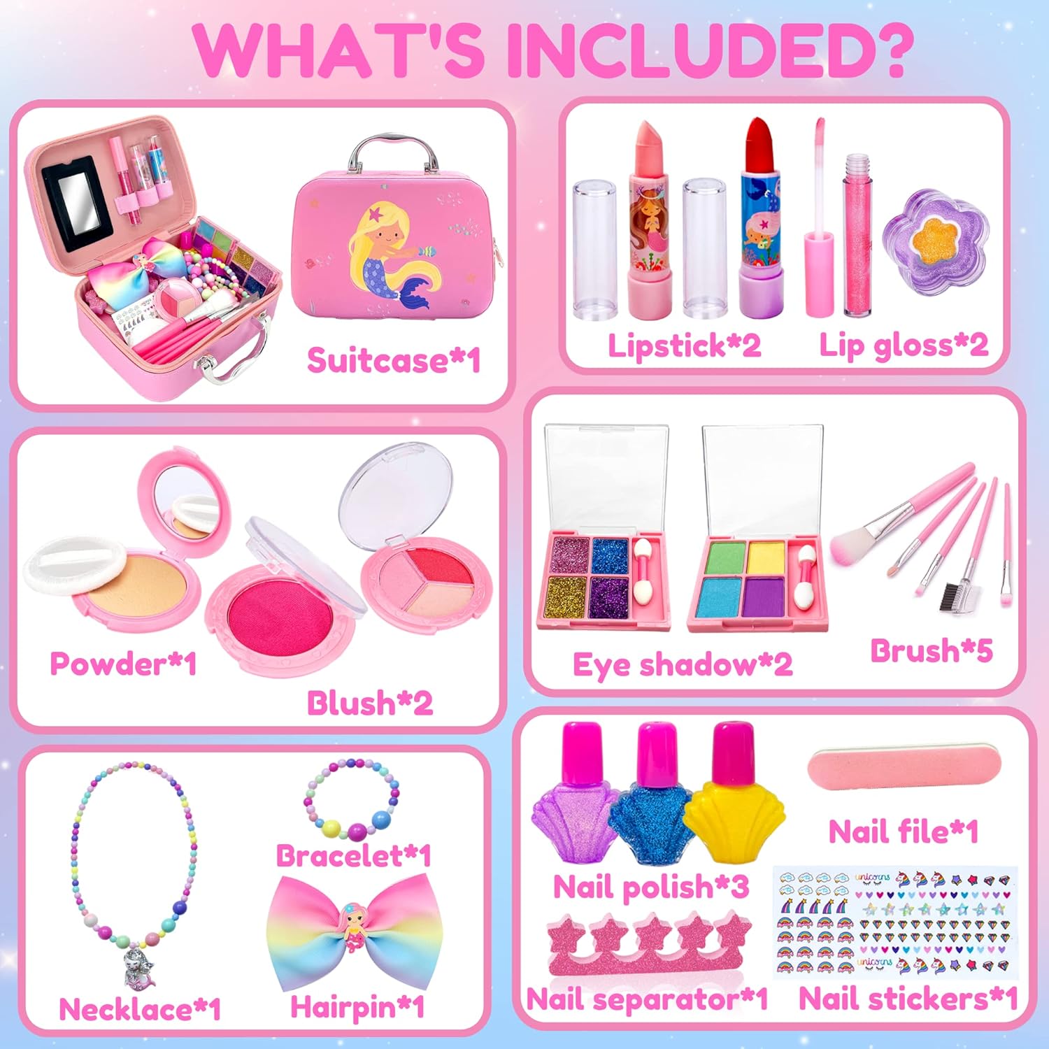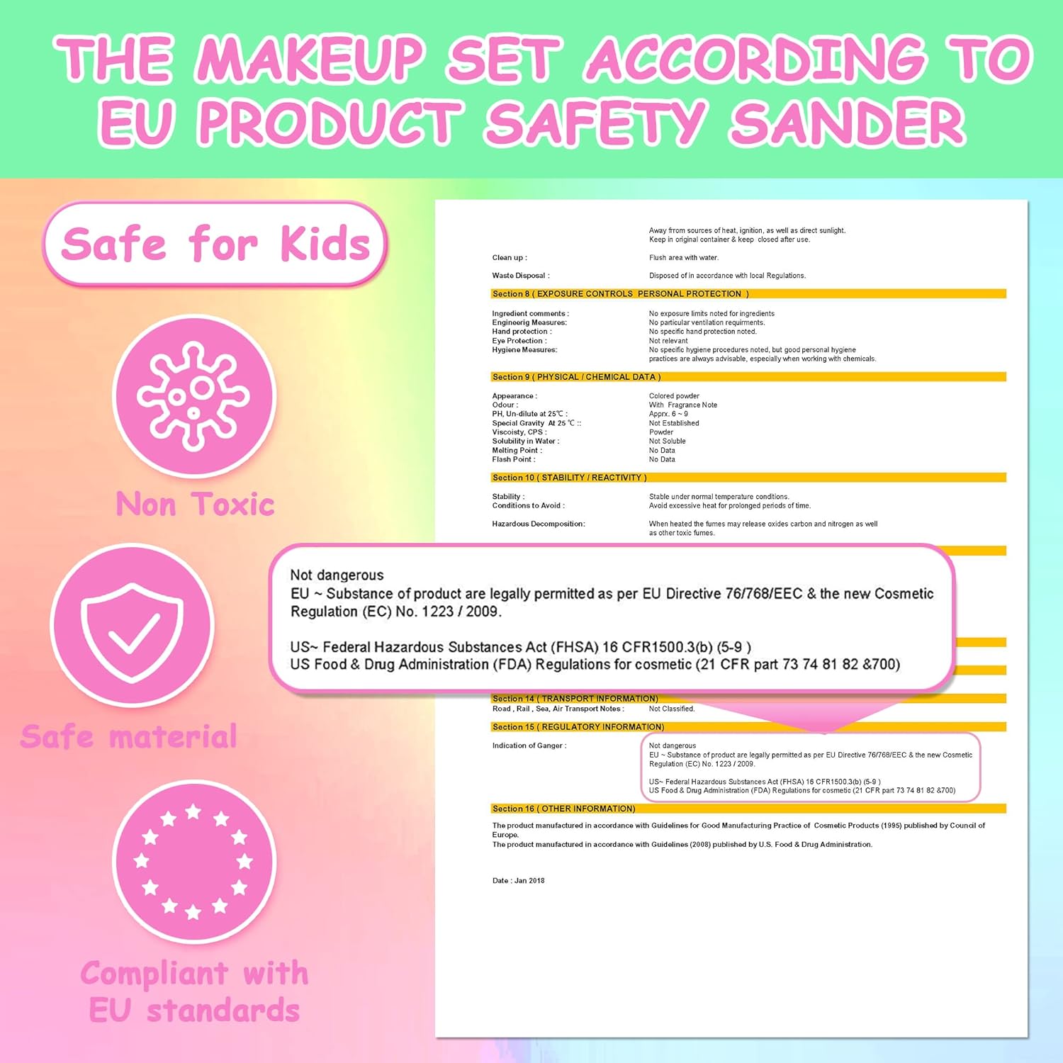 💖Divertenti set di trucchi giocattolo per ragazze: ogni colore si applica facilmente per creare un bel trucco senza sembrare troppo adulta. Regala alla tua piccola principessa il regalo dei suoi sogni con un set per il trucco che le permette di vestirsi e sperimentare look diversi. 💖Il pacchetto include: valigia con specchio*1, rossetto*2, lucidalabbra*2, cipria*1, fard*2, ombretto*2, pennello*5, collana*1, braccialetto*1, forcina*1, smalto per unghie*3, lima per unghie*1, separatore per unghie*1, adesivo per unghie*1, dai a tuo figlio tutto ciò di cui ha bisogno per creare una varietà di look per il trucco. I colori dell'arcobaleno e i diversi strumenti stimoleranno la loro creatività e immaginazione. 💖Sicuro e lavabile: il nostro set per il trucco atossico e lavabile è realizzato con materiali naturali delicati sulla pelle dei bambini, facili da pulire e completamente lavabili con acqua (e sapone leggero secondo necessità). E senza preoccuparti delle macchie sui tappeti o dei mobili, puoi lasciare che la tua principessa giochi quello che vuole! 💖Scatola cosmetica per bambini dal design aggiornato: la nostra custodia è dotata di uno specchio che mantiene i bambini interessati e occupati proteggendo il loro trucco. La borsa per cosmetici è perfetta per riporre pennelli per il trucco, smalti per unghie e altri oggetti, rendendola facile da portare con te in viaggio. 💖 Meraviglioso set regalo per ragazze: dai travestimenti alle feste e alle attività fino al momento delle principesse, ci sono molti strumenti per il trucco in questa scatola per i trucchi. Dalla forma meravigliosa, arrotondato e senza sbavature, è il regalo perfetto per compleanno, Natale, Halloween o altre festività per ragazze dai 3 ai 12 anni! Puoi avere il tuo trucco per realizzare il sogno della principessa!