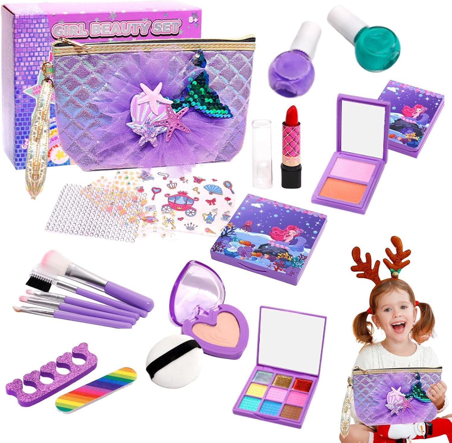 Le piccole principesse diventano creative: il set di trucchi per bambini è un modo perfetto per incoraggiare i bambini fantasiosi e garantire ore di divertimento. Questo pacchetto contiene diversi set per il trucco, accessori per unghie, strumenti per il trucco e una borsa per il trucco alla moda, il tutto confezionato in un'unica scatola. Design adatto ai bambini: questo set per il trucco è realizzato con materiali ecologici e morbidi solubili in acqua, garantendo un design sicuro che può essere facilmente lavato con acqua e sapone, consentendo un gioco senza preoccupazioni. Comodo e pratico: questo set per il trucco per bambini è dotato di una comoda maniglia per riporlo e trasportarlo facilmente. Leggero e portatile, è perfetto per il divertimento all'aria aperta e può essere facilmente portato ovunque. Ispira creatività: questo set di trucchi per bambini ispira l'espressione artistica e la creatività pratica. Non si tratta solo di cosmetici, ma di un'avventura artistica e artigianale in cui le bambine possono truccare se stesse, i loro amici o fratelli con le loro idee uniche e godersi più ore di gioco fantasioso. Selezione di regali: con una selezione di idee regalo per compleanni, Halloween, Natale e festival, che lo rendono il regalo di compleanno ideale e unico