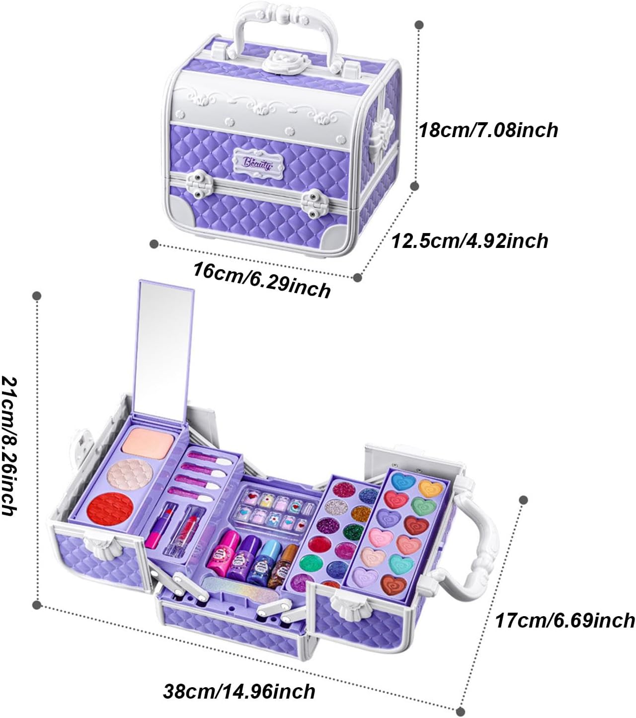 KIT TRUCCO CONVENIENTE: ricco di tutto il necessario per creare una varietà di look, questo set incoraggia il gioco fantasioso e aumenta la fiducia delle ragazze. Delizia i tuoi bambini con questo set di trucchi indispensabile. Giocattolo educativo versatile: il nostro set di trucchi per bambini può aiutare la tua piccola principessa a realizzare il suo sogno di imitare le attività degli adulti fornendo allo stesso tempo un giocattolo educativo completo che incoraggia la creatività e il gioco fantasioso. Facile da trasportare: trucchi, giocattoli e accessori possono essere facilmente trasportati in questa versatile custodia rigida con una comoda maniglia per il trasporto: una soluzione perfetta per riporre i bambini all'aperto. Buona scelta per i regali: aiuta il tuo bambino a esplorare il mondo del trucco con questo set sicuro e divertente. È un fantastico regalo di compleanno o per la Festa dei bambini ed è l'alternativa ideale al trucco per adulti. È adatto alle bambine dai 3 ai 12 anni ed è il modo perfetto per dare loro l'opportunità di esprimersi in modo creativo. Sicuro e naturale: il nostro set trucco lavabile per bambini è realizzato con ingredienti naturali e si prende cura delicatamente della pelle sensibile. La nostra formula idrosolubile è sicura e facile da rimuovere con acqua e sapone