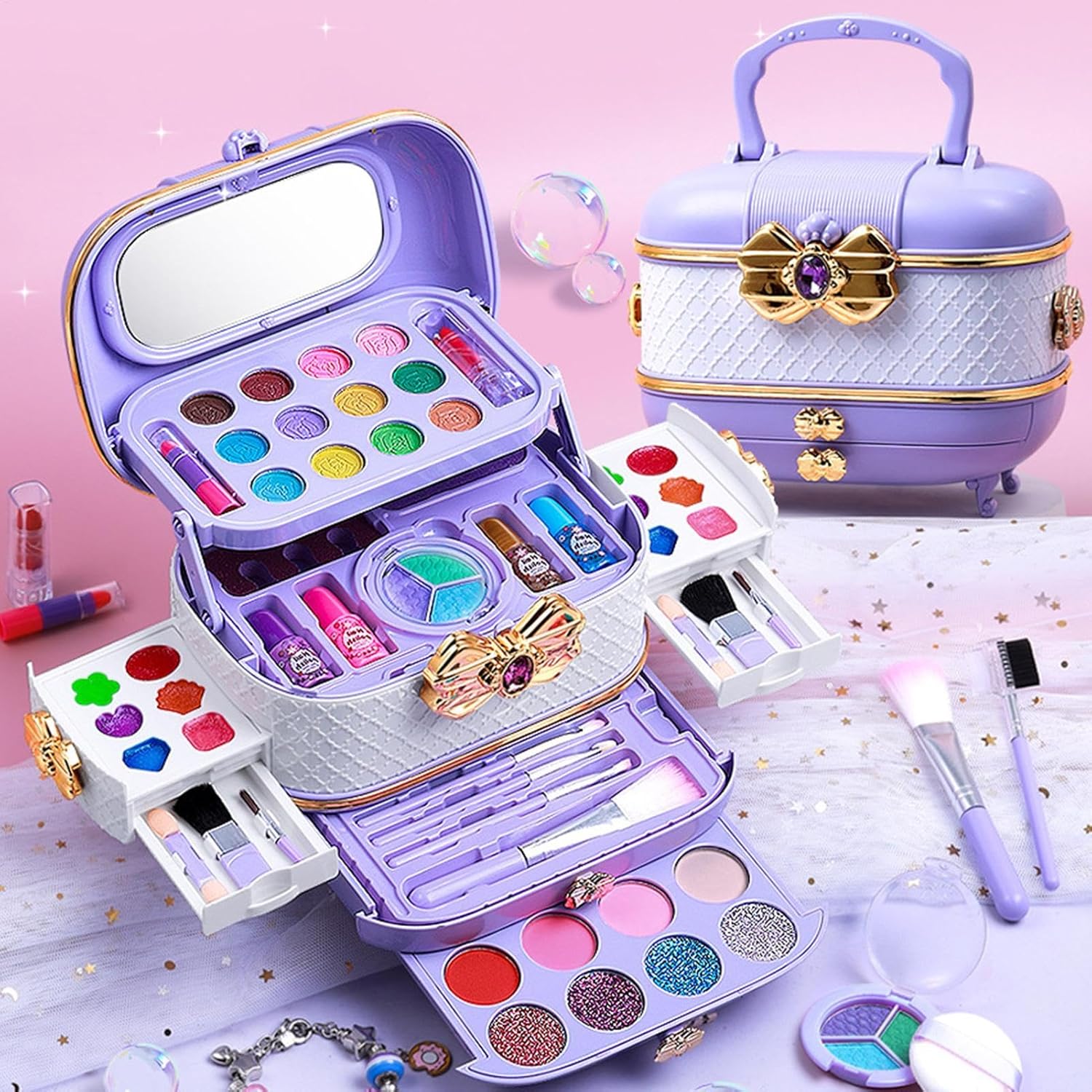 EMOZIONANTE KIT PER PRINCIPIANTI: Con il nostro kit trucco per bambini, i bambini possono trascorrere ore di gioco fantasioso, sperimentando look diversi ed esprimendo il loro artista interiore. La borsa per cosmetici dal design accattivante contiene tutto il necessario per applicare il trucco e dipingere le unghie, rendendola il regalo perfetto per i bambini. Stimola la creatività: risveglia la curiosità di tuo figlio con questo set di trucchi per bambini. Puoi anche giocare con i bambini in crescita, incoraggiando il gioco fantasioso e l'espressione di sé. Delicato e sicuro: realizzato con materiali sicuri, il set trucco per bambini è delicato sulla pelle e può essere lavato via direttamente con acqua, rendendolo ideale per i giovani utenti che vogliono godersi il trucco in tutta sicurezza. STOCCAGGIO ORGANIZZATO: questo set di trucchi per bambini presenta un simpatico organizer rosa che funge anche da grazioso astuccio per cosmetici. Mantiene tutto a posto ed è un successo tra le ragazze grazie al suo design adorabile. Ampia gamma di usi: sia le ragazze che i ragazzi adoreranno questo giocattolo da costruzione. Perfetto per il gioco fantasioso, incoraggia la creatività e l'espressione di sé attraverso avventure di trucco colorate.