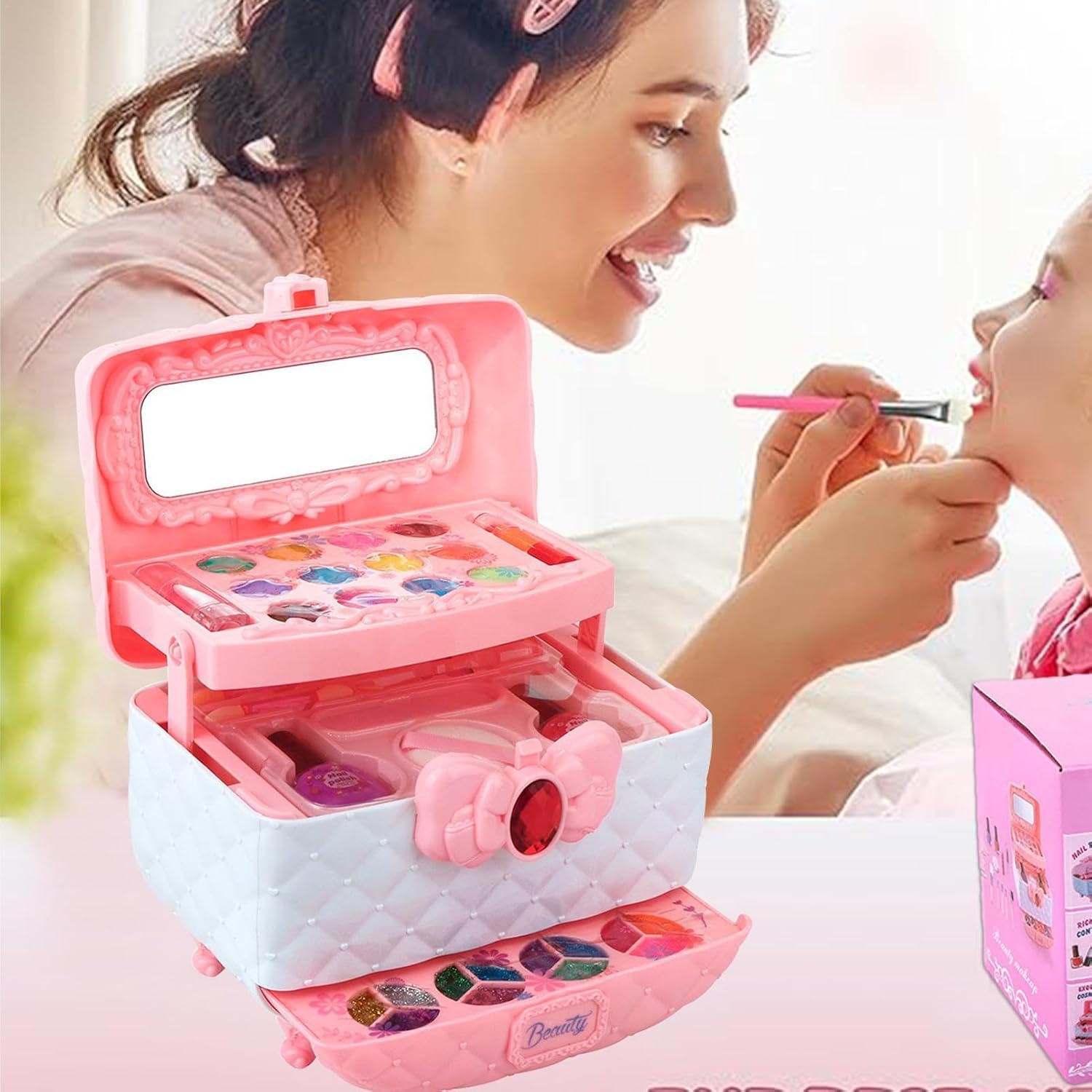 ⋆Incantevole momento di gioco: concediti il gioco fantasioso di tuo figlio con il nostro affascinante set di bellezza a tema principessa, progettato per vestire facilmente il tuo piccolo per un'avventura da favola, promuovendo al contempo l'innocenza e le aspirazioni a governare il regno. ⋆ Sblocca l'arte della bellezza: soddisfa il desiderio dei tuoi bambini di imitare le loro principesse preferite con il nostro kit per il trucco 32 in 1, dotato di lime per unghie, fard, glitter e altri elementi essenziali per esercitare la loro bellezza artistica. ⋆Incentrato sul divertimento: incoraggia la creatività di tuo figlio con il nostro kit per il trucco del costume da principessa. Realizzato con ingredienti lavabili e bordi lisci e sicuri, questo set da gioco è progettato per un divertimento sicuro. Stai tranquillo, può essere facilmente lavato con acqua per un uso prolungato. ⋆Nutri l'immaginazione: lascia che tuo figlio sviluppi le sue capacità artistiche con questo kit per il trucco. incoraggia la creatività, l'immaginazione e la percezione del colore, fornendo allo stesso tempo un modo divertente per legare con amici e familiari. Migliora la coordinazione occhio-mano e ottieni un gioco estetico più ravvicinato con i tuoi cari. ⋆Regali di festa perfetti: offrendo un fascino perfetto con le sue superfici prive di sbavature e la forma rotonda, questa borsa per il trucco per ragazze con manico si adatta a travestimenti ed eventi, rendendola un'aggiunta impareggiabile alla vanità di ogni bambino. Un regalo perfetto per compleanni, Natale, Halloween e qualsiasi altra occasione.