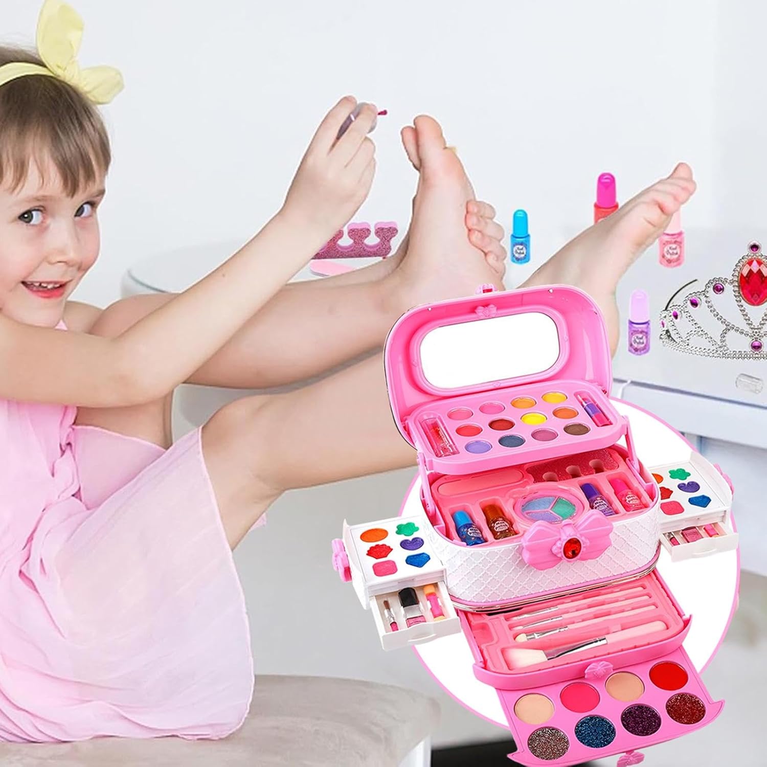 ➟Princess Fantasy: trasforma la tua bambina in una principessa reale con questo speciale set di trucchi. Progettato per stimolare l'immaginazione e la creatività, questo set rosa è lo strumento perfetto per evidenziare la bellezza e l'innocenza del tuo bambino. ➟Collezione di bellezza ideale: inizia il tuo bambino con il trucco e la manicure dei suoi sogni con il nostro set di bellezza per il trucco 26 in 1. Offrendo quasi tutto, da ombretti, lucidalabbra, glitter e fard, questa collezione di bellezza ideale copre tutte le esigenze di bellezza delle principesse più belle là fuori. ➟Gioco sicuro garantito: concediti un divertimento senza rischi con il nostro set di trucchi per bambini. Gli ingredienti lavabili possono essere facilmente risciacquati con acqua, garantendo un divertimento di gioco sicuro. Perfetto per travestirsi e giocare da principessa, il set è progettato con bordi lisci per un uso sicuro e duraturo. ➟Vantaggi per lo sviluppo: potenzia le capacità artistiche di tuo figlio con un set di trucchi che incoraggia la creatività, l'immaginazione e la percezione del colore e incoraggia l'amore per tutto ciò che riguarda il trucco mentre trascorri del tempo di qualità con i tuoi cari. ➟Grandi regali di Natale: incoraggia la creatività di tuo figlio con il nostro set di trucchi per bambini. È il regalo perfetto per ogni occasione ed è ideale per travestirsi in occasione di eventi e feste: la custodia per il trucco rotonda e senza sbavature garantisce alle piccole mani di divertirsi e abbellirsi in tutta sicurezza.