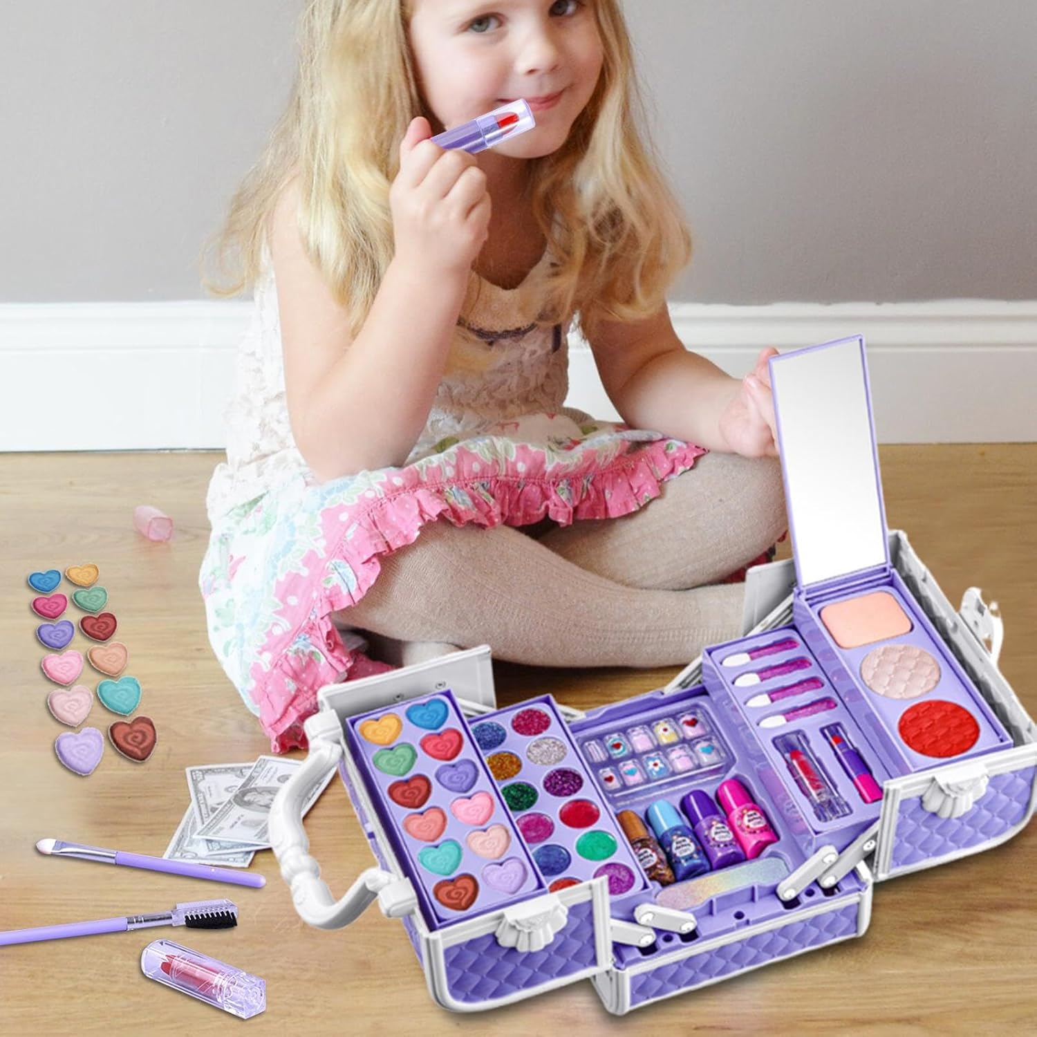 Sicuro e naturale: il nostro set trucco lavabile per bambini è realizzato con ingredienti naturali e si prende cura delicatamente della pelle delicata. La nostra formula idrosolubile è sicura e facile da rimuovere con acqua e sapone. Include tutti i prodotti indispensabili: regala alla tua bambina un'esperienza stimolante con questo set completo di trucco per bambini. Dotato di un'ampia gamma di colori e strumenti, questo set ha tutto ciò di cui hai bisogno per un gioco fantasioso e una maggiore sicurezza. Viene fornito in una graziosa custodia per il trucco per riporlo e divertirti ancora di più. Giocattolo educativo multifunzionale: incoraggia la creatività di tuo figlio con il nostro set di trucchi per bambini, il perfetto giocattolo educativo a tutto tondo che soddisfa il sogno di ogni bambina di imitare le attività degli adulti. Guardala scoprire le gioie della bellezza e del trucco attraverso più divertimento ed esplorazione. Comodo da trasportare: tieni trucco, gioielli e giocattoli in un unico posto con questo set di trucchi per bambini. Dotato di una versatile custodia rigida e di maniglia per il trasporto, è perfetto per un trasporto ordinato e facile. Regalo premuroso: incoraggia la creatività e la fiducia con questo set di trucchi sicuro e attraente. Perfetto come regalo di compleanno o per la Festa dei bambini, offre alle ragazze dai 3 ai 12 anni un modo divertente e sicuro per apprendere le proprie abilità nell'applicazione del trucco.
