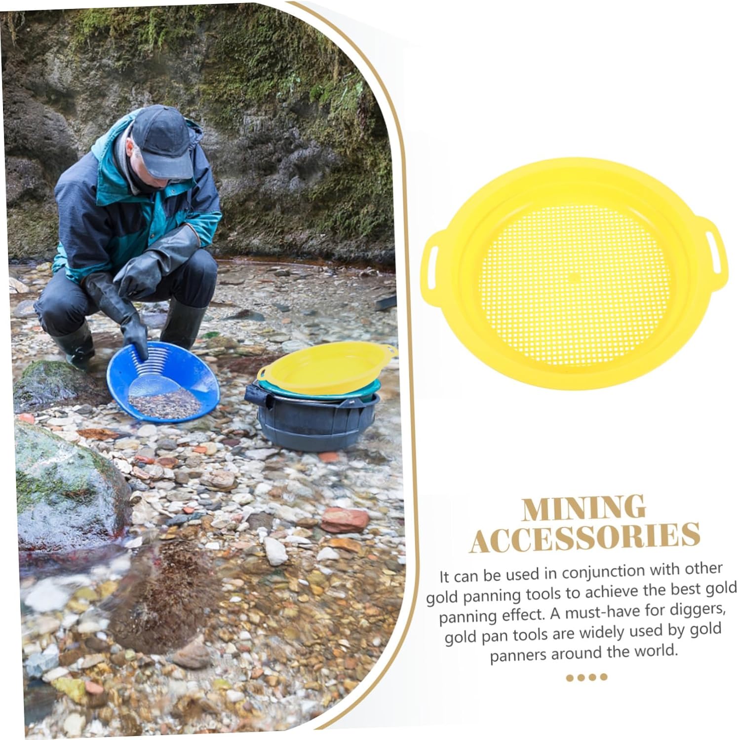 Setaccio: rende la ricerca dell'oro più semplice ed efficiente; Inoltre, può essere utilizzato anche per vari scopi, come setacciare sabbia e ghiaia, filtrare minerali, accessori minerari, vasche di prospezione: anche dopo un uso prolungato, può comunque mantenere condizioni efficienti e stabili. Inoltre, le dimensioni piccole e pratiche ti consentono di trasportare e utilizzare in qualsiasi momento, setaccio per sabbia setaccio per sabbia setaccio - ha eccellenti funzioni di filtraggio e filtraggio della sabbia, rendendo la ricerca dell'oro più comoda ed economica per gli appassionati di oro e miniere Setacciatura - l'uso della tecnologia garantisce facilmente i dettagli e le prestazioni della padella per l'oro e minerali preziosi, setacci setaccio per ricerca dell'oro - semplifica la ricerca dell'oro, fa risparmiare manodopera e si adatta in modo efficiente alle varie occasioni di ricerca dell'oro e rende più semplice la ricerca dell'oro