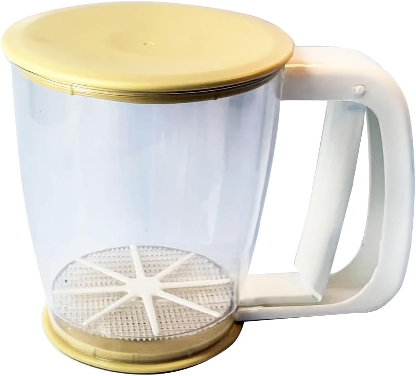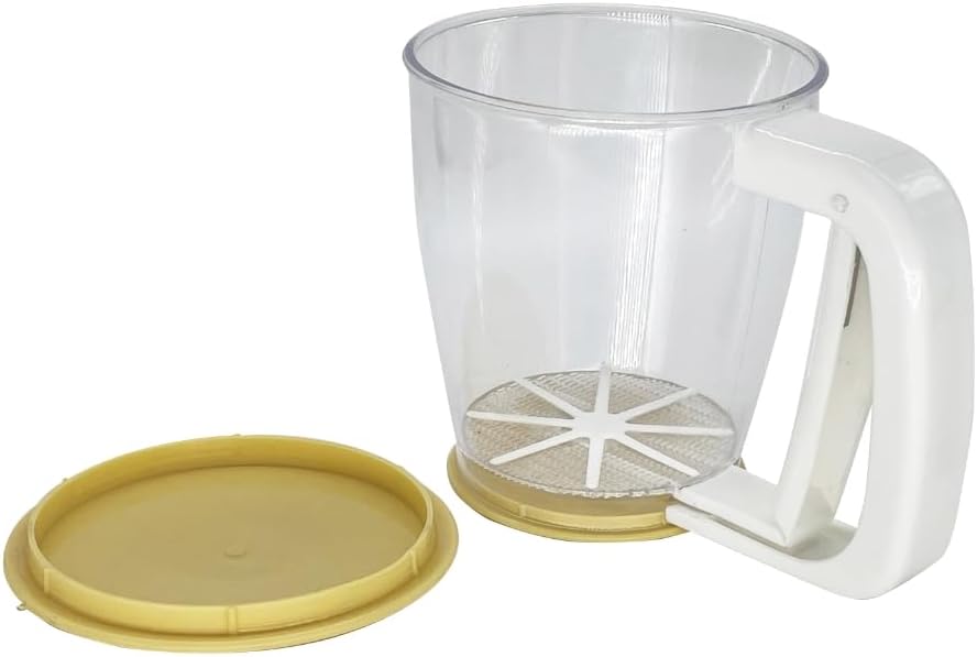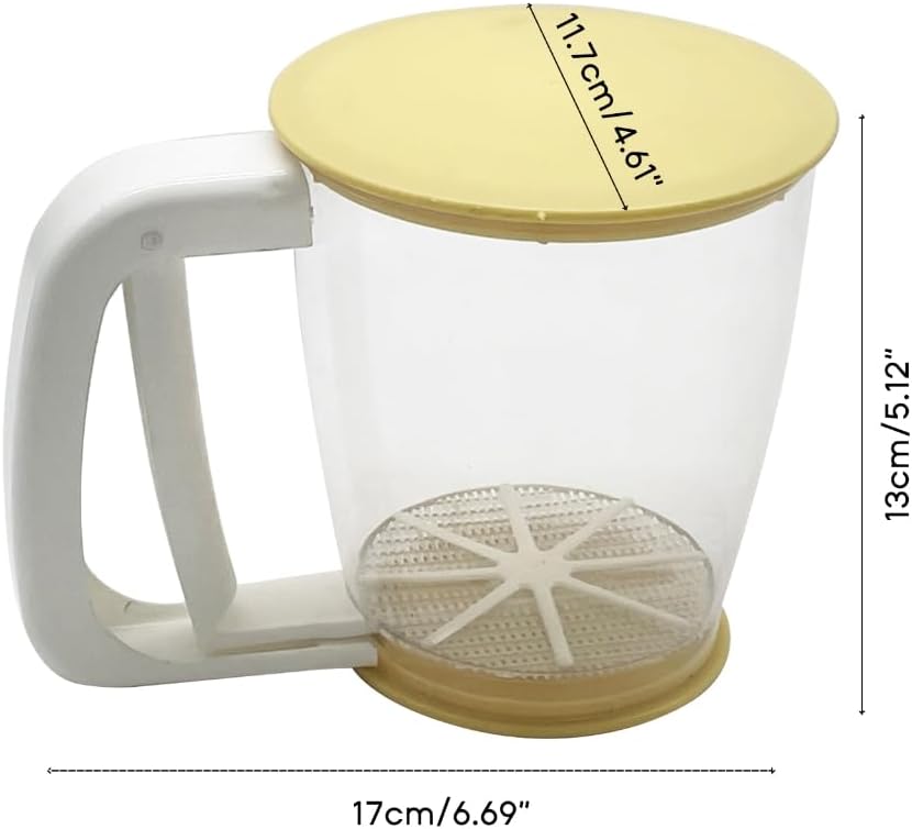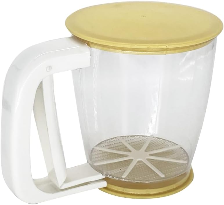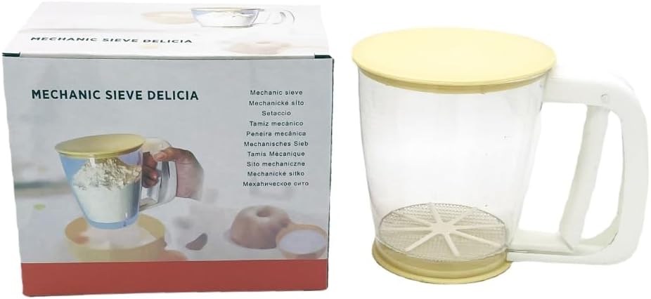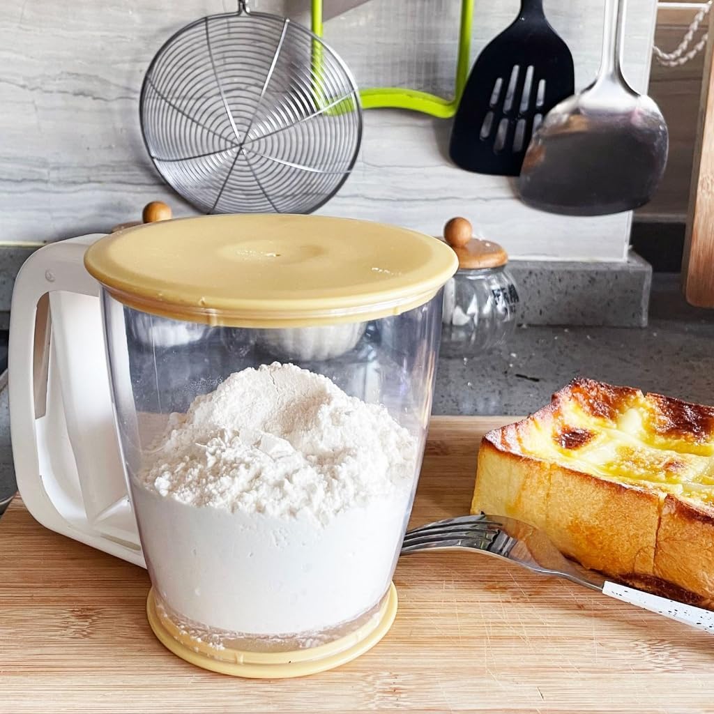 Setaccio per farina Con coperchio superiore e inferiore, per conservare la farina rimanente, ad alta resistenza, ad alto costo Setaccio per farina Design meccanico in polvere, polvere fine, setacciare facilmente la farina premendo il manico. Utensili da cucina essenziali per una migliore cottura Setaccio per farina per uso alimentare, sicuro e resistente. Facile da usare con la mano, più veloce ed efficiente, risparmiare tempo e aumentare l'efficacia.