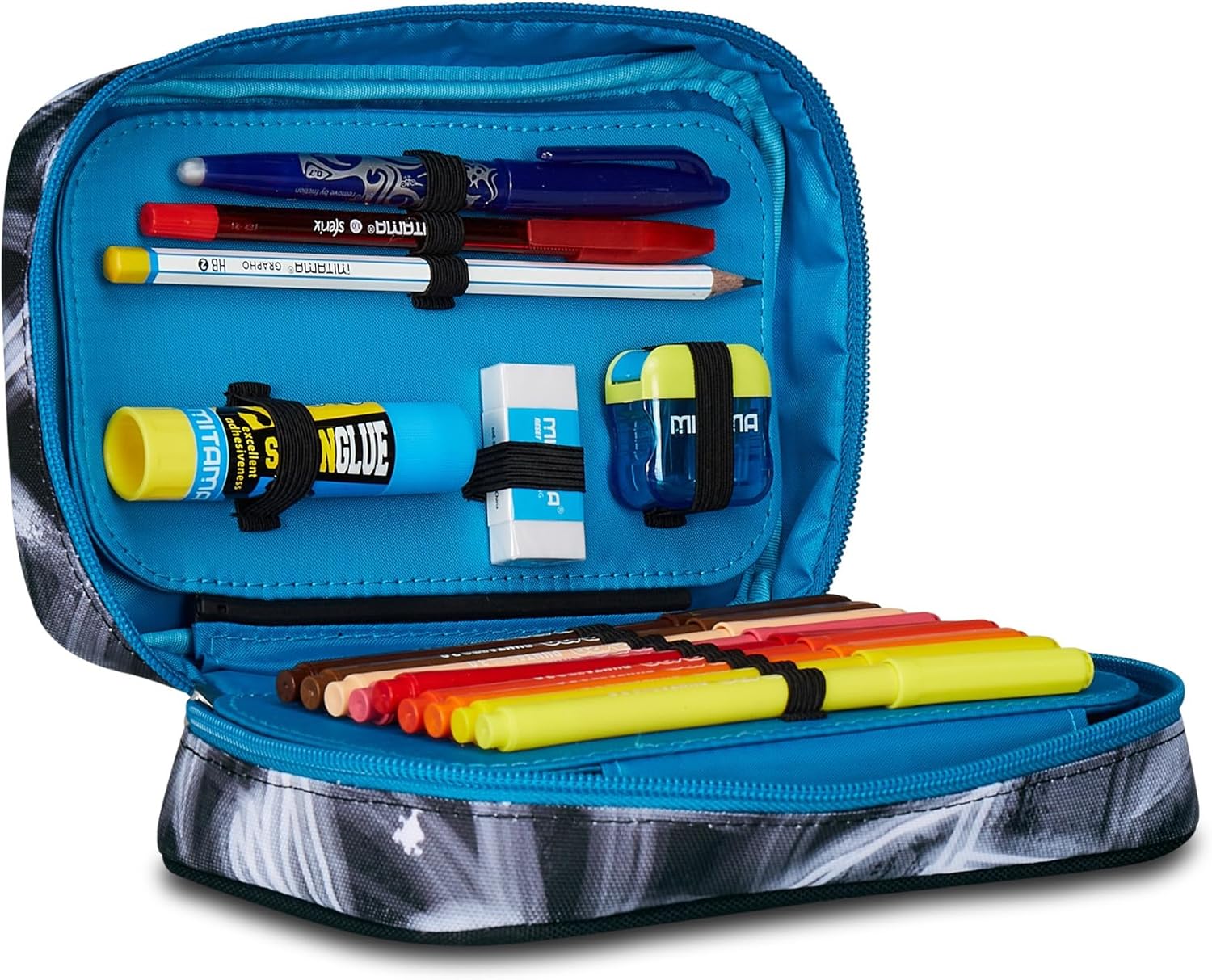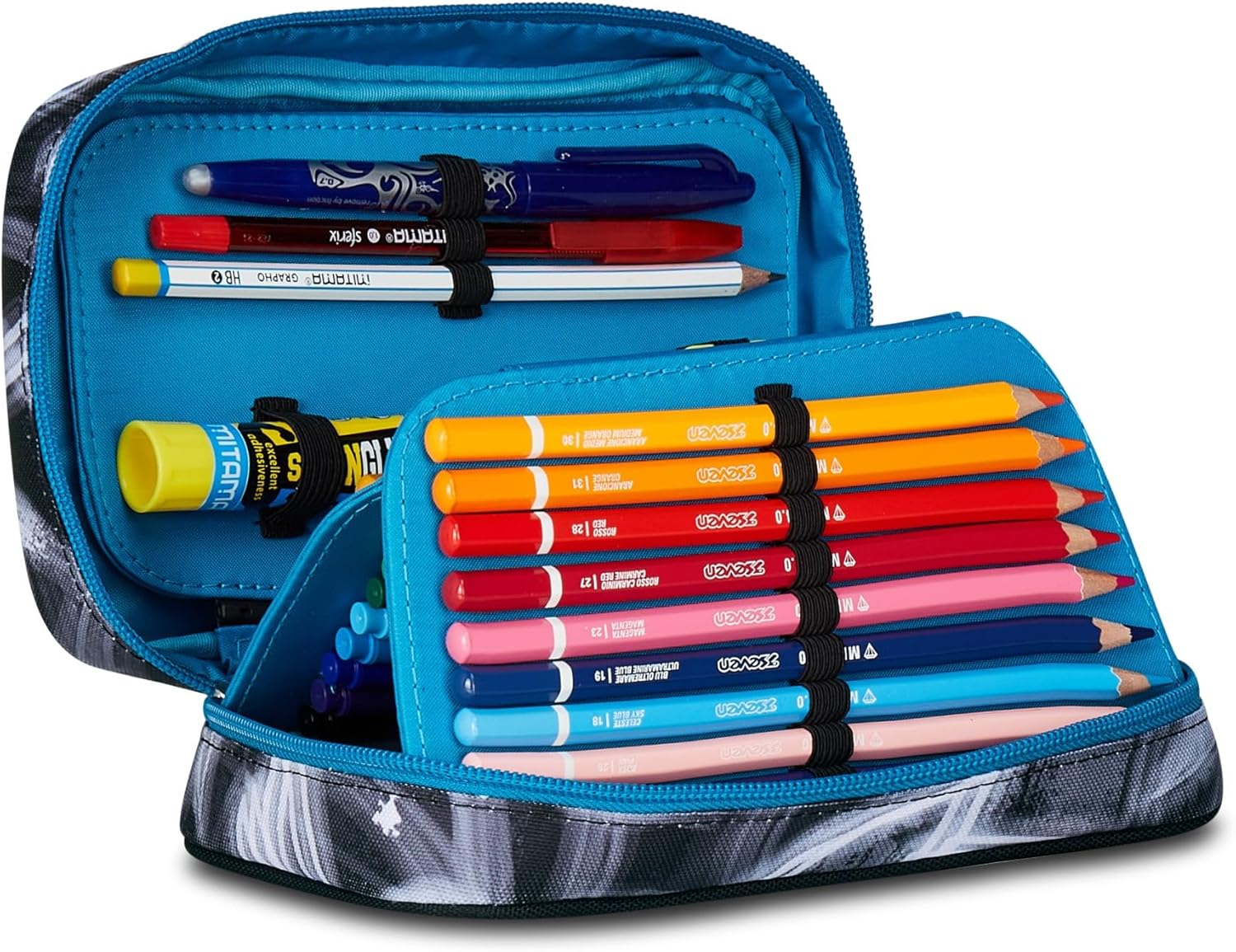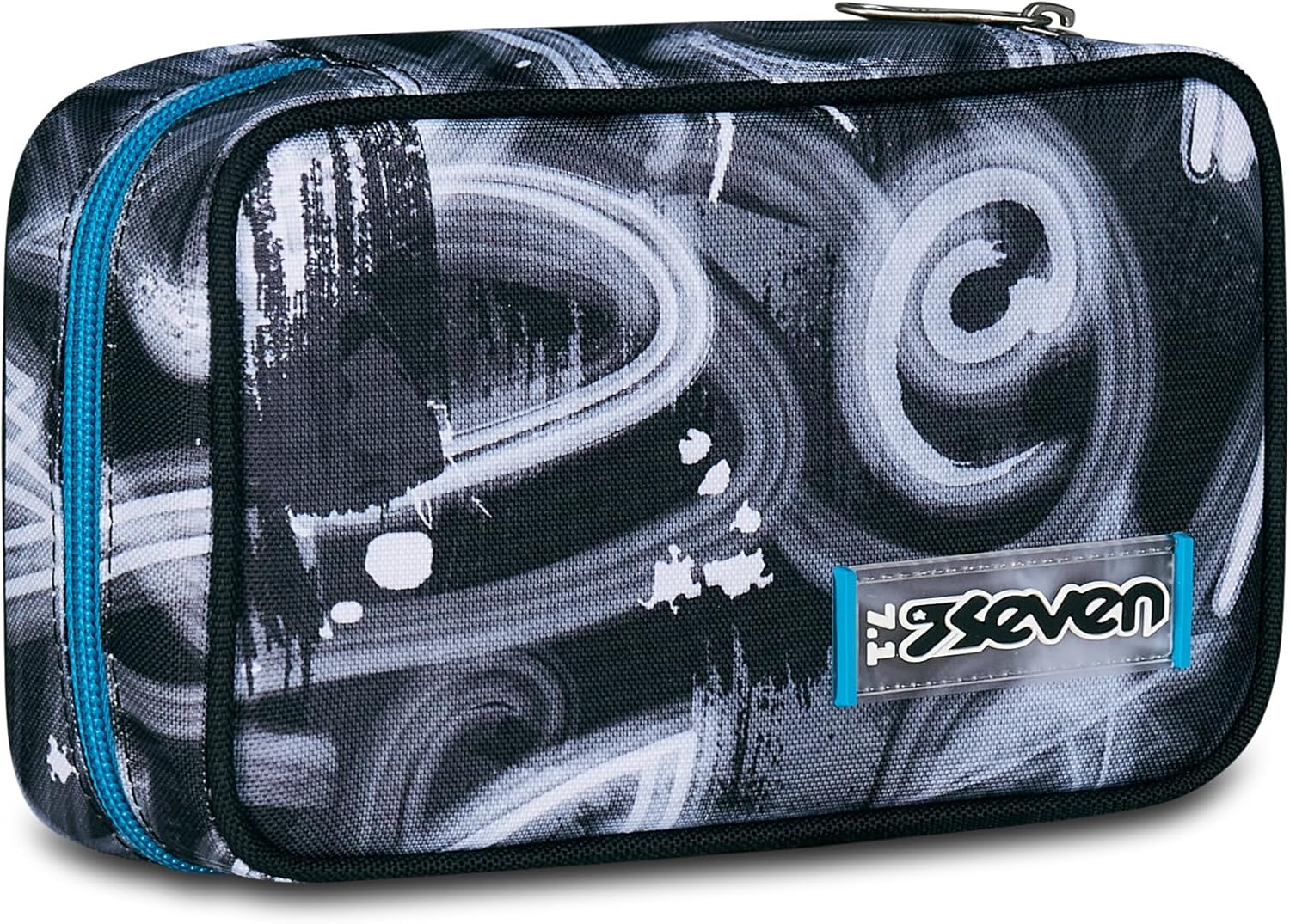 Seven Astuccio Scuola Speed Case,Grigio Graffiti, Portapenne Mono Scomparto con Plance Amovibili, Completo Di Penne, Matite, Colori, Accessori Zaino, Scuola Elementare, Bambino