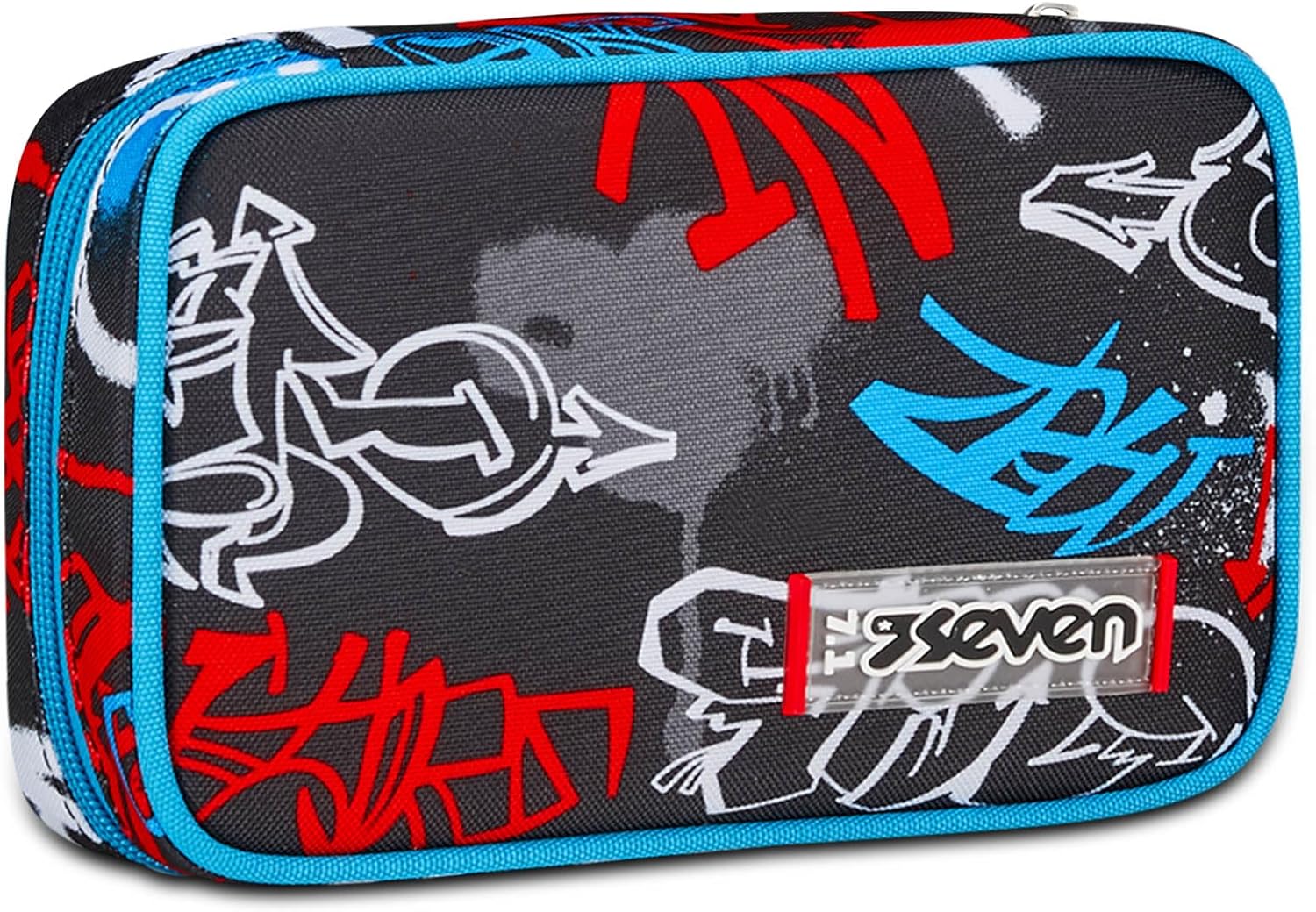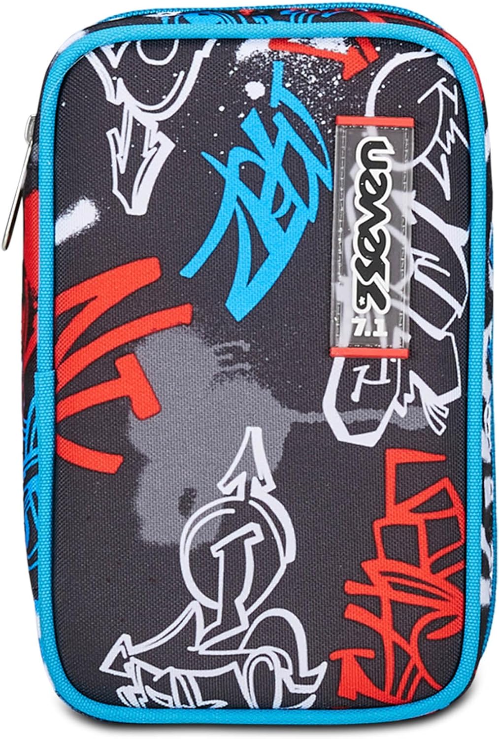 Seven Astuccio Scuola Speed Case, Nero Rosso Blu, Half Street, Portapenne Mono Scomparto Con Plance Amovibili e Penne, Matite, Colori, Accessori Zaino, Elementari, Medie, Bambino