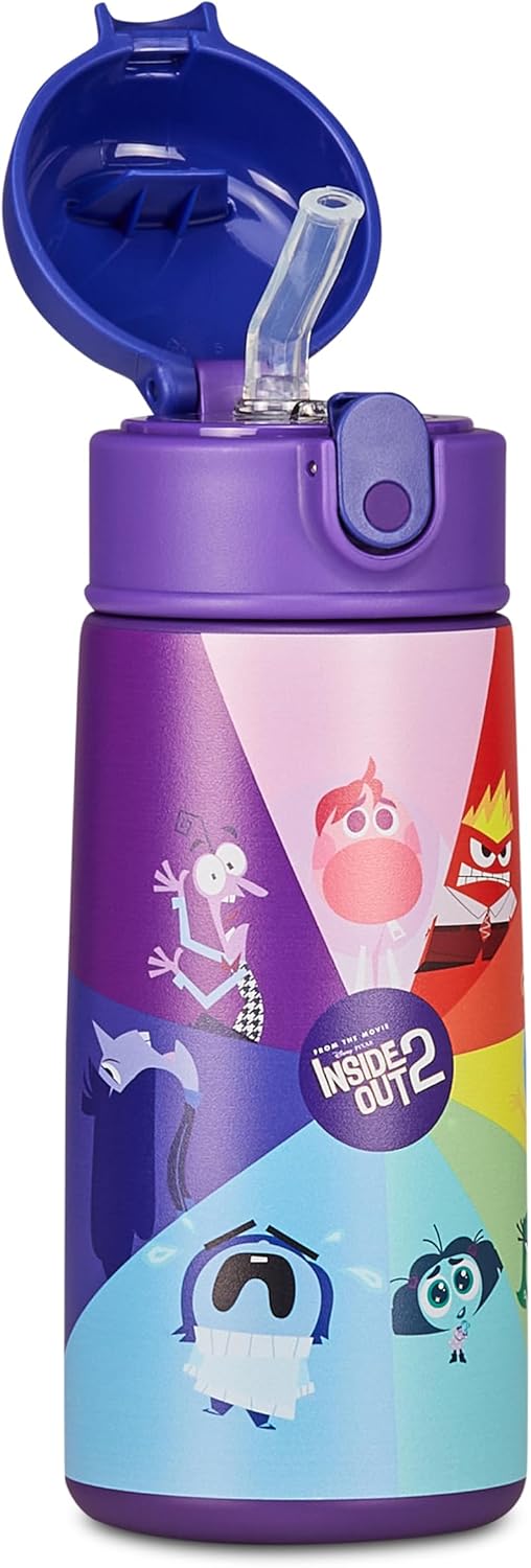 Perfetta per l'asilo, la scuola elementare e il tempo libero, la Borraccia Termica Inside Out 2 in acciaio inox mantiene le bevande calde per 12h e fredde per 24h. Compatta e leggera, si trasporta facilmente nello zaino.
