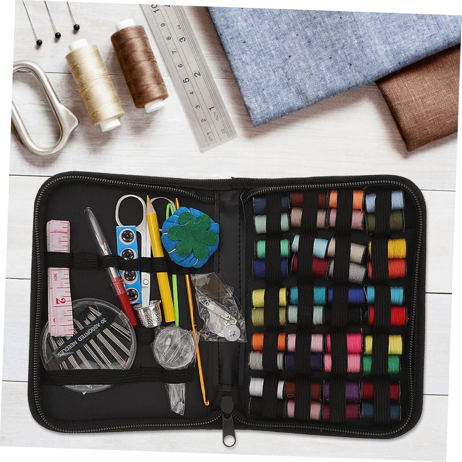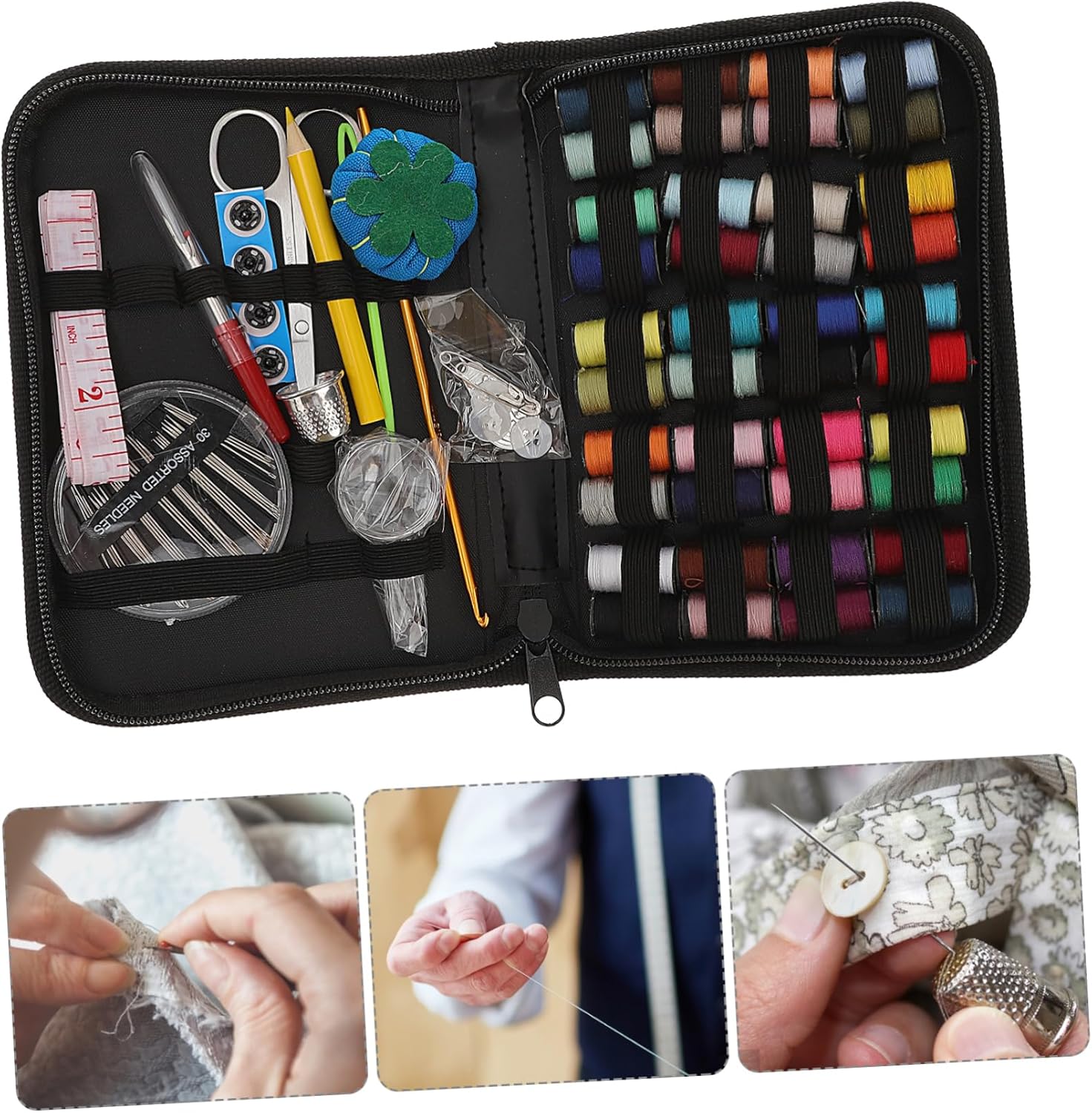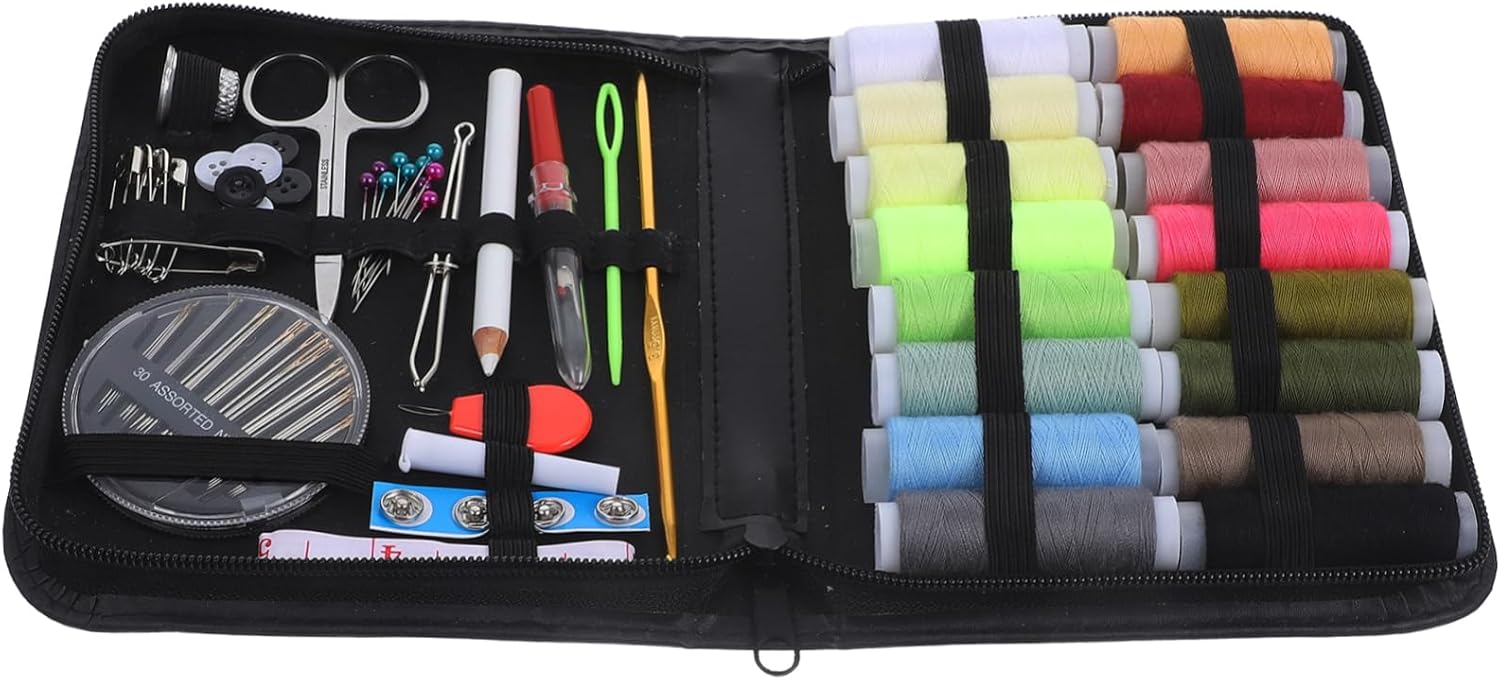 Mini strumenti: il set include aghi, fili colorati, forbici, bottoni, spille e altri accessori, copre tutti gli strumenti necessari per il cucito fai da te, kit da cucito per Ago da cucito: lo spazio di archiviazione è organizzato, leggero e pratico, è la tua nuova cassetta degli attrezzi da cucito, materiale di cucito completo per i viaggi Kit da cucito da viaggio: è una buona scelta come tua madre o tua nonna, saranno molto felici di ricevere questo kit di aghi da cucito Strumento per cucire su misura: viene utilizzato per cucire e decorare vari colori, oggetti di artigianato, indumenti e così via, kit ago e filo Kit da cucito da viaggio: organizzato, leggero e pratico, è il tuo miglior kit da cucito portatile, kit da ricamo