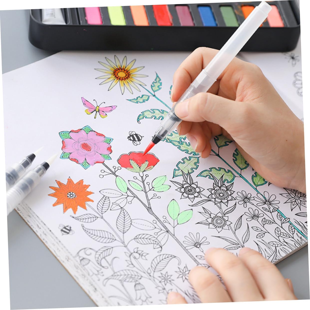 Pennello per colorare l'acqua: pittura ad una risposta per linee delicate o pozze di colori controlla il flusso di inchiostro o acqua con una semplice pressione della canna sfumare con acqua o aggiungere inchiostro fusto per dipingere in modo veloce, facile e divertente