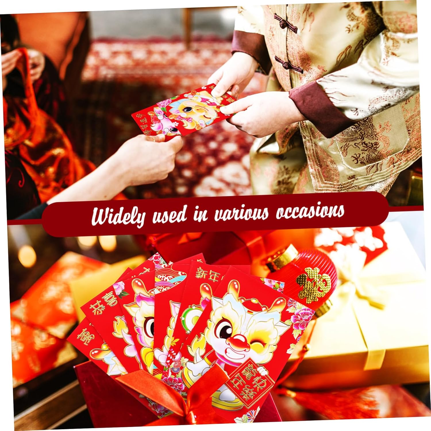 Stampa chiara: il motivo sulla busta rossa è stampato in modo chiaro e non sbiadisce, assicurando che il design rimanga vivace e accattivante, hong bao cinese, pacchetto di denaro Autosigillante: la busta rossa ha un design autosigillante sul retro, eliminando la necessità di colla o nastro adesivo, rendendola facile e comoda da usare, borsa cinese portafortuna, pacchetto rosso per la festa di Uso versatile: la busta rossa non è adatta solo per fare regali di capodanno, ma può anche essere utilizzata per conservare piccole immagini e promemoria, tasca rossa cinese, compleanno di hong bao Stampa a caldo: il design della stampa a caldo aggiunge consistenza e un senso di nobiltà alla busta, rendendola un accessorio bello ed elegante, buste per soldi cinesi, buste per riempire contanti Materiale: realizzato in materiale di carta lastra di rame, la busta non è solo comoda al tatto ma anche affidabile, pacchetto festa di , sacchetti di denaro fortunati festa di