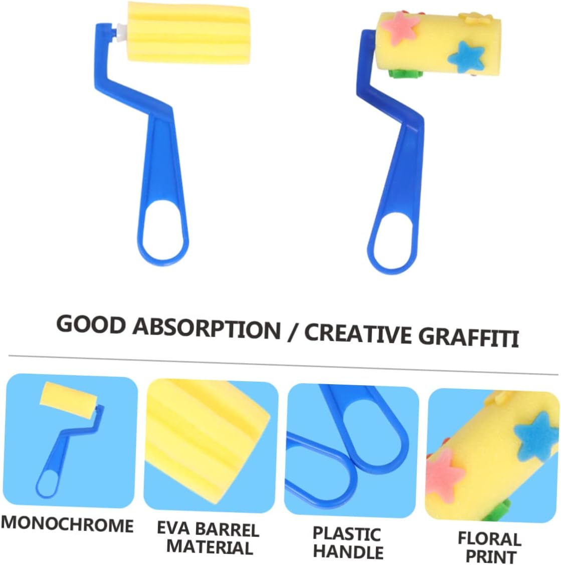 Applicatore di vernice in schiuma: realizzato in materiale di alta qualità, durevole per un uso a lungo termine. Spugna artistica da disegno: ottimo strumento per dipingere con rulli per bambini durante le lezioni d'arte. Spugna in schiuma: adatta per natale, ringraziamento, compleanno, laurea, sia per esigenze di pittura che per adulti. Spugna per la scuola: adatta per dipingere, disegnare, graffiti e così via. Pennello in spugna per bambini: ogni pennello ha un manico in plastica per tenerlo in mano, in modo che tocchino direttamente i pigmenti e le loro sporchino mentre dipingono
