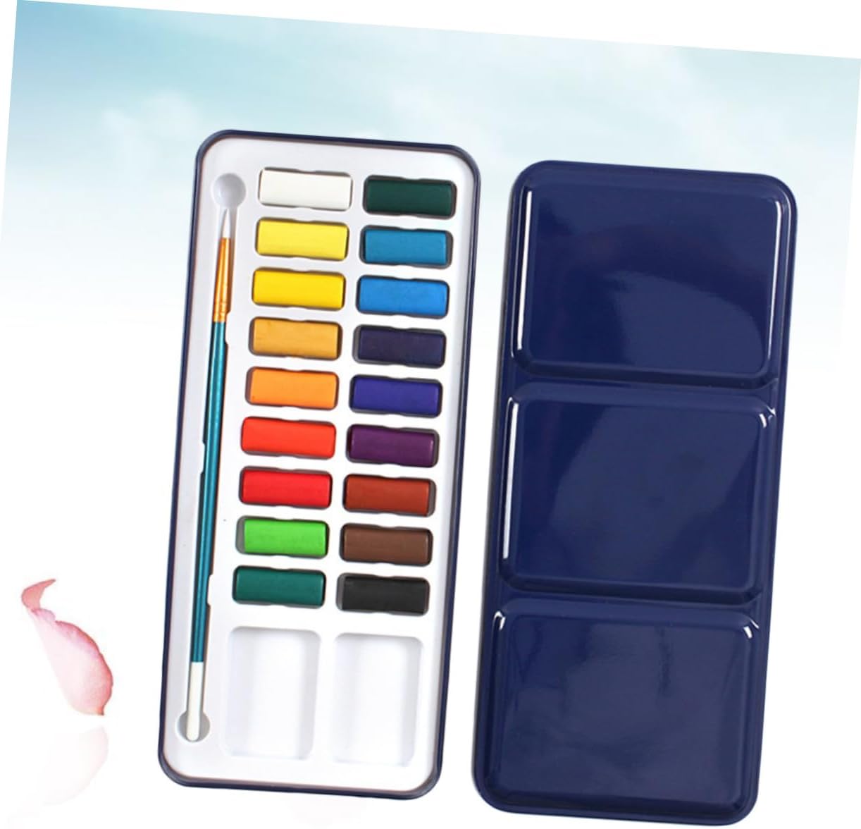 Pittura ad acquerello lavabile: facile da lavare e pulire, acquerello Kit di pittura ad acquerello: 18 colori vivaci e accattivanti per torte ad acquerello a tua disposizione, ideali per studenti, insegnanti, artisti, bambini, arte, artigianato, ecc., pittura ad acquerello Pittura ad acquerello essenziale: formula semi-umida come acquerelli, dissolve e sfuma facilmente, kit di pittura ad acquerello Kit per acquerello: questo set di vaschette per acquerello è contenuto in una scatola da con coperchio facile da aprire/chiudere, il coperchio può fungere da vassoio di miscelazione, rendendolo eccellente per schizzi all'aperto, pennarello ad acqua ricaricabile Acquerello solido: questo set viene fornito con 1 pennello, ottimo set per pittori principianti e artisti raffinati, accessori per acquerelli