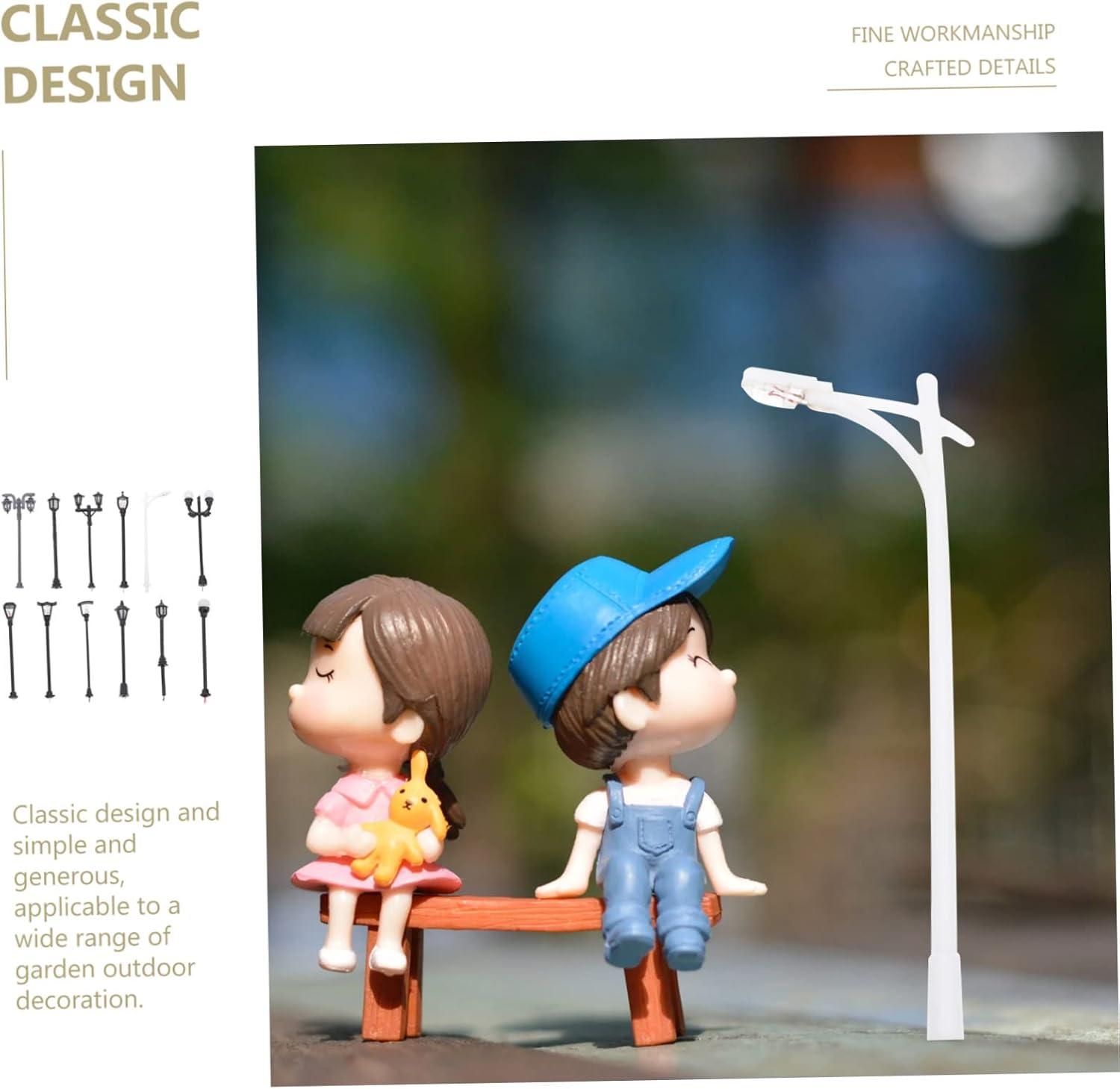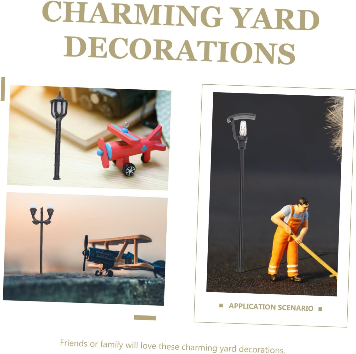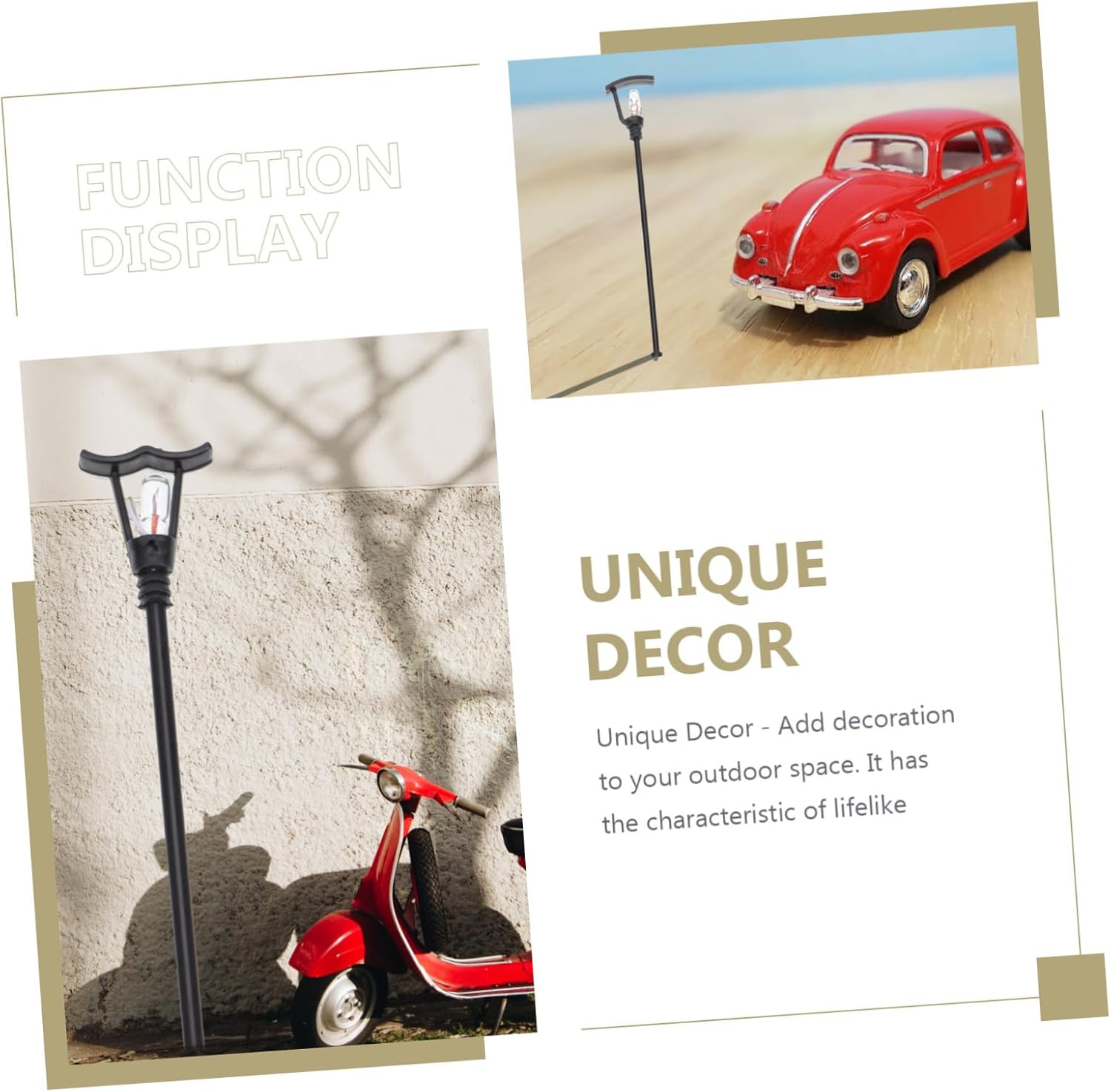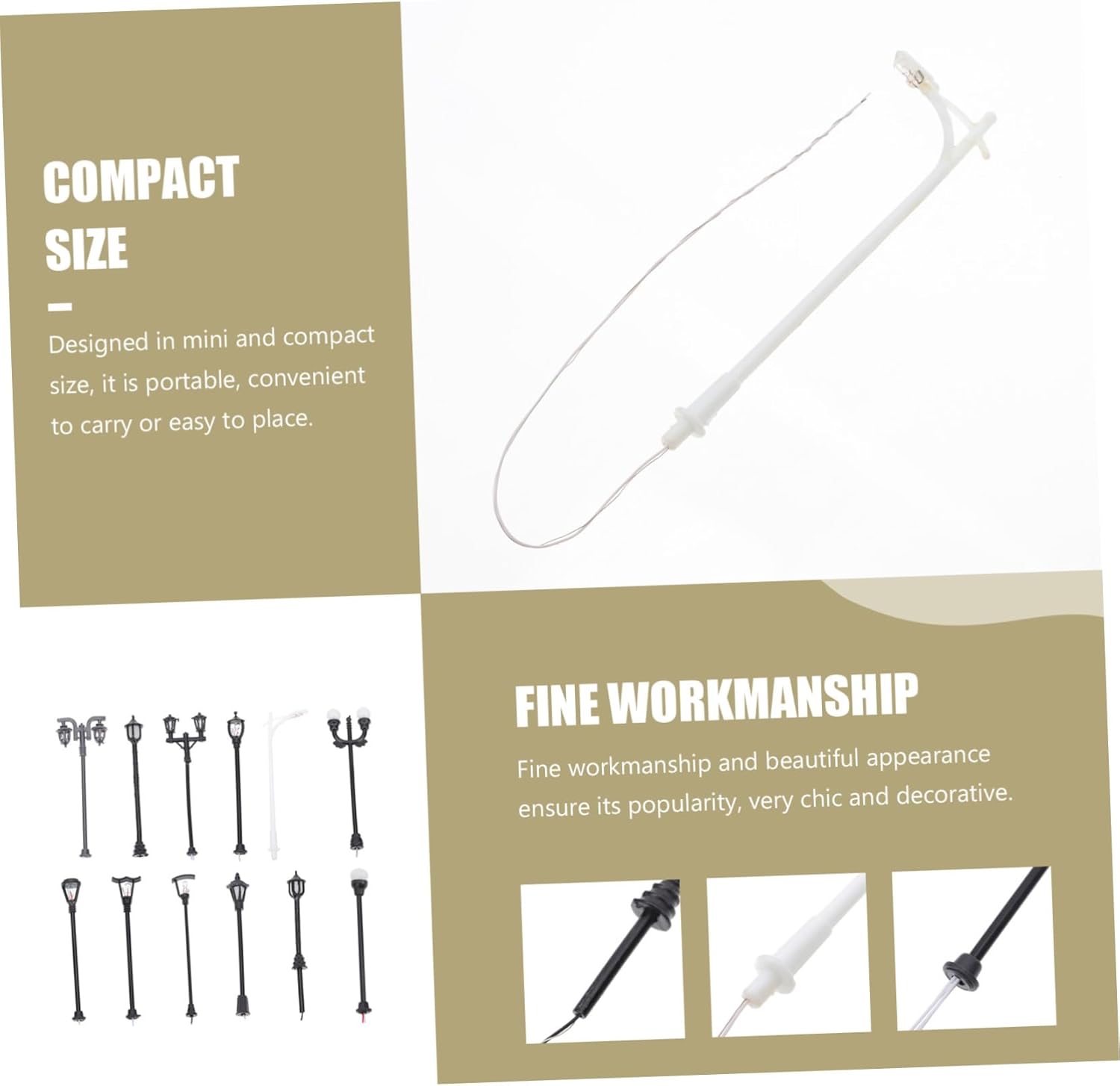 Piccolo lampione: quantità sufficienti, in modo che questi modelli di mini lampioni possano soddisfare le tue diverse esigenze, mini oggetti di scena per foto di lampioni. Modello di lampione: ampia di applicazioni, facile da abbinare ad altre decorazioni, decorative e creative, lampioni stradali per modellini di treni. Mini oggetto decorativo da giardino: progettato in dimensioni mini e compatte, è portatile, comodo da trasportare o facile da posizionare, miniatura luminosa da percorso. 1 lampioni stradali in scala 100: questo articolo è ben progettato e realizzato per offrirti il miglior arredamento per mini percorsi da giardino domestici, luci decorative per mini case. Palo della luce: la pregevole fattura e il bell'aspetto ne garantiscono la popolarità, molto chic e decorativo, figura di lampione da giardino.