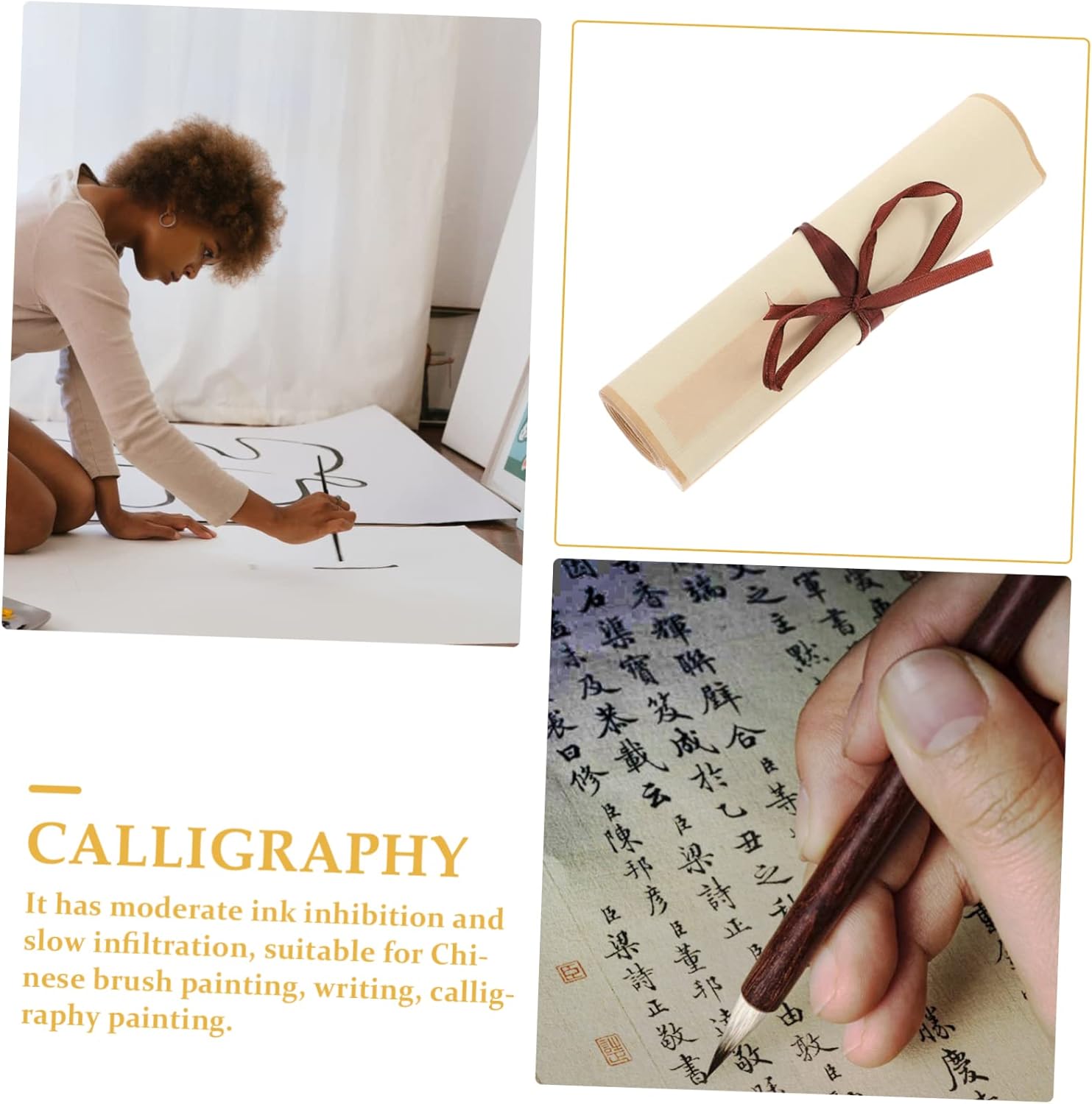 Rotolo di carta per calligrafia: la carta per cinese è ottima da appendere muro dopo la finitura, carta decorativa per la casa e l'ufficio. Carta da pittura per bambini: pergamene per pittura vuote, pergamene per calligrafia, montaggio a parete: è utile per la pittura cinese o il lavoro ad acquerello, un simpatico aiuto. Carta pergamena bianca: buona fattura, molto adatta per l'uso dell'inchiostro, facilmente vertiginosa. Carta per pergamene da disegno: pergamena vuota da appendere muro: puoi dipingere o scrivere direttamente sulla semplice area di carta di riso centro. Fornitura di pittura: questo prodotto può fornirti di scrittura e disegno.