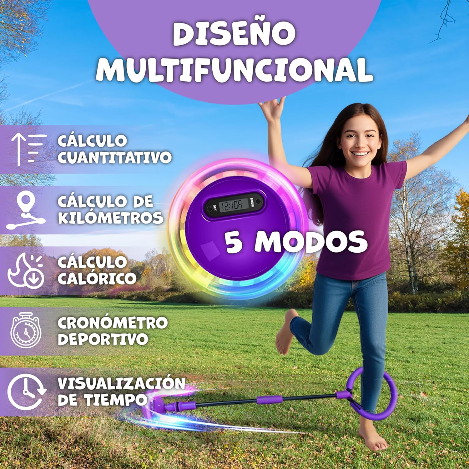 【Divertimento e sport in un unico gioco!】 Sei preoccupato che il tuo bambino non faccia abbastanza esercizio? Con la palla di salto alla caviglia trasformerai l'attività fisica in puro divertimento. Con solo due pulsanti puoi scegliere tra 4 modalità: bruciare calorie, contare chilometri, cronometra e contare i passi. L'anello da salto pieghevole a molla non è solo un giocattolo, ma il mix ideale tra sport e intrattenimento per muoversi e divertirsi allo stesso tempo! ─ Facile dal primo salto!】 Questa palla da salto alla caviglia con molla non è solo caricata di tecnologia, è anche super semplice da usare! Prima di iniziare, basta premere un pulsante per scegliere la funzione ️, posizionare un piede sull'anello pieghevole e lasciare che l'altro rimbalzi ritmicamente ️. Senza problemi, entra direttamente nel divertimento del movimento! ️ E al termine, controlla rapidamente i tuoi dati di esercizio. ️【Sicurezza prima, divertimento sempre】 L'esercizio dovrebbe essere sicuro e divertente allo stesso tempo! Questa palla da salto alla caviglia con molla è realizzata con materiali di alta qualità e dispone di una copertura in spugna extra spessa, progettata per proteggere le caviglie del tuo bambino. I suoi rulli morbidi e flessibili garantiscono uno scorrimento fluido , silenzioso e inoltre impediscono al pavimento di graffiare! Leggero e facile da trasportare: l'esercizio non deve occupare spazio La nostra palla da salto alla caviglia con molla presenta un design pieghevole e innovativo, pratico per riporre e trasportare. Sia nel parco, durante le tue vacanze ️ o semplicemente a casa ...., puoi giocare ed esercitarti senza complicazioni! Questo anello pieghevole per saltare trasforma il movimento in qualcosa di facile e super divertente. 【Portatile e senza problemi】 Fare esercizio non è mai stato così comodo . La palla da salto alla caviglia con molla porta un design pieghevole e intelligente che lo rende facile da riporre e portare con te. Divertiti nel parco, durante le tue vacanze ️ o a casa, sempre pronto a muoverti e divertirti! Con questo anello portatile per saltare l'esercizio diventa un gioco pratico, leggero e pieno di energia.