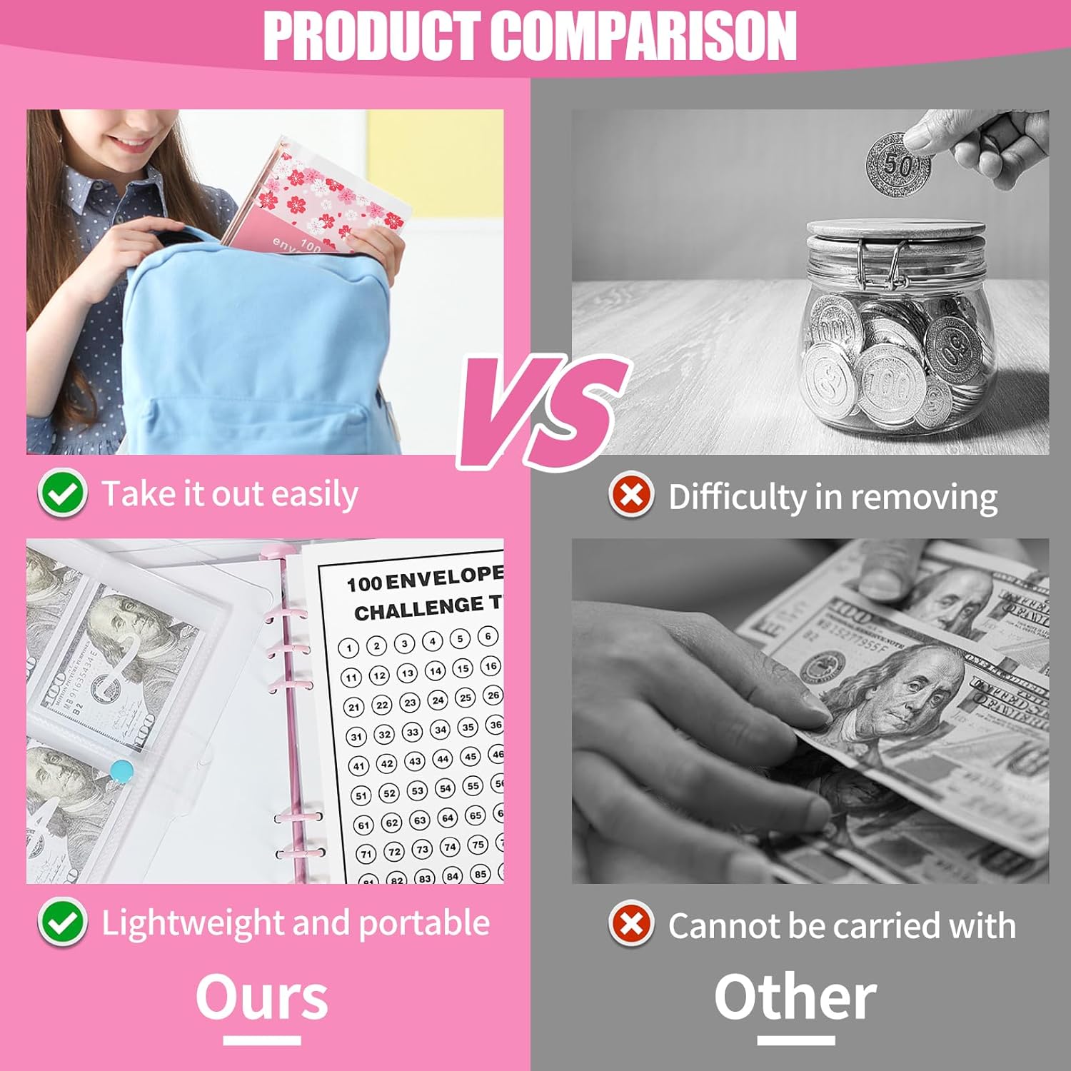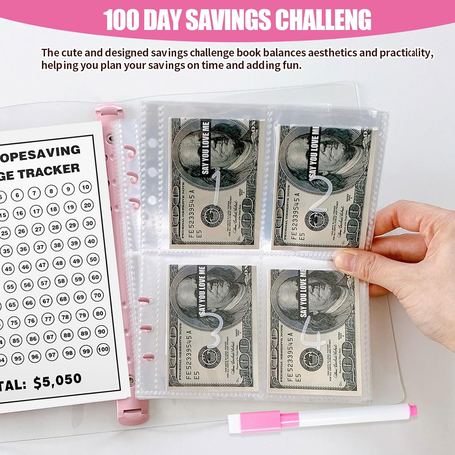 【Sfida di Risparmio Sakura】 Il 100Day Challenge Money Saving Binder ti aiuta a rimanere costante nel tuo percorso di risparmio di 100 giorni. Il Wallet Budget Plan Binder traccia i depositi giornalieri con sezioni chiaramente etichettate e ti permette di vedere i tuoi progressi fiorire. 【Design Premium e Pratico】 Realizzato con carta spessa e una rilegatura A5, il Wallet Budget Plan Binder resiste all'uso quotidiano grazie alle sue superfici di scrittura lisce. Il Pink Cash Budget Book compatto si adatta perfettamente alle borse, ottimo per il monitoraggio del budget in movimento. 【Senza Data e Flessibile】 A differenza dei piani rigidi, il Cash Stuffing Wallet Book ti permette di iniziare la tua sfida di 100 giorni in qualsiasi momento. Il Wallet Budget Plan Binder è perfetto per obiettivi finanziari o piani di budget a lungo termine senza spreco di pagine. 【Piano di Incentivo di 100 Giorni】 Ogni pagina del Cash Stuffing Wallet Book ha numeri ben visibili, motivandoti ogni giorno. Le affermazioni positive rafforzano le abitudini, e il Pink Cash Budget Book rende piacevole il processo di risparmio. 【Regalo Adorabile per Amici】 Il bell'aspetto e il design pratico del 100 Envelopes Money Saving Challenge attireranno gli appassionati di cancelleria. Il Pink Cash Budget Book è un pensiero premuroso per i laureati e chiunque voglia sviluppare una disciplina di risparmio.