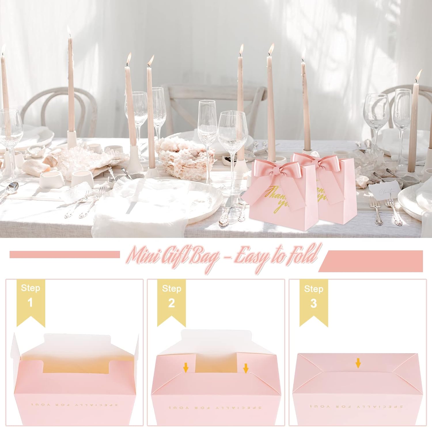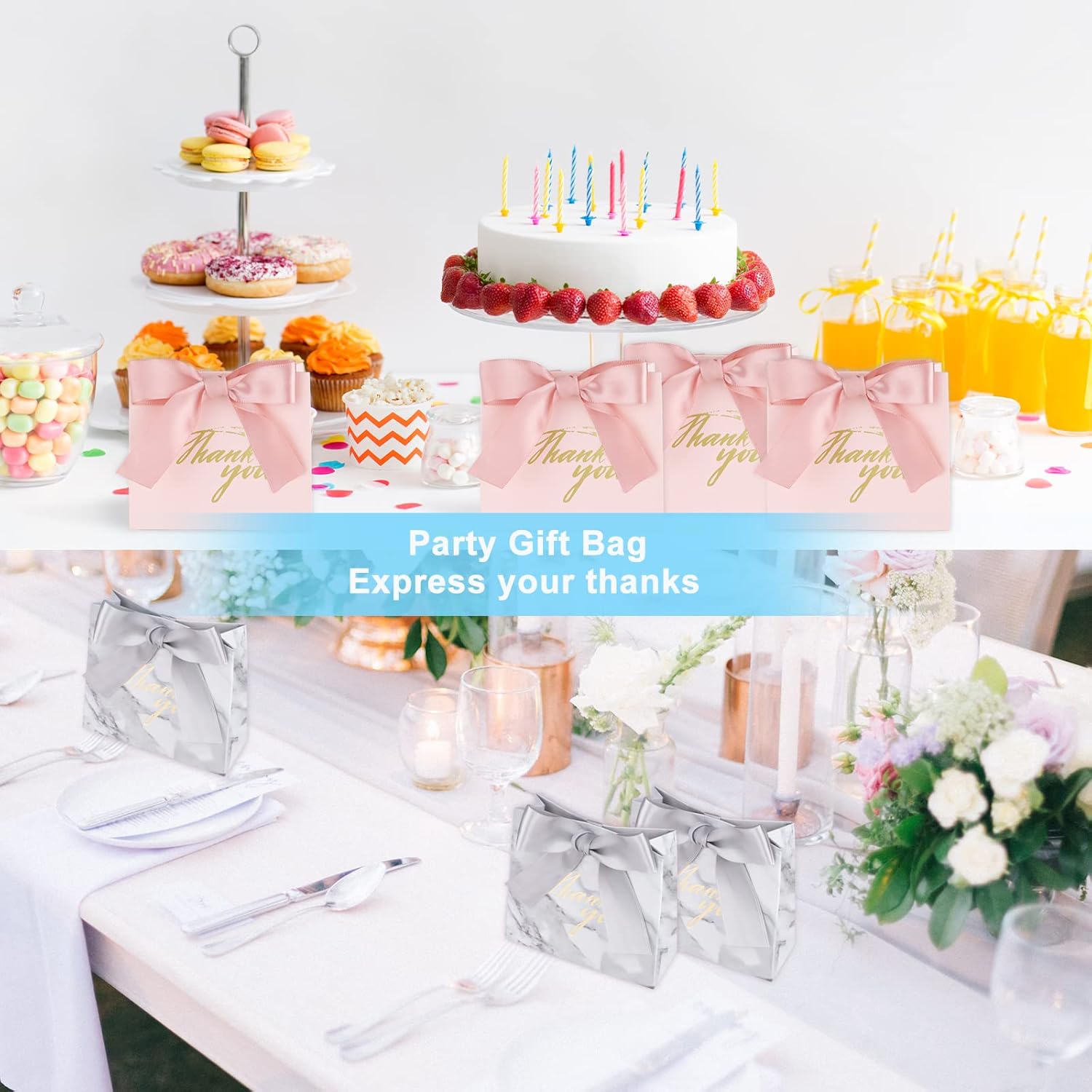 【Sacchetti regalo ampiamente utilizzati】-- Questi sacchetti regalo di ringraziamento possono essere applicati a varie occasioni celebrative, in particolare matrimoni romantici, compleanni, baby shower, lauree, aperture di negozi, ecc. È un ottimo modo per mostrare apprezzamento agli altri, squisito e pratico, e la persona che riceve il regalo si sentirà sicuramente piena di amore e felicità.
