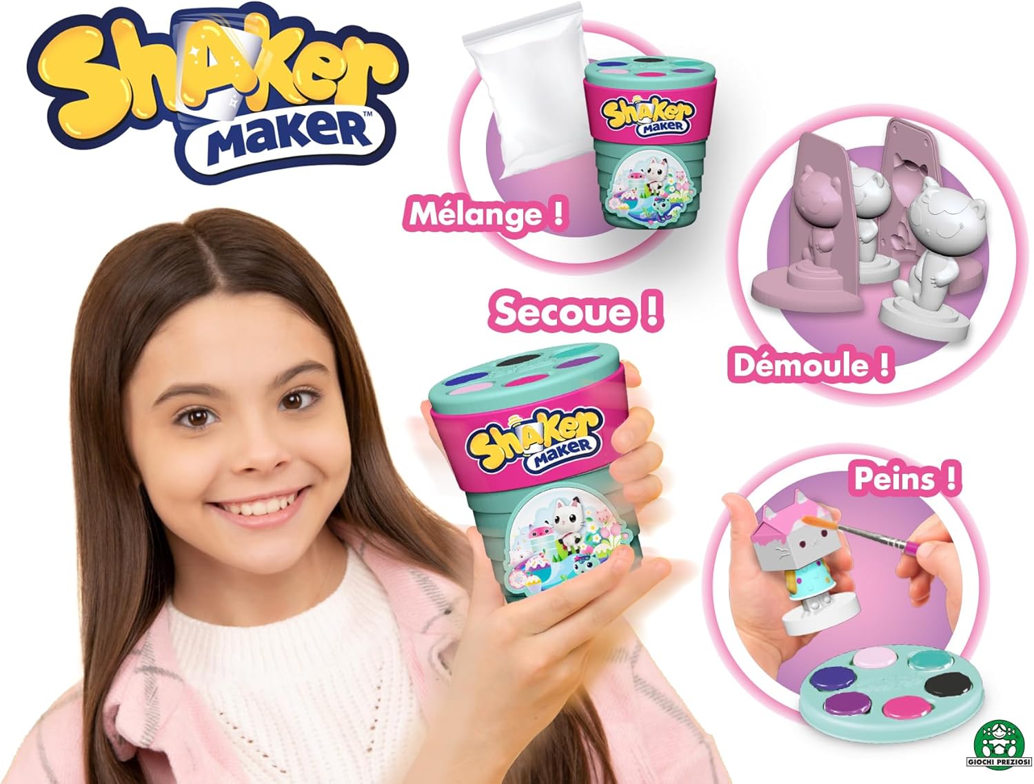 MODELLO GABY AND THE MAGIC HOUSE: Riproduci i tuoi personaggi preferiti della tua serie animata Gaby and the Magic House 4 STAMPI INCLUSI: Mescola la polvere con acqua, agita nello Shaker Maker e ottieni i personaggi di Gaby and the Magic House ACCESSORI INCLUSI: 4 stampi, 6 colori diversi di vernice e 1 pennello per decorare i tuoi personaggi DIMENSIONI: Ogni creazione misura circa 7 cm. ETÀ: Per bambini dai 5 anni