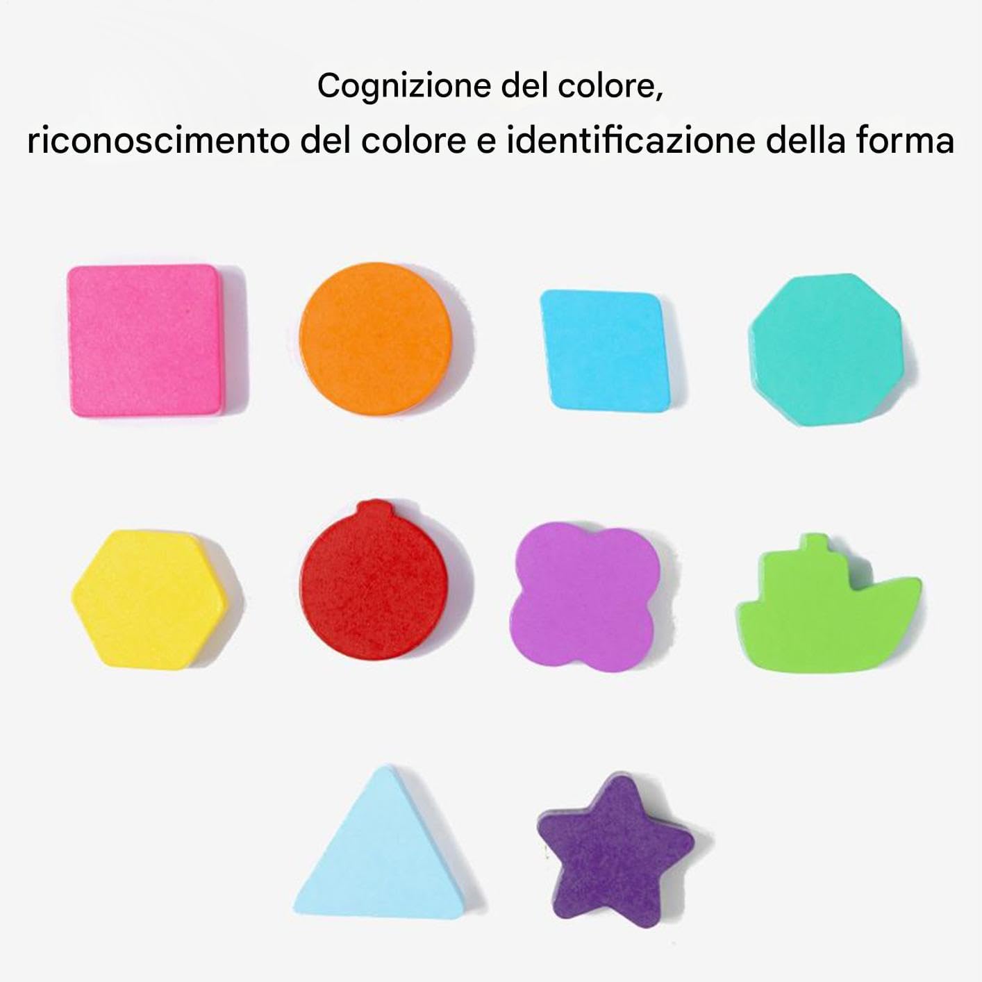Apprendimento Multidimensionale: Stimola l'apprendimento multidimensionale con un strutturato di abbinamento forme e colori, potenziando le capacità di categorizzazione e lo sviluppo del pensiero logico in modo intuitivo ed efficace per diverse età. Gioco Apprendimento: Stimola l'allenamento motorio fine integrando coordinazione d'inserimento pioli e compiti di destrezza d'impilamento, garantendo progressi costanti nella sincronizzazione occhio-mano con schemi di gioco ripetitivi e divertenti 1. Gioco Sicuro: Con pezzi grandi da 44mm, questo gioco di abbinamento forme garantisce un'esplorazione orale sicura riducendo i rischi di soffocamento per un coinvolgimento senza preoccupazioni durante il gioco. Lavorazione Sicura Bambini: Gli angoli arrotondati e le superfici anti-scheggia un contatto morbido e piacevole con la pelle, migliorando la sicurezza durante l'utilizzo dei puzzle in legno. Design Longevo: Grazie alla combinazione di legno massello spesso e inchiostri vegetali di soia, questo giocattolo didattico garantisce sicurezza e longevità, con una struttura robusta pensata per resistere all'usura quotidiana.